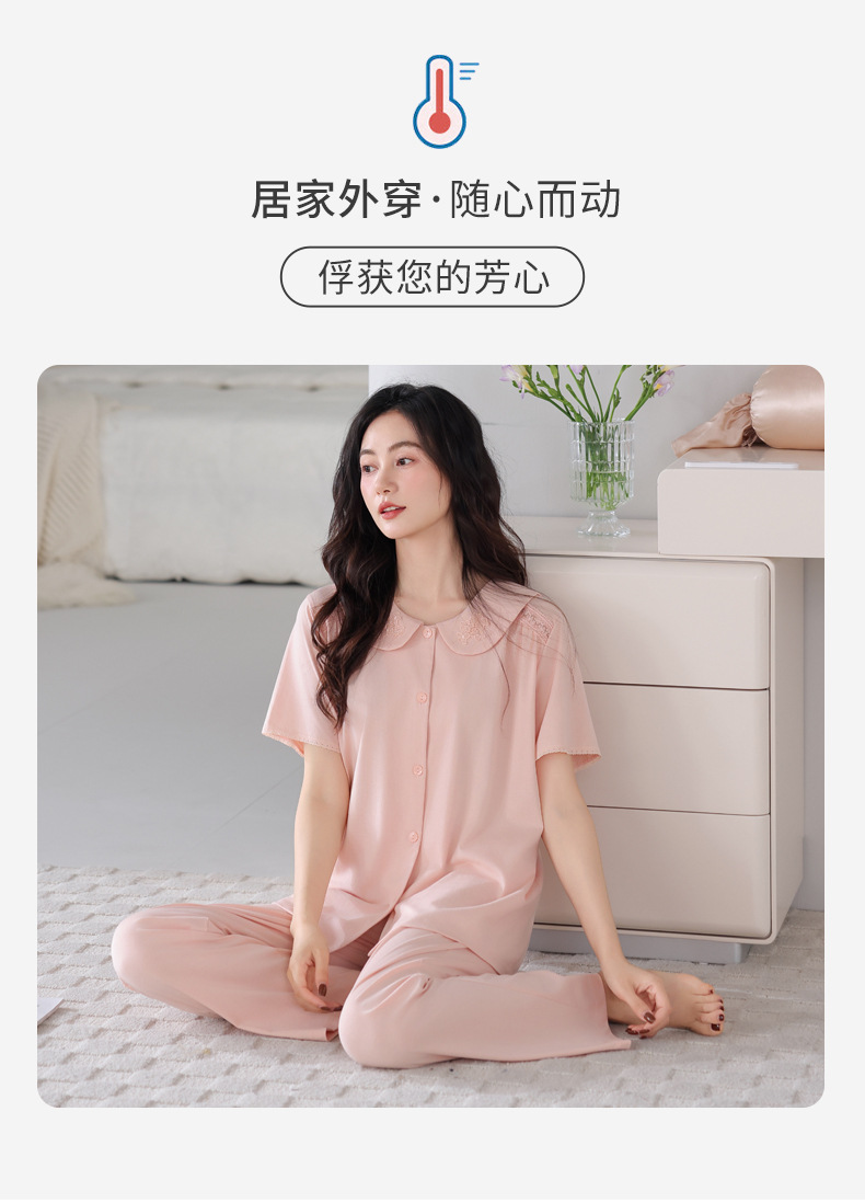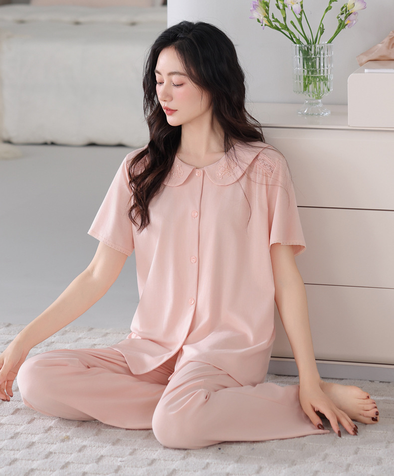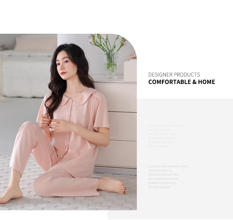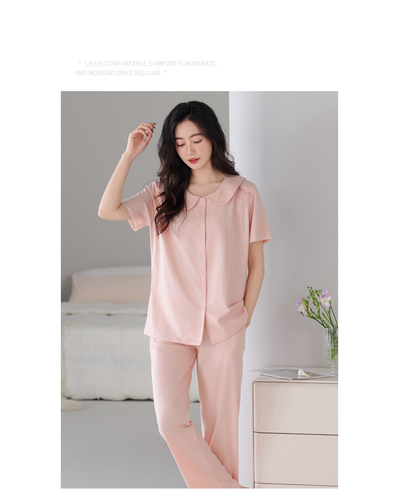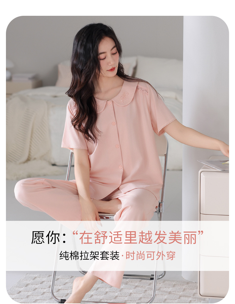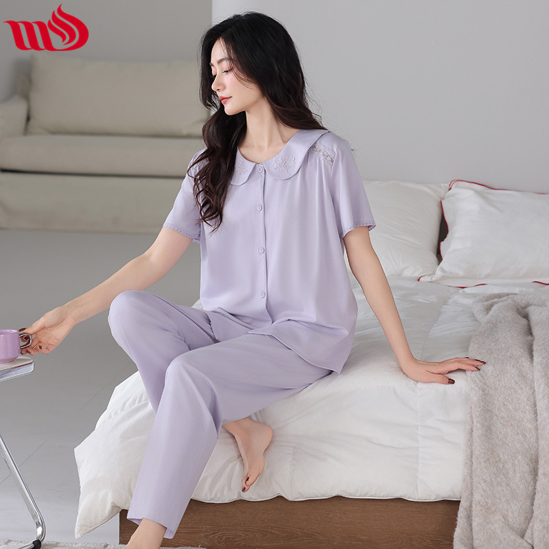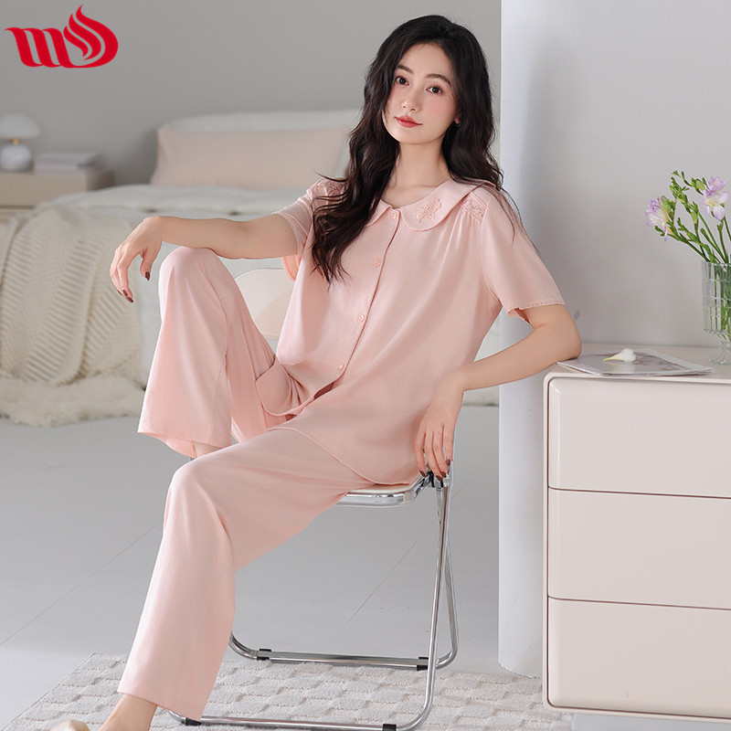 Mulong Aristocratic Family Pajamas 여성의 여름 면화 풀 랙 슈퍼 쿨 여름 새로운 반팔 바지 달콤하고 사랑스러운 스타일 세트스토어 가기