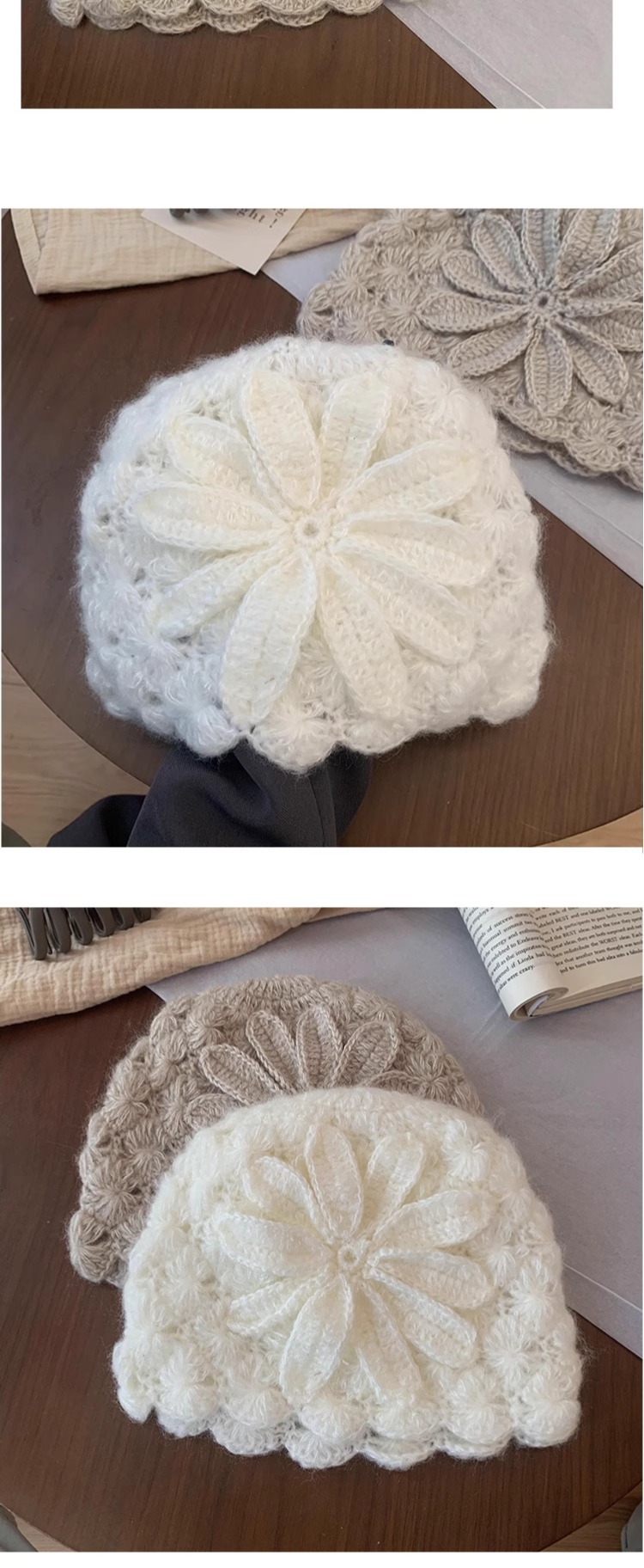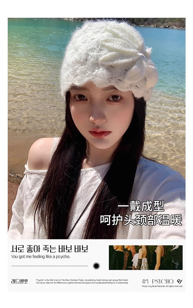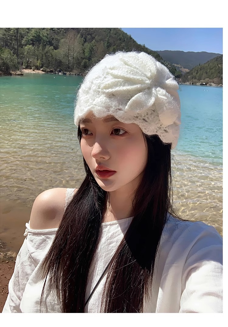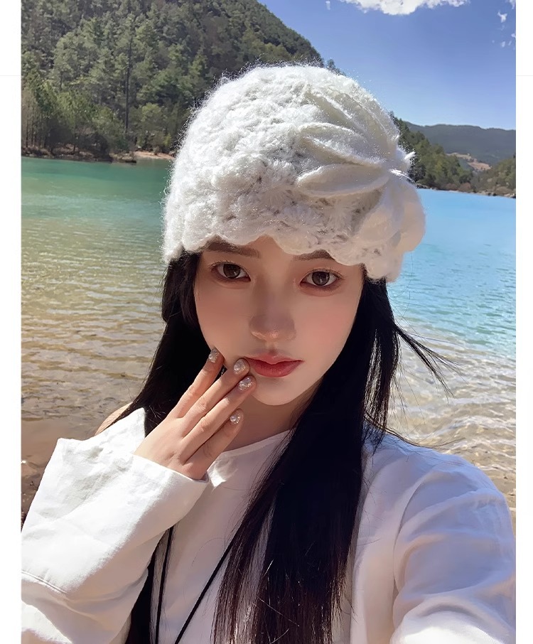 수제 크로 셰 뜨개질 양모 모자 여성의 봄과 여름 얇은 올 매치 중공 가방 헤드 캡 달콤한 얼굴 작은 유행 헤드 캡