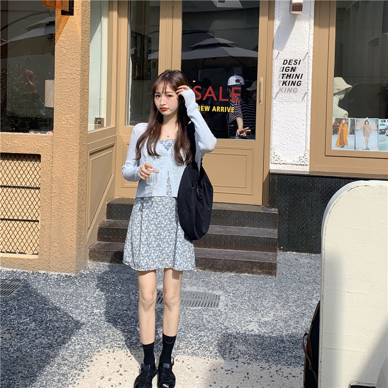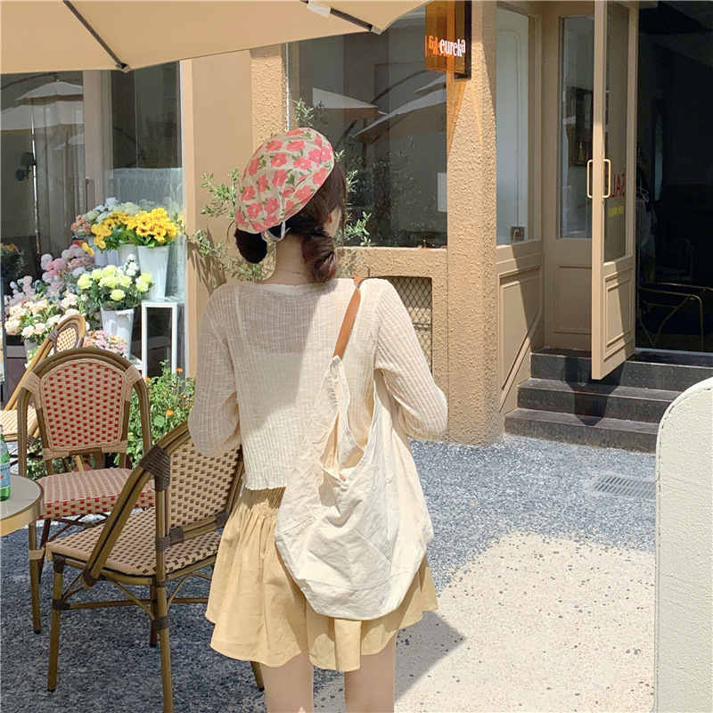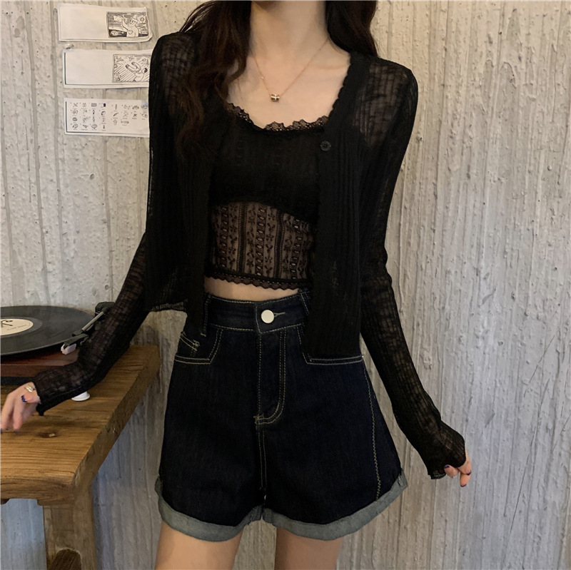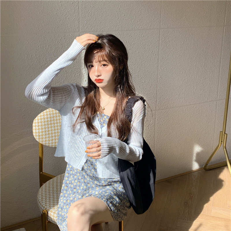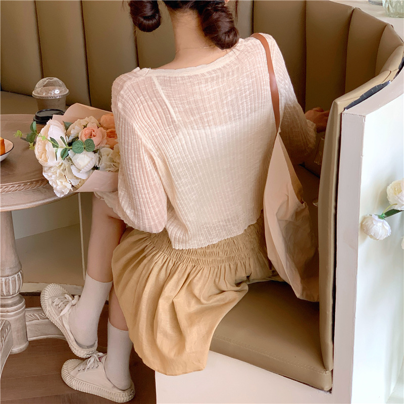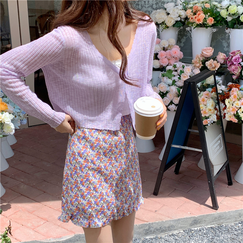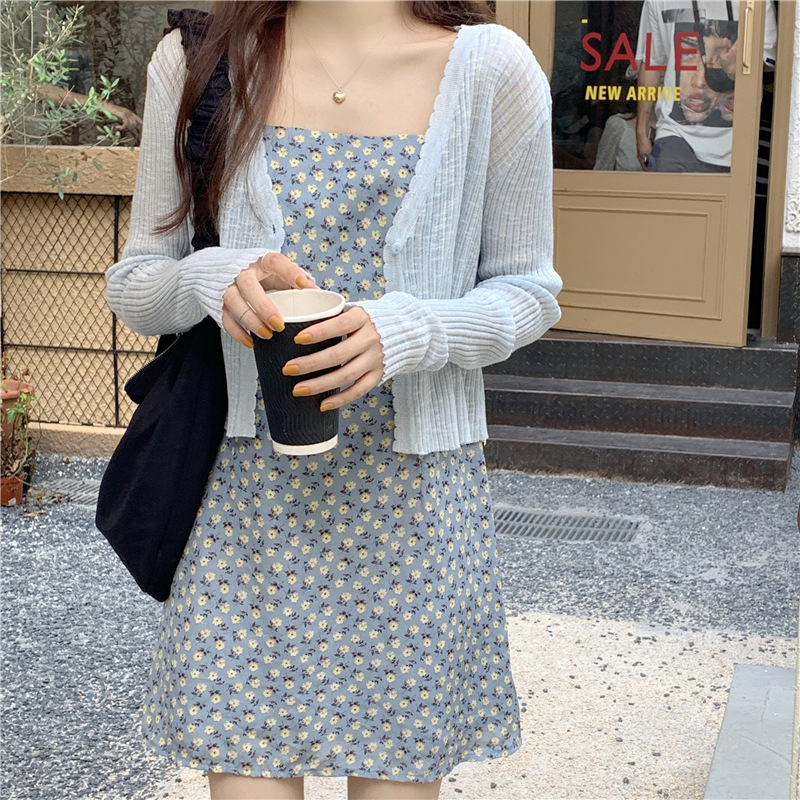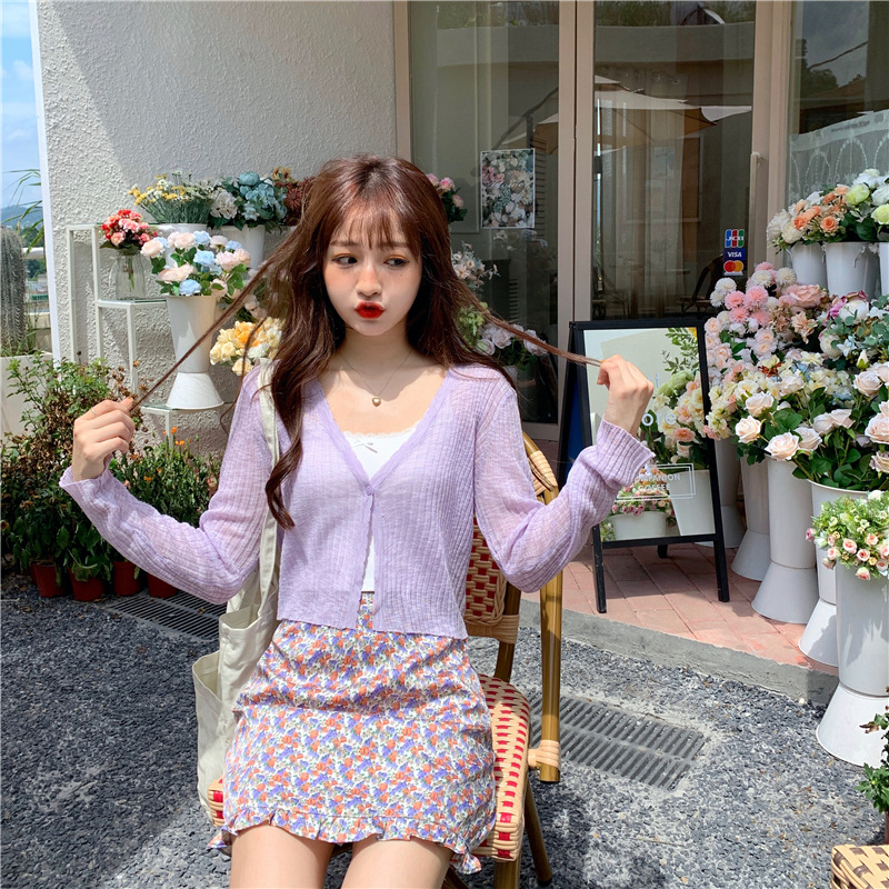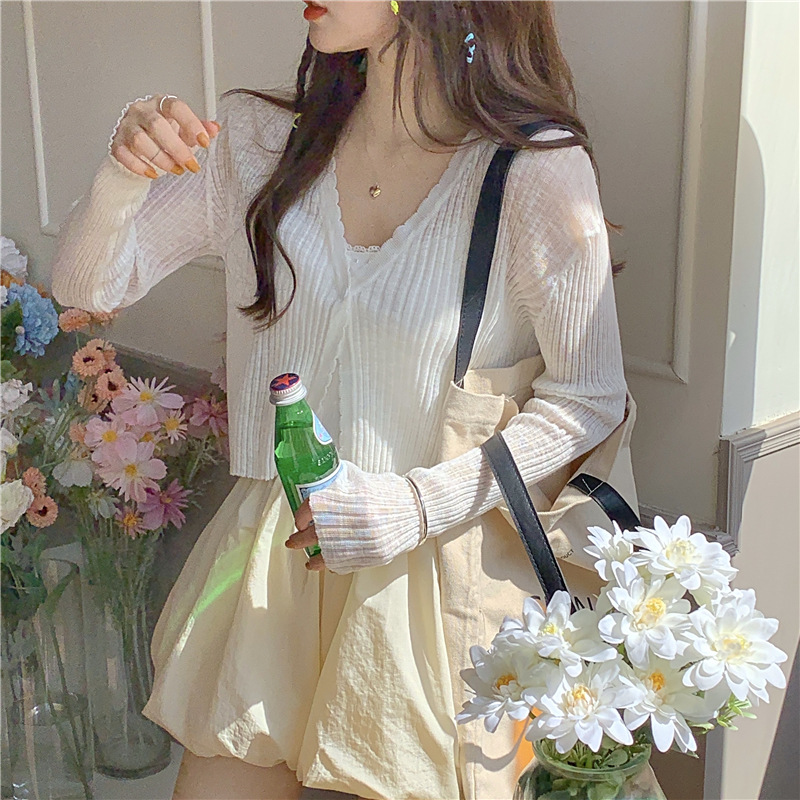 선스크린 의류 여성의 여름 긴팔 얇은 작은 목도리 외부 매칭 스커트 짧은 아이스 실크 니트 카디건 재킷 탑
