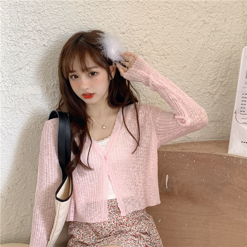 선스크린 의류 여성의 여름 긴팔 얇은 작은 목도리 외부 매칭 스커트 짧은 아이스 실크 니트 카디건 재킷 탑스토어 가기