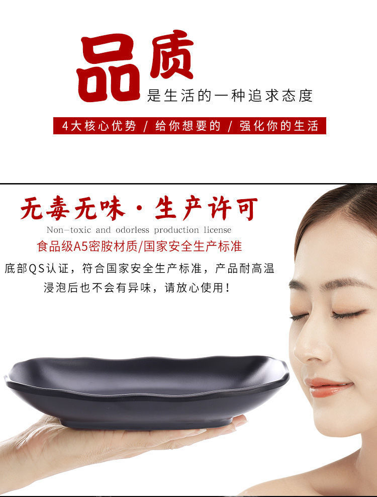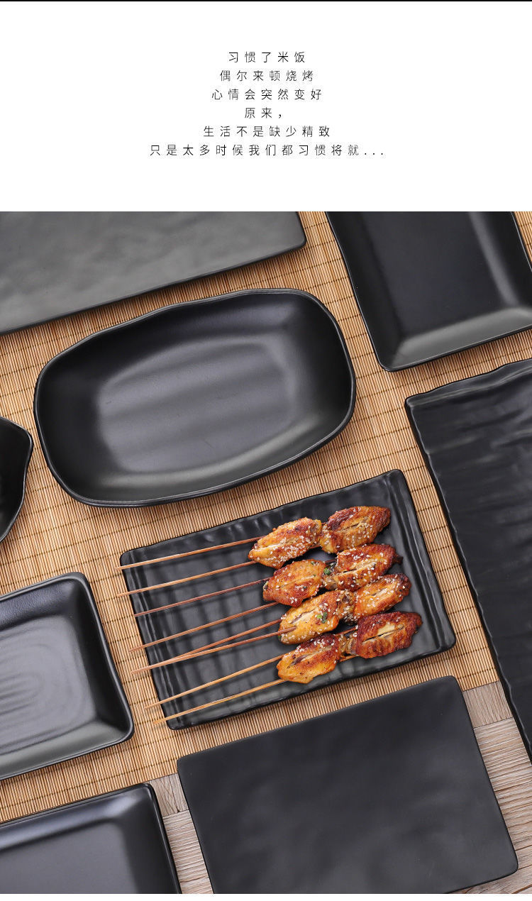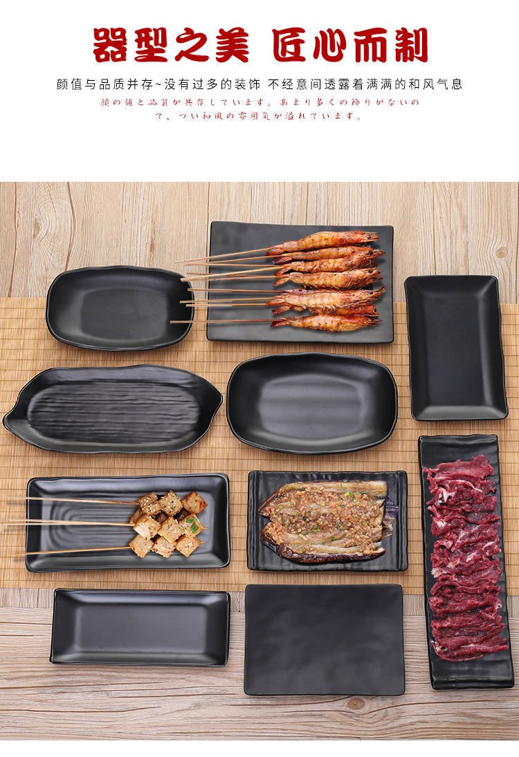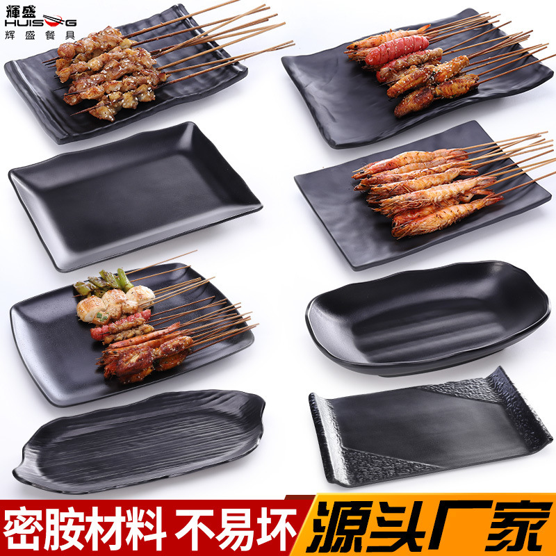 바베큐 가게 직사각형 상업 멜라민 플라스틱 검은 창조적 인 성격 식기 도자기 냄비 요리를위한 특별한 접시스토어 가기