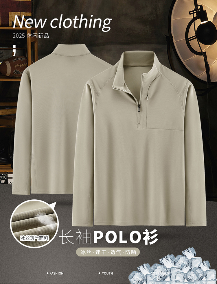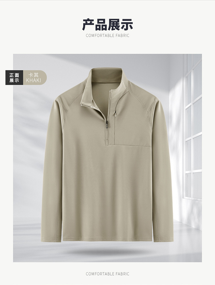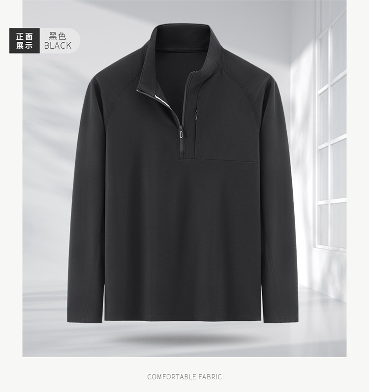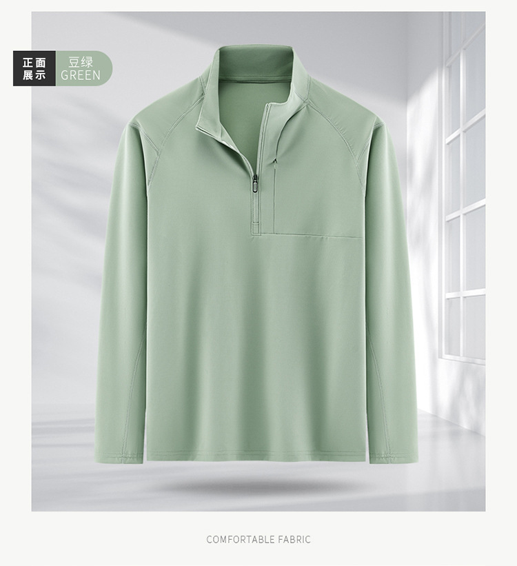 봄과 가을 남자 지퍼 시리즈 탄성 스포츠 캐주얼 긴 소매 티셔츠 수직 칼라 통기성 기지 야외 스포츠 탑