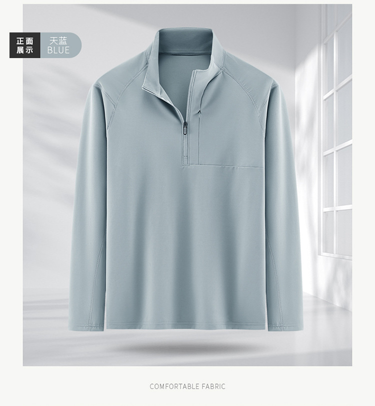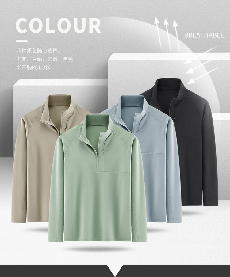 봄과 가을 남자 지퍼 시리즈 탄성 스포츠 캐주얼 긴 소매 티셔츠 수직 칼라 통기성 기지 야외 스포츠 탑스토어 가기