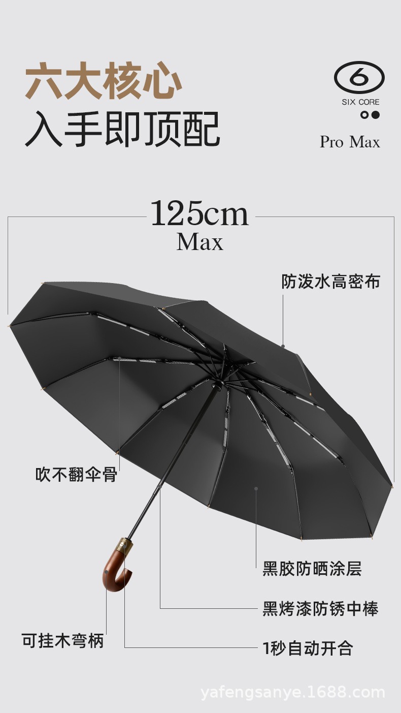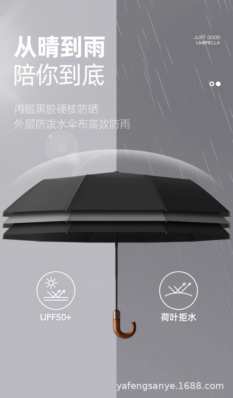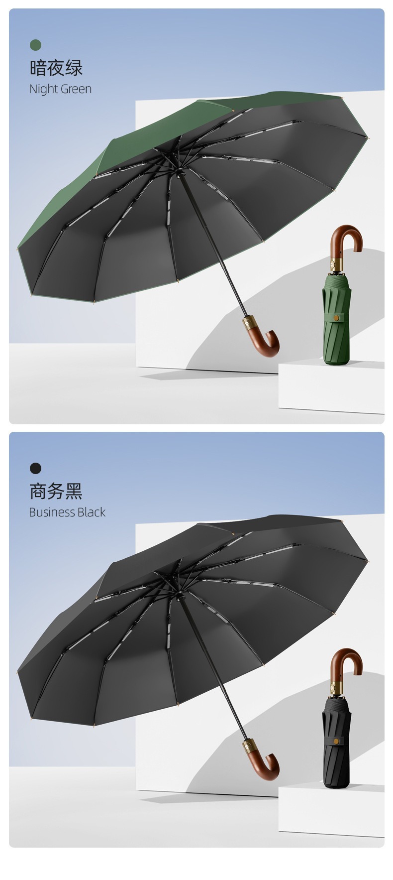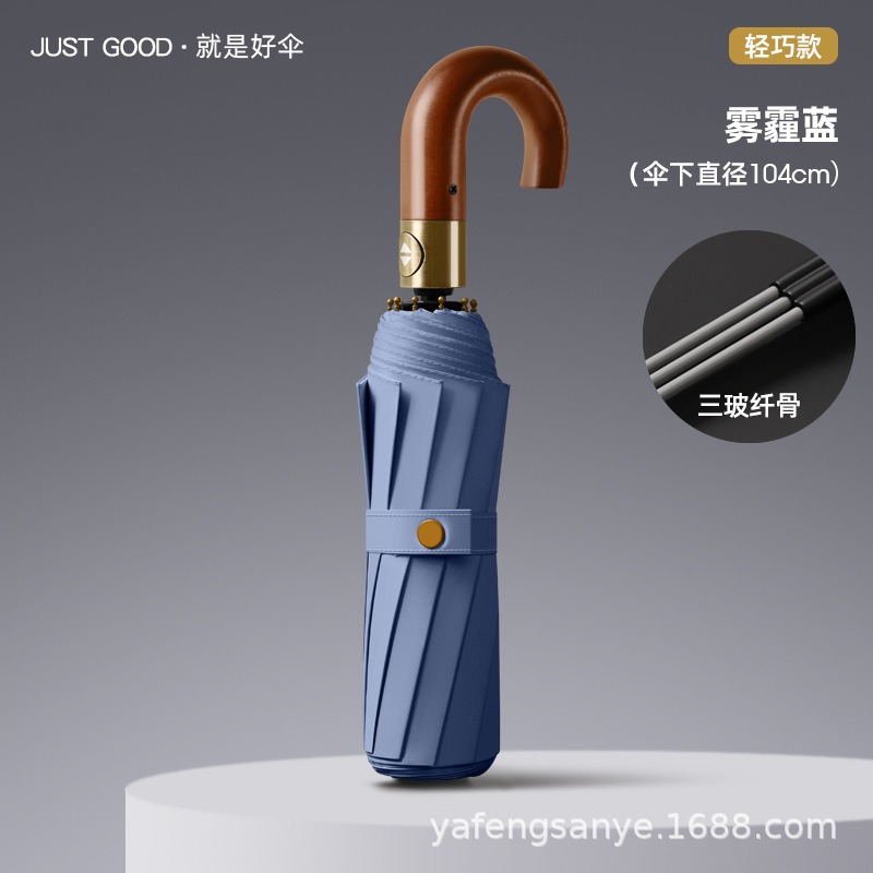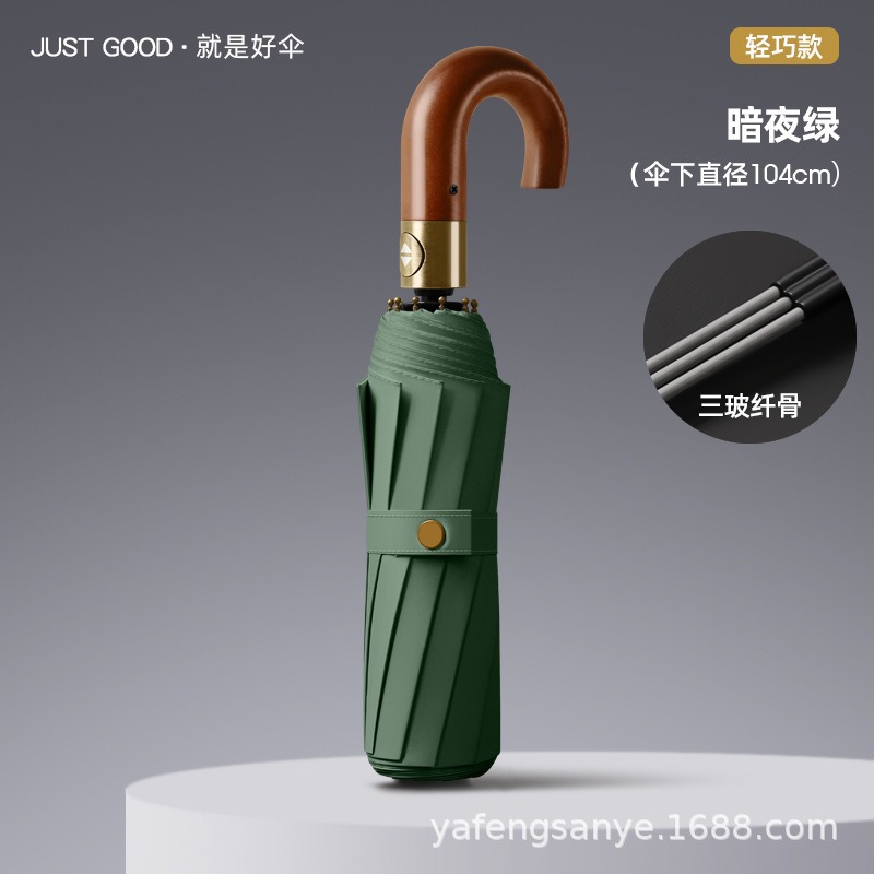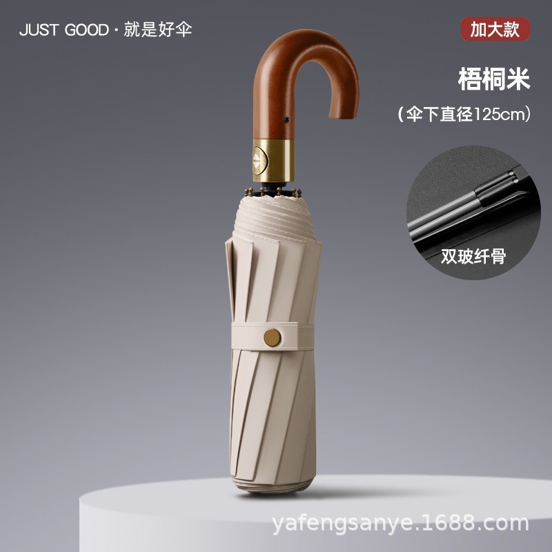 새로운 스타일 로그 후크 손잡이 접히는 우산 남성 사업 자동 20-뼈 반대로 바람 맑음 우산 블랙 고무 더블 우산스토어 가기