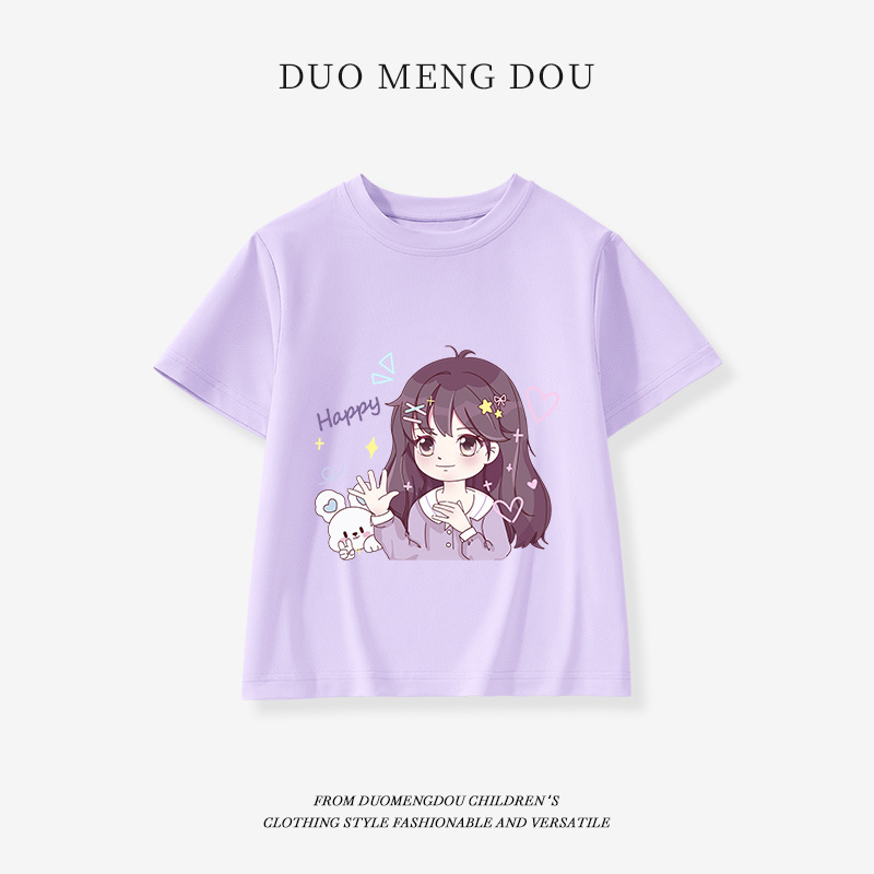 여자 반소매 여름 2025 새로운 라운드 넥 반소매 큰 어린이 통기성 빠른 건조 스포츠 티셔츠 어린이 여름 탑스토어 가기