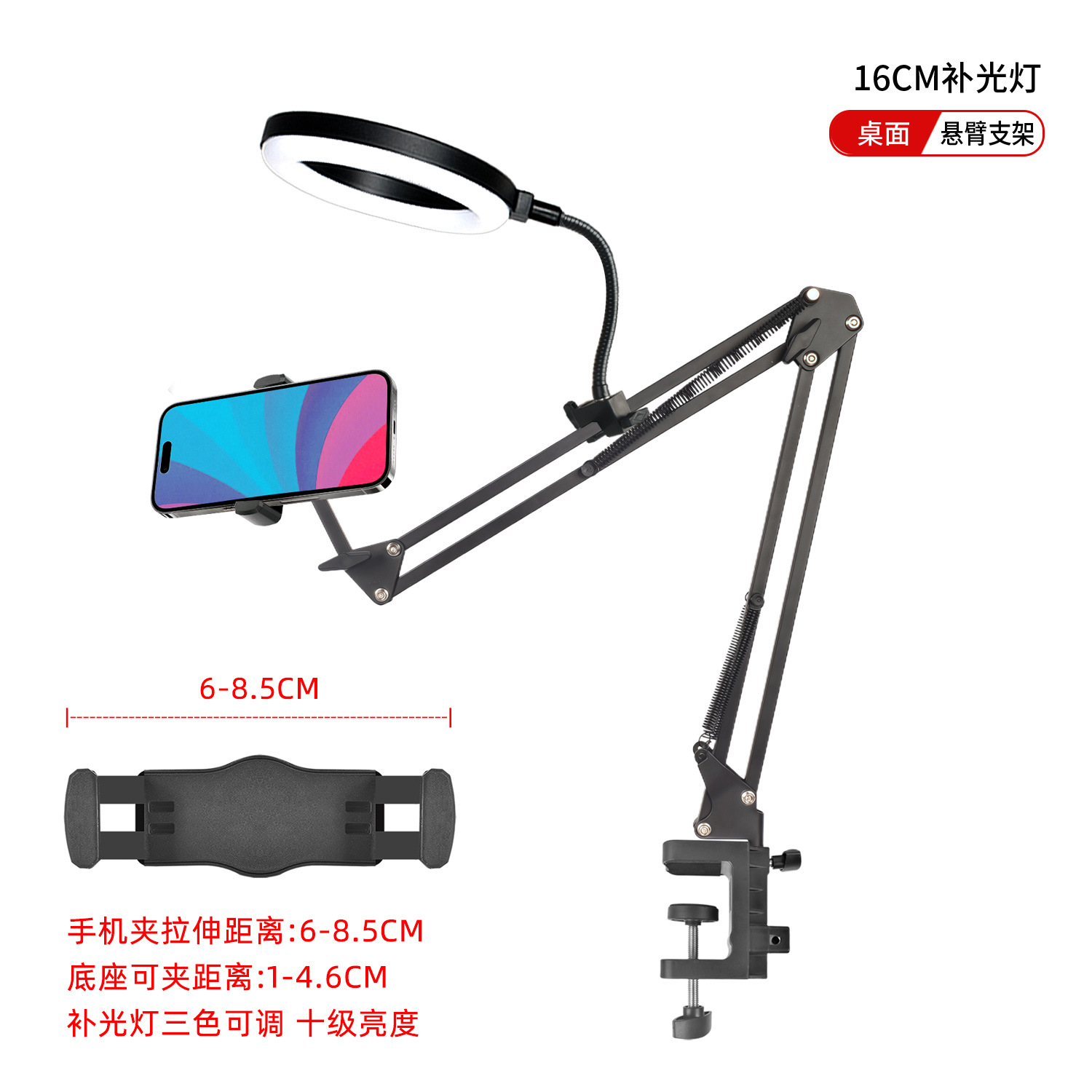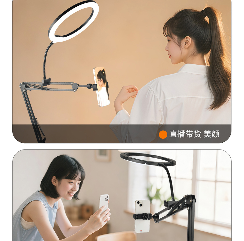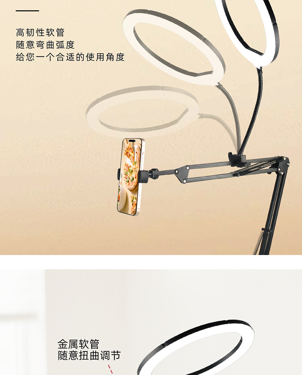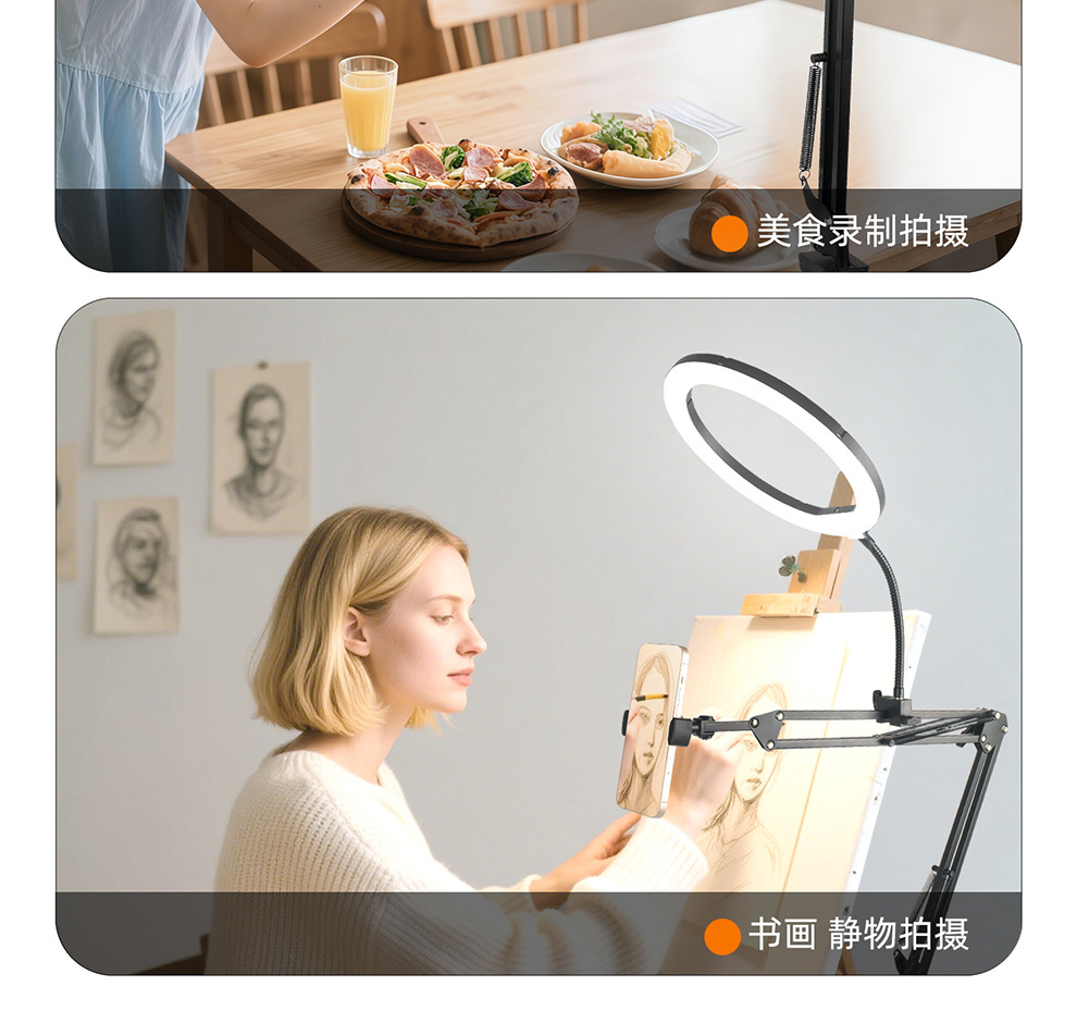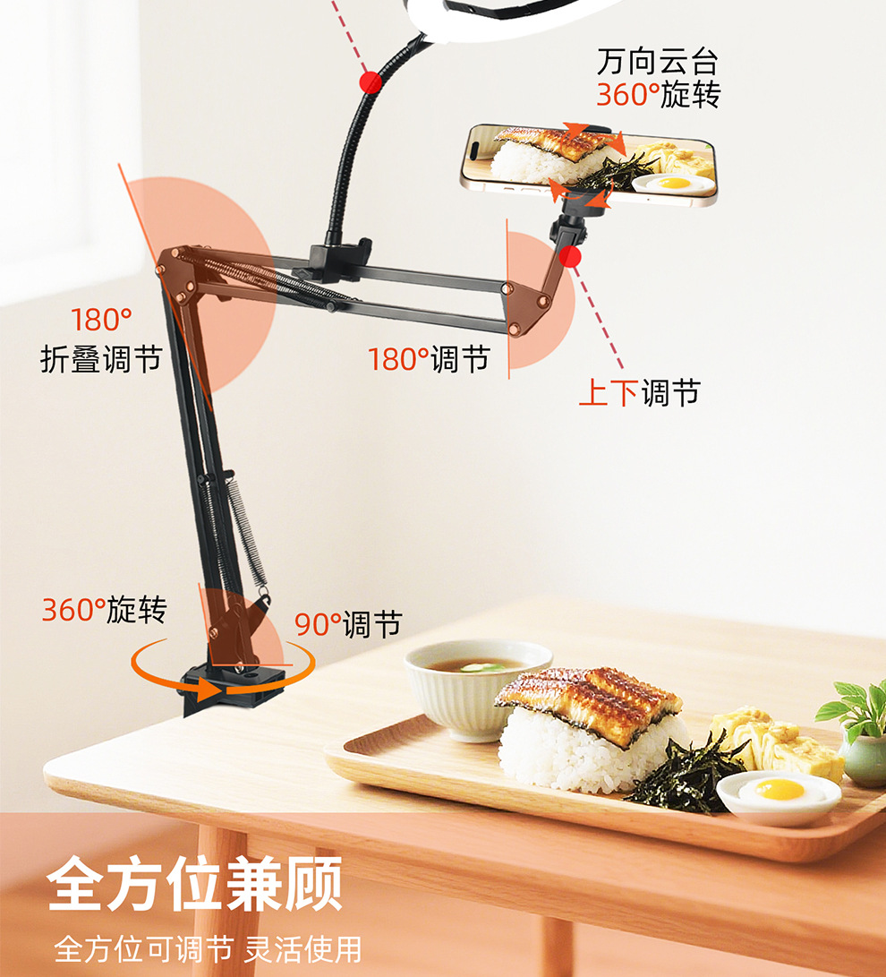 라이브 스트리밍 휴대폰 홀더, 오버헤드 촬영 휴대폰 홀더, 라이브 스트리밍용 조명 포함, 데스크탑 촬영, 비디오 녹화, 음식 및 네일 아트