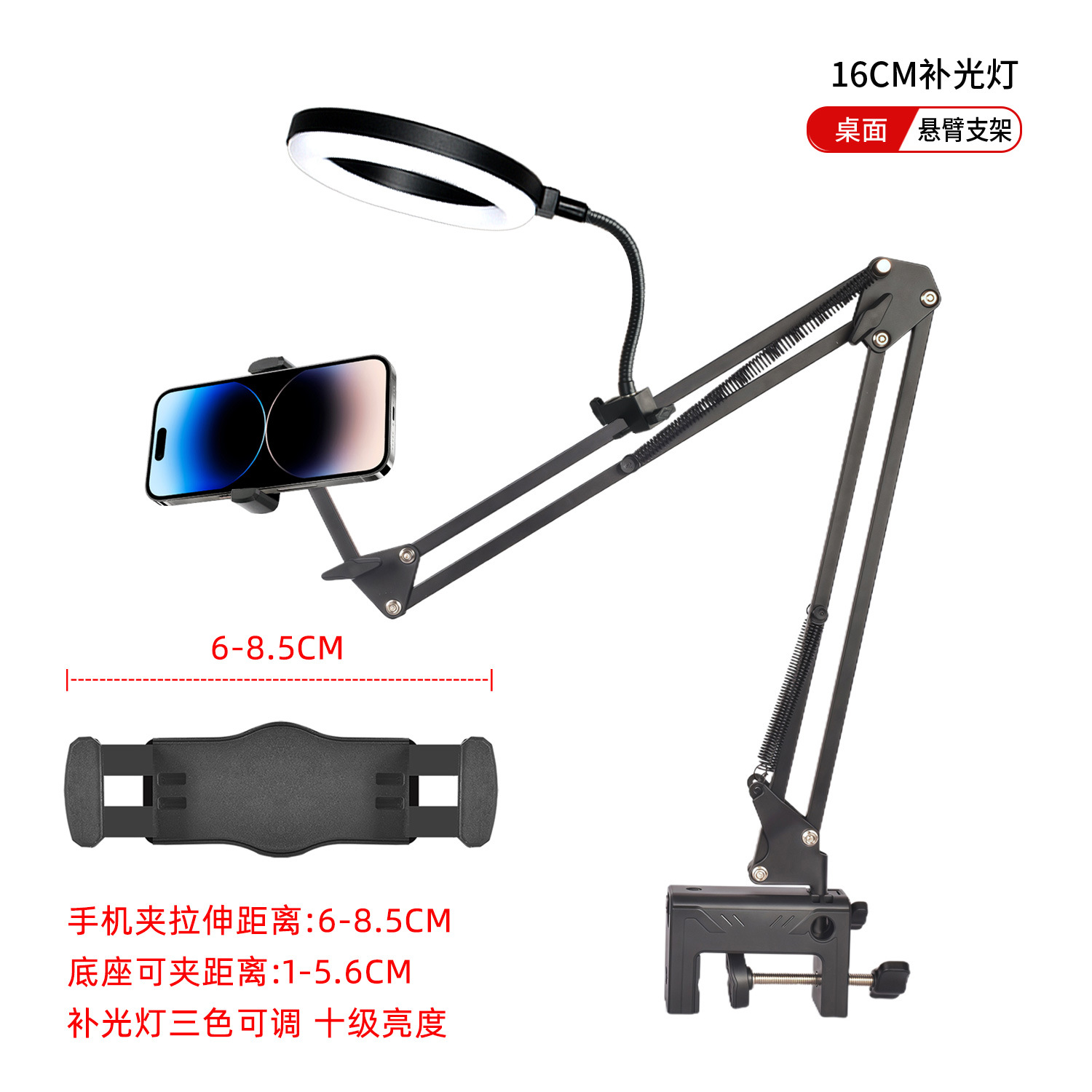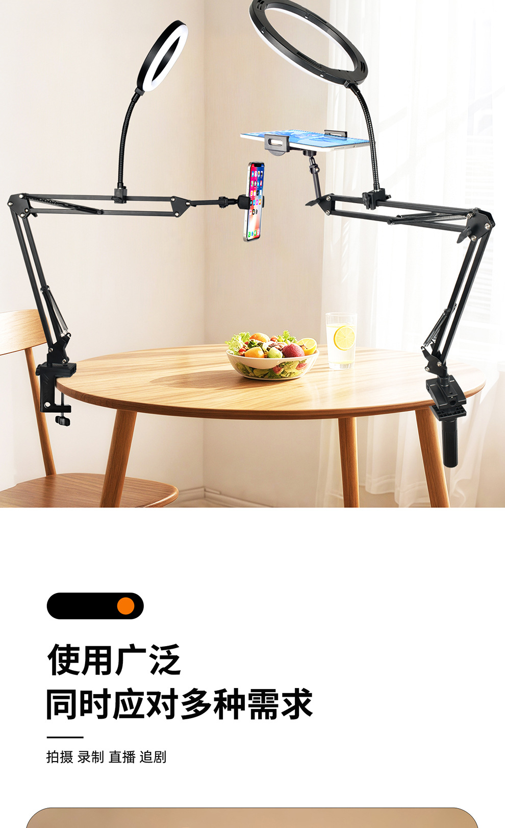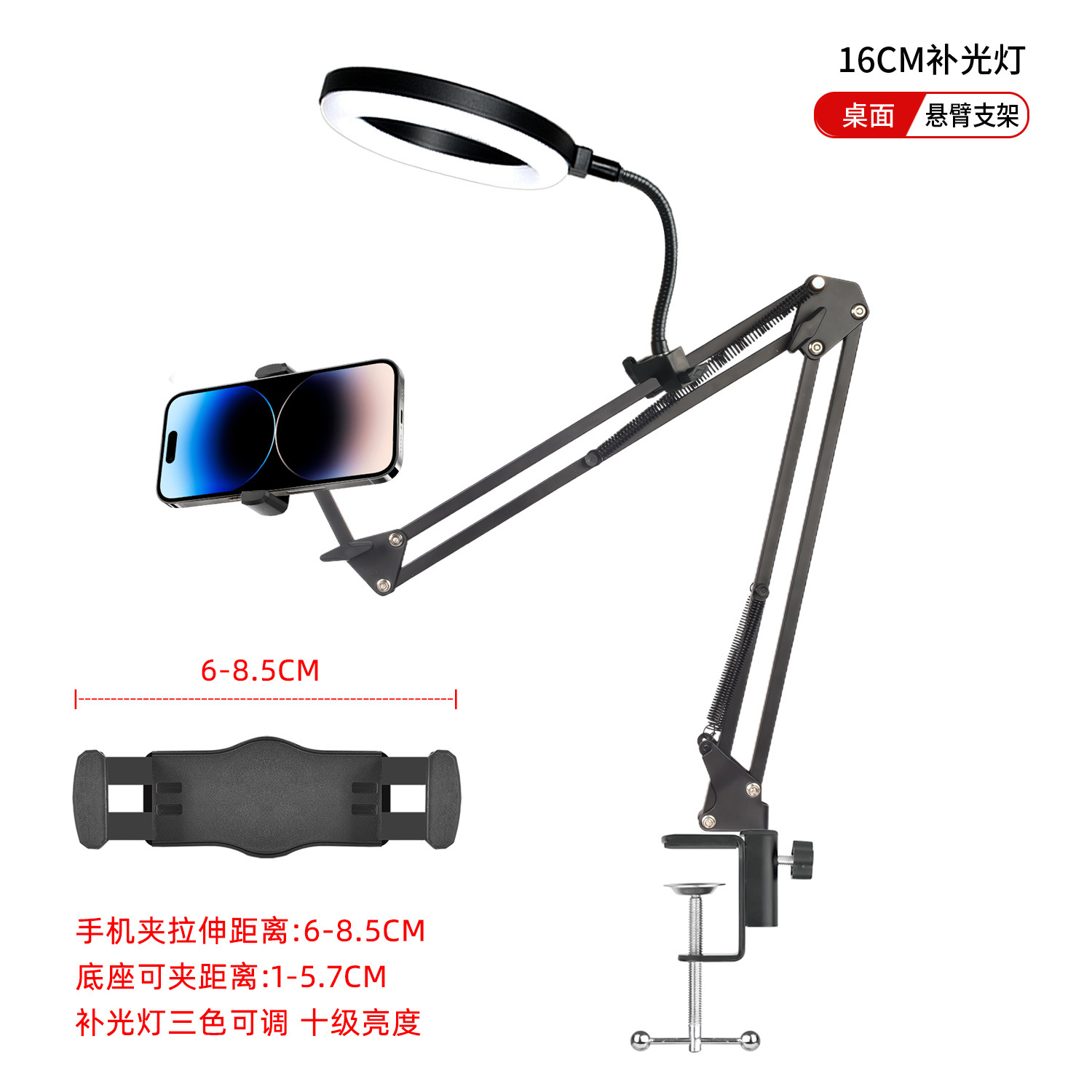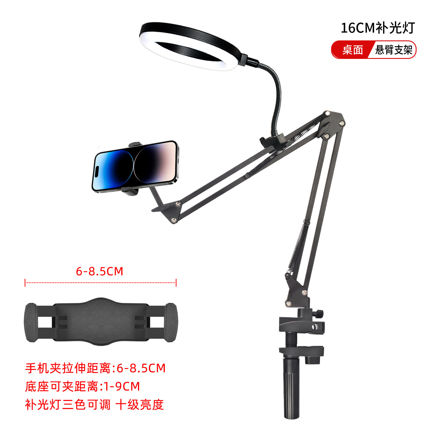 라이브 스트리밍 휴대폰 홀더, 오버헤드 촬영 휴대폰 홀더, 라이브 스트리밍용 조명 포함, 데스크탑 촬영, 비디오 녹화, 음식 및 네일 아트
