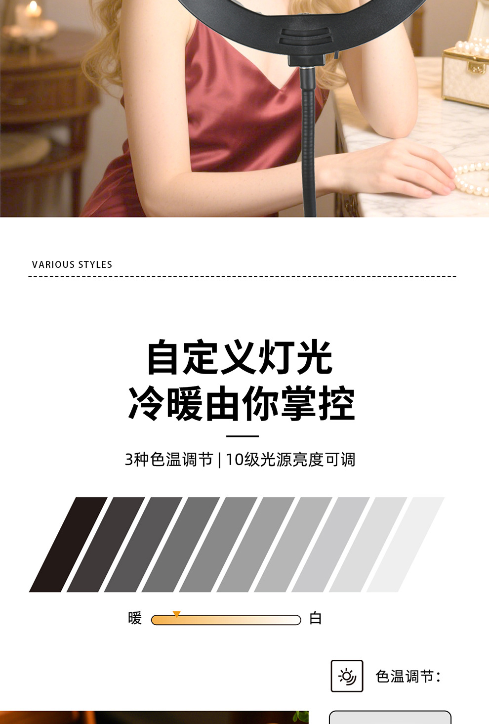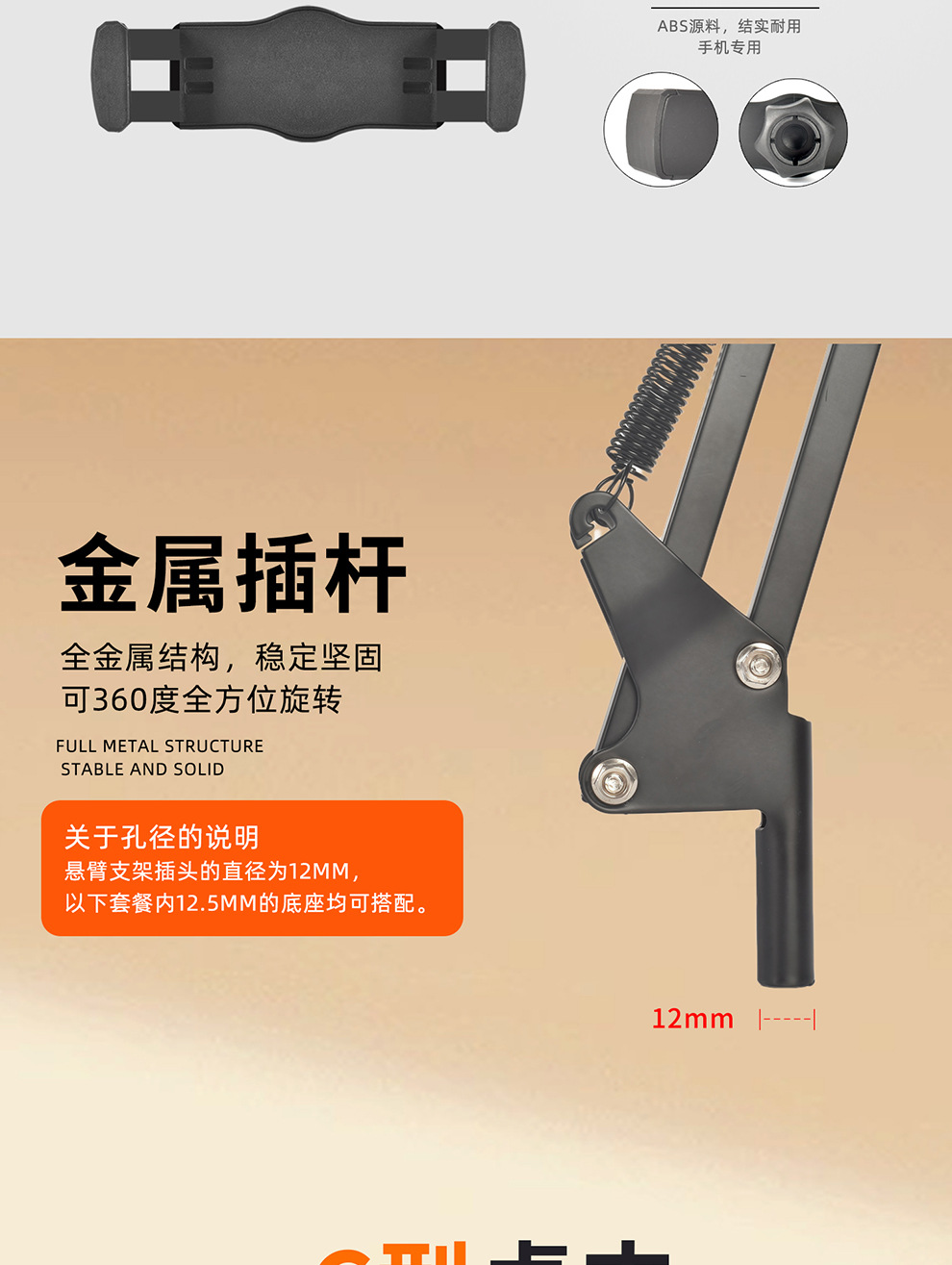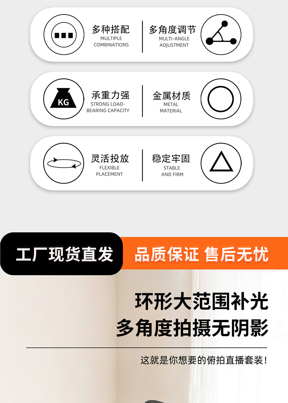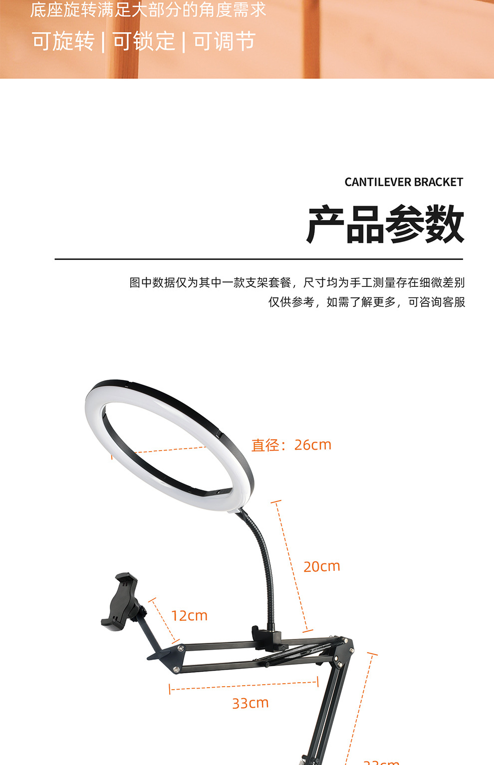 라이브 스트리밍 휴대폰 홀더, 오버헤드 촬영 휴대폰 홀더, 라이브 스트리밍용 조명 포함, 데스크탑 촬영, 비디오 녹화, 음식 및 네일 아트