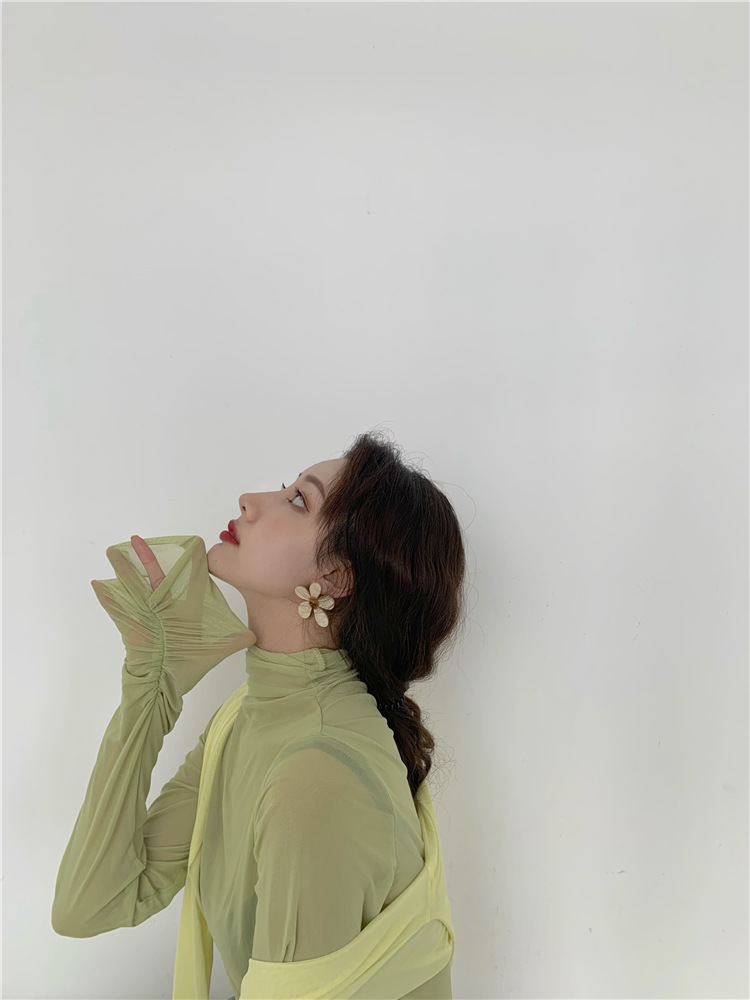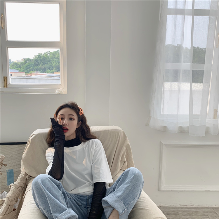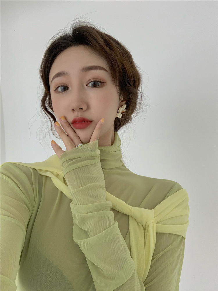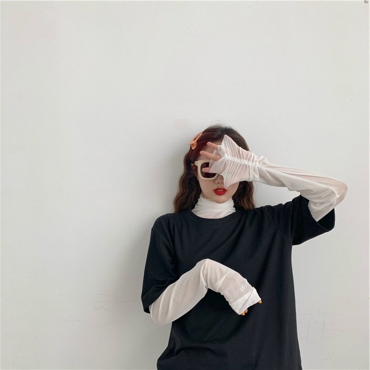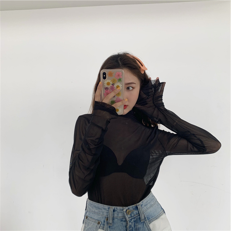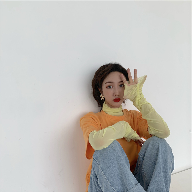 메쉬베이스 셔츠 여성용 얇은 여름 한국식 캔디 컬러 선 스크린 아이스 실크 긴팔 티셔츠 인사이드 탑