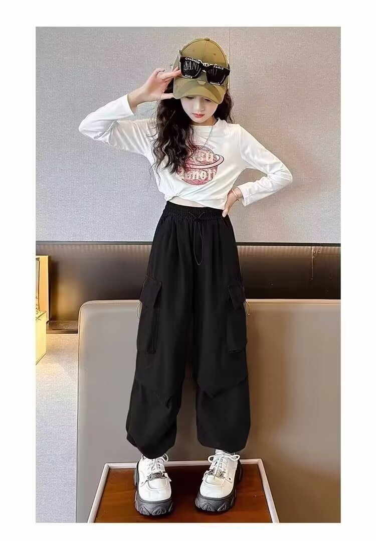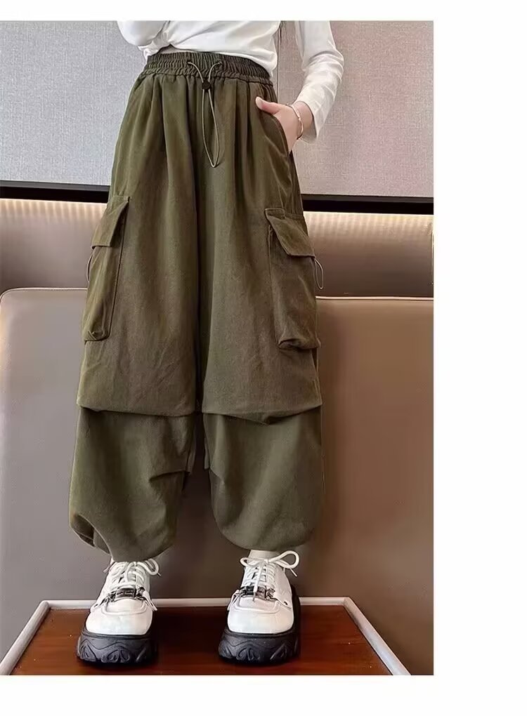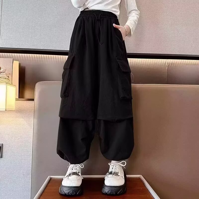 한국 여자 크레인 바지 2025 새 여름 어린이 서양식 바지 중 · 대형 어린이 캐주얼 바지 스포츠 바지