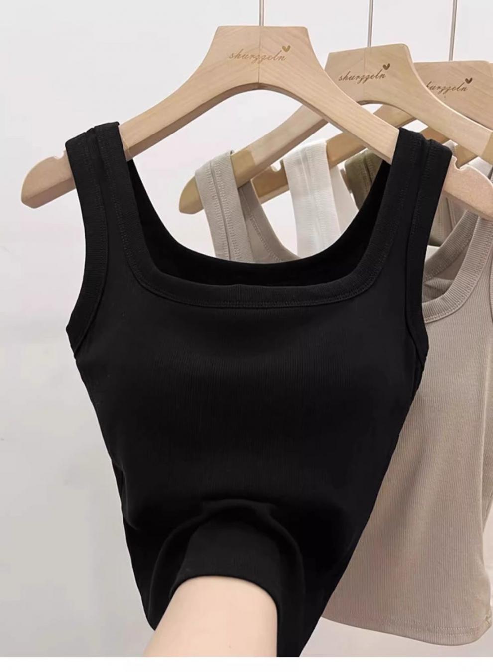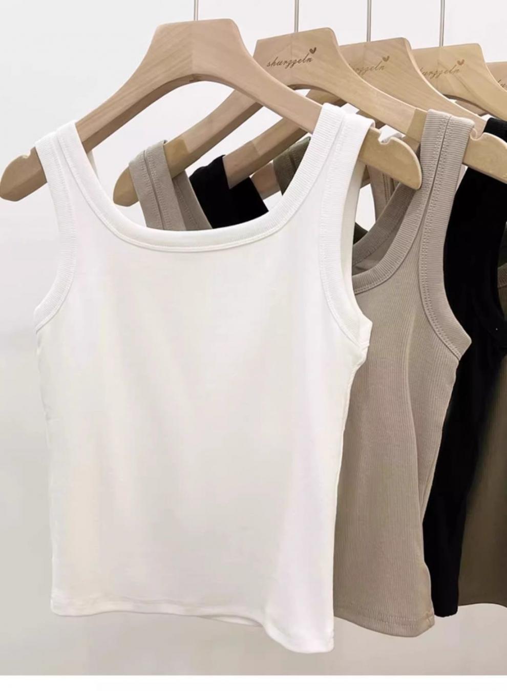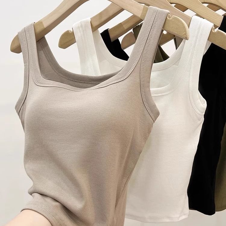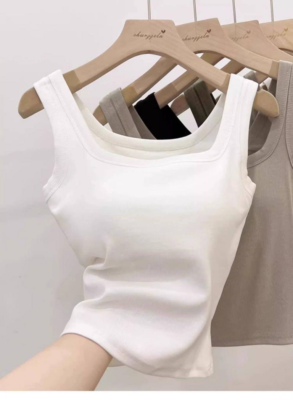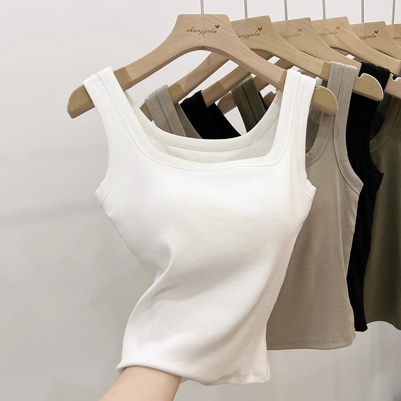 코튼 뉴 스퀘어 칼라 작은 카미 솔 조끼 여성 여름 착용 화이트 베이스 슬림 핏 민소매 얇은 탑스토어 가기
