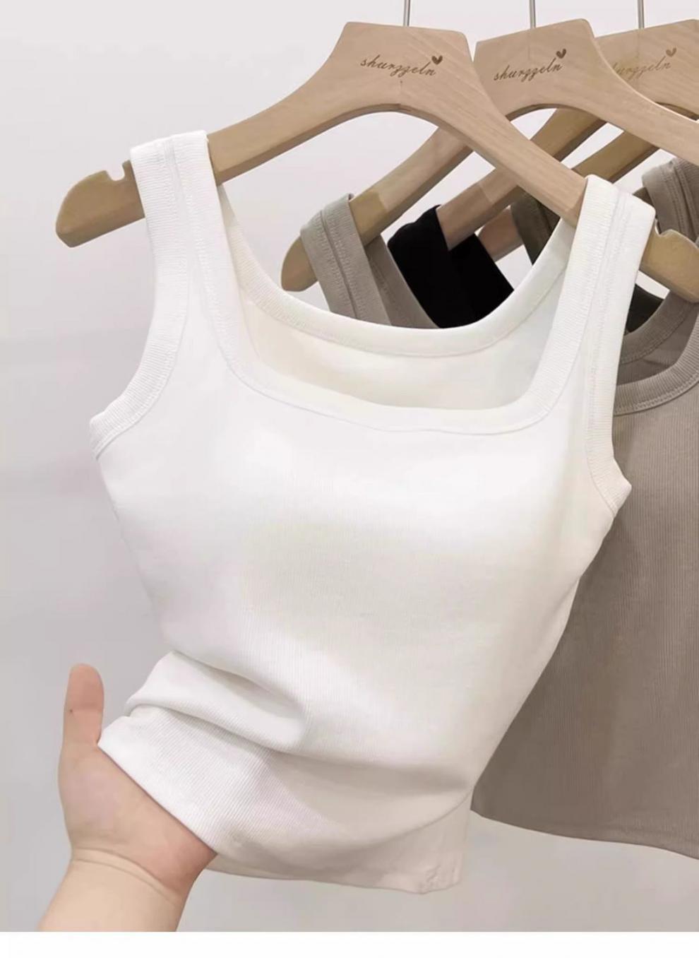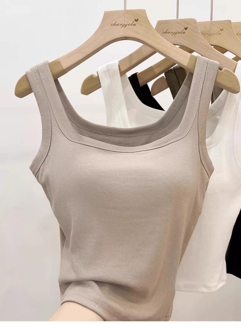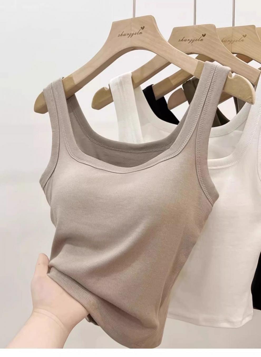 코튼 뉴 스퀘어 칼라 작은 카미 솔 조끼 여성 여름 착용 화이트 베이스 슬림 핏 민소매 얇은 탑스토어 가기
