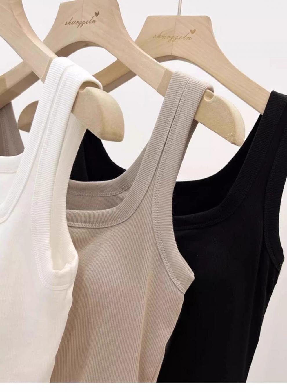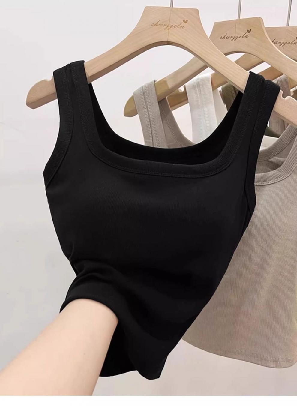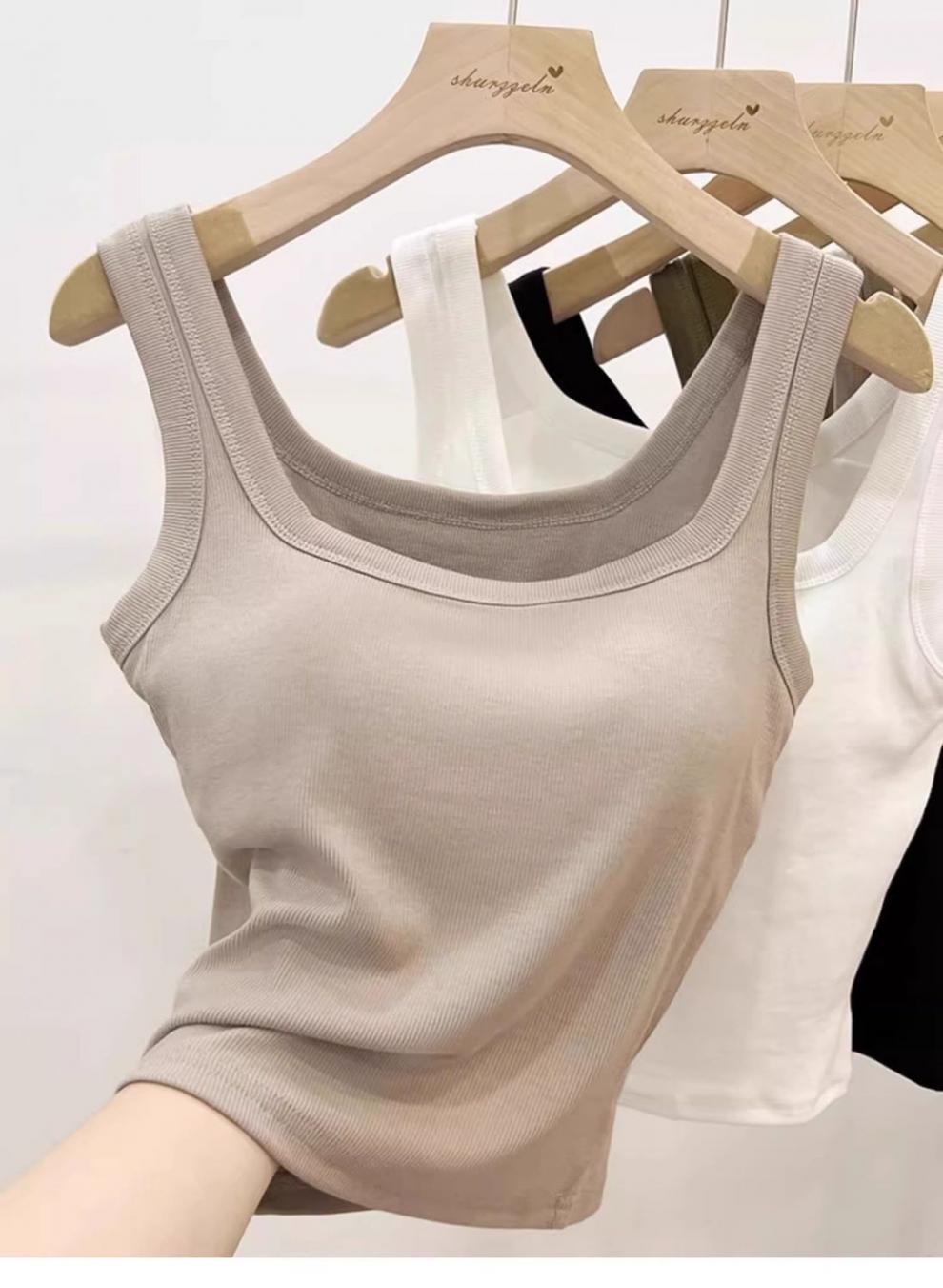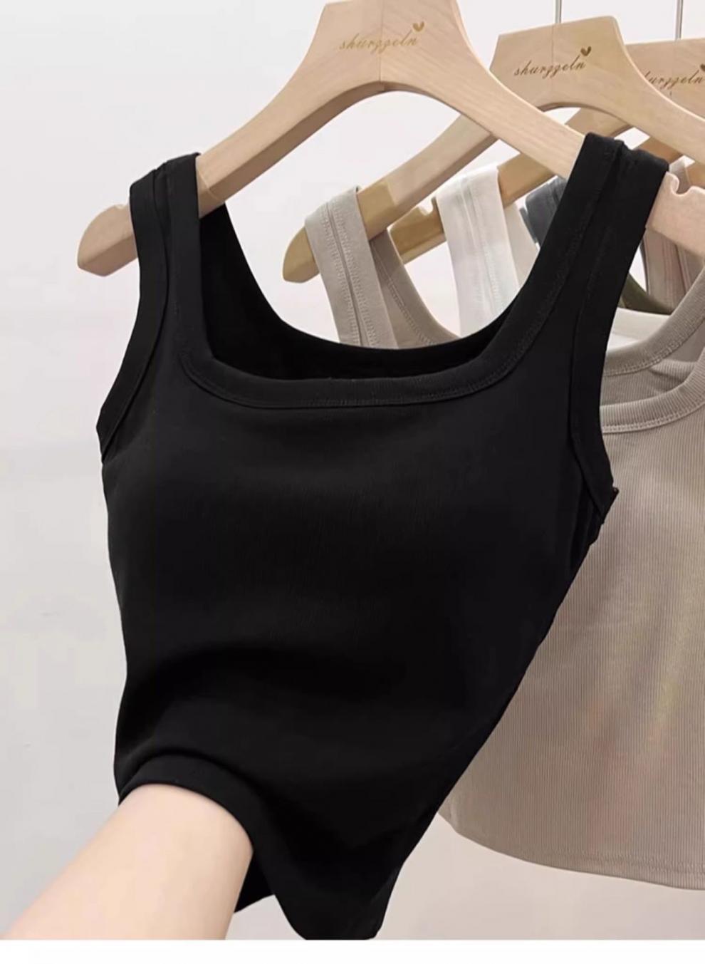 코튼 뉴 스퀘어 칼라 작은 카미 솔 조끼 여성 여름 착용 화이트 베이스 슬림 핏 민소매 얇은 탑스토어 가기