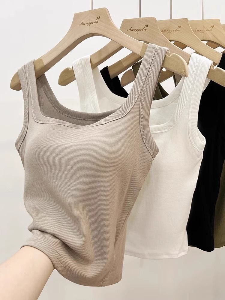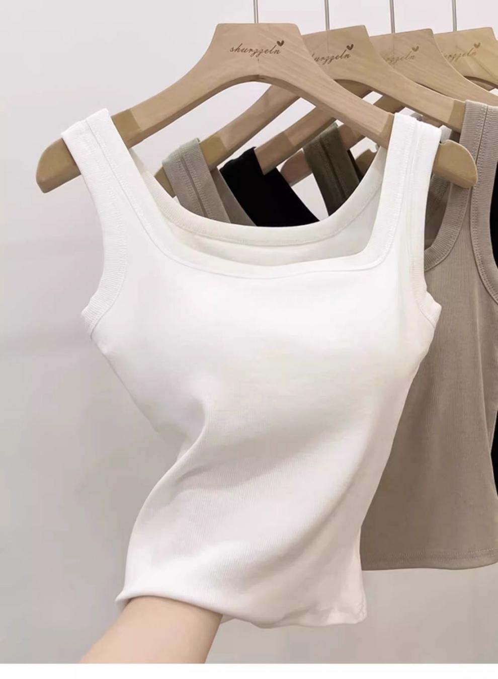 코튼 뉴 스퀘어 칼라 작은 카미 솔 조끼 여성 여름 착용 화이트 베이스 슬림 핏 민소매 얇은 탑