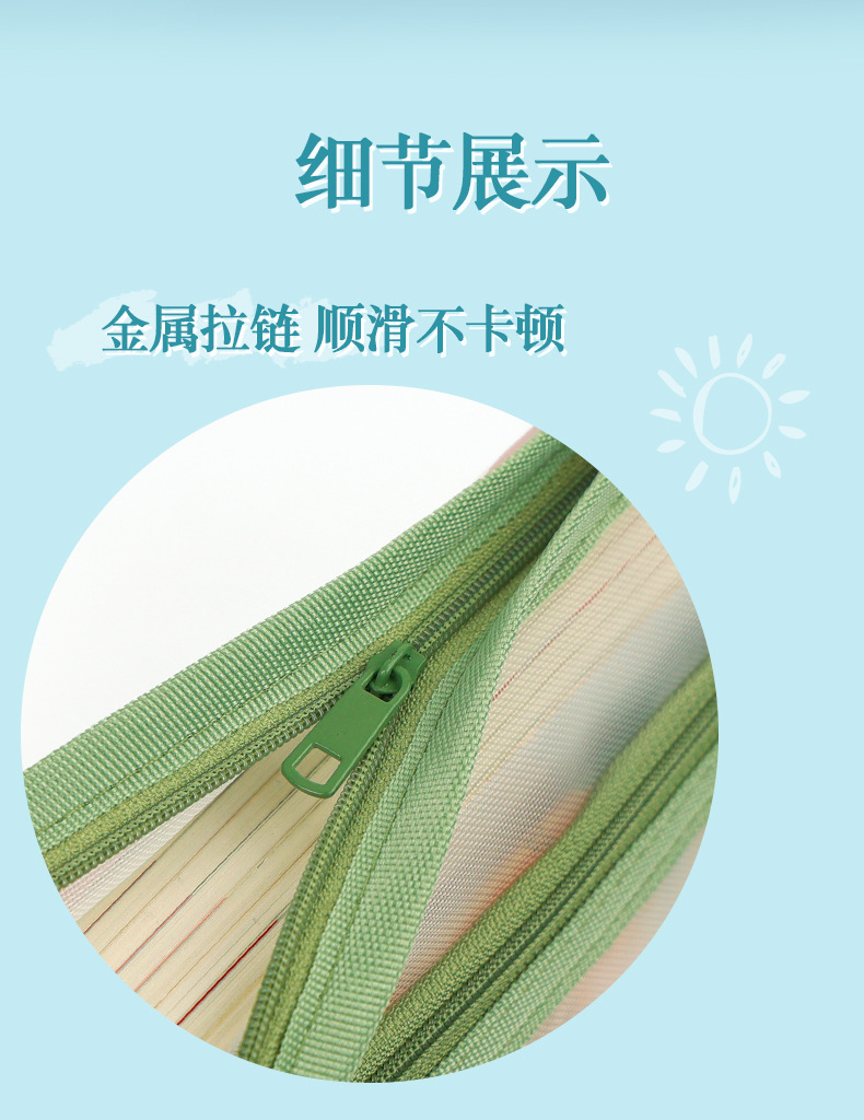 Huajie 주제 분류 가방 투명 메쉬 파일 가방 학생 토일 백 휴대용 휴대용 책 가방 지퍼 보관 가방스토어 가기
