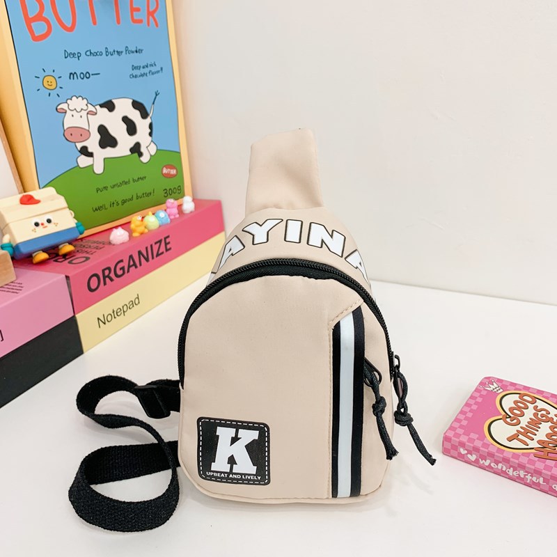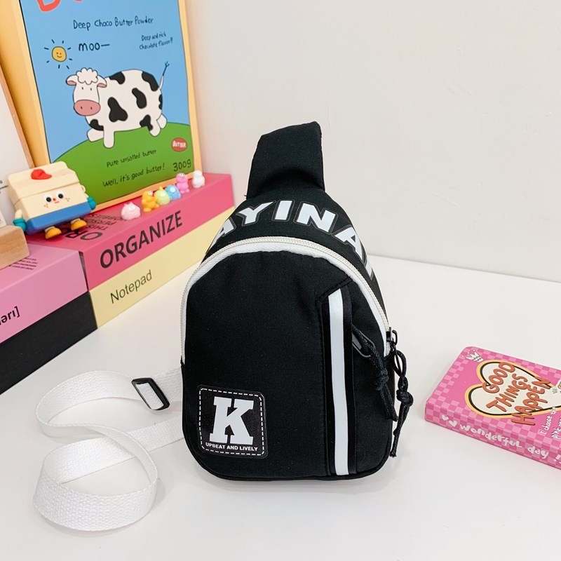 2025 새로운 소년 가슴 가방 대조 인쇄 된 편지 어린이 가방 경량 경량 경량 소녀 어깨 크로스 바디 백 허리 가방스토어 가기