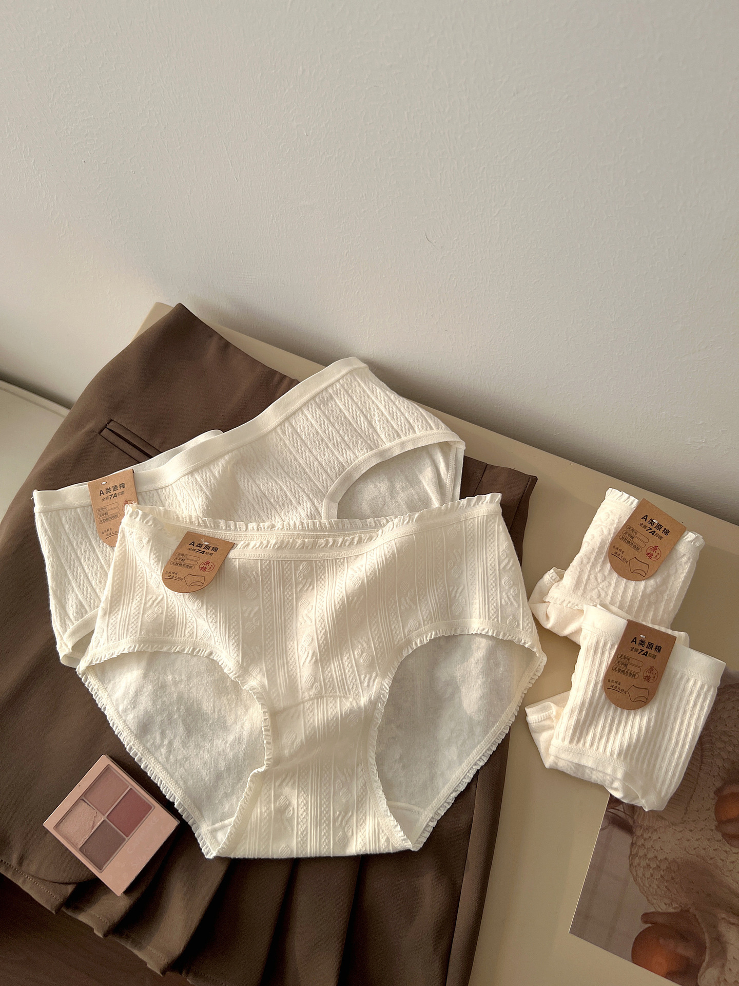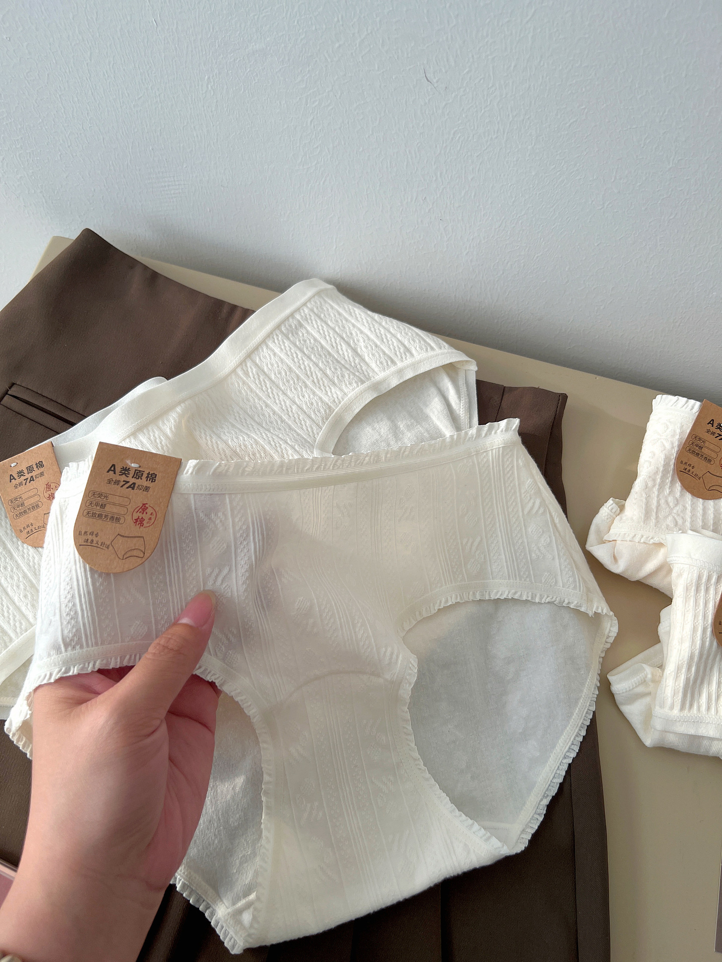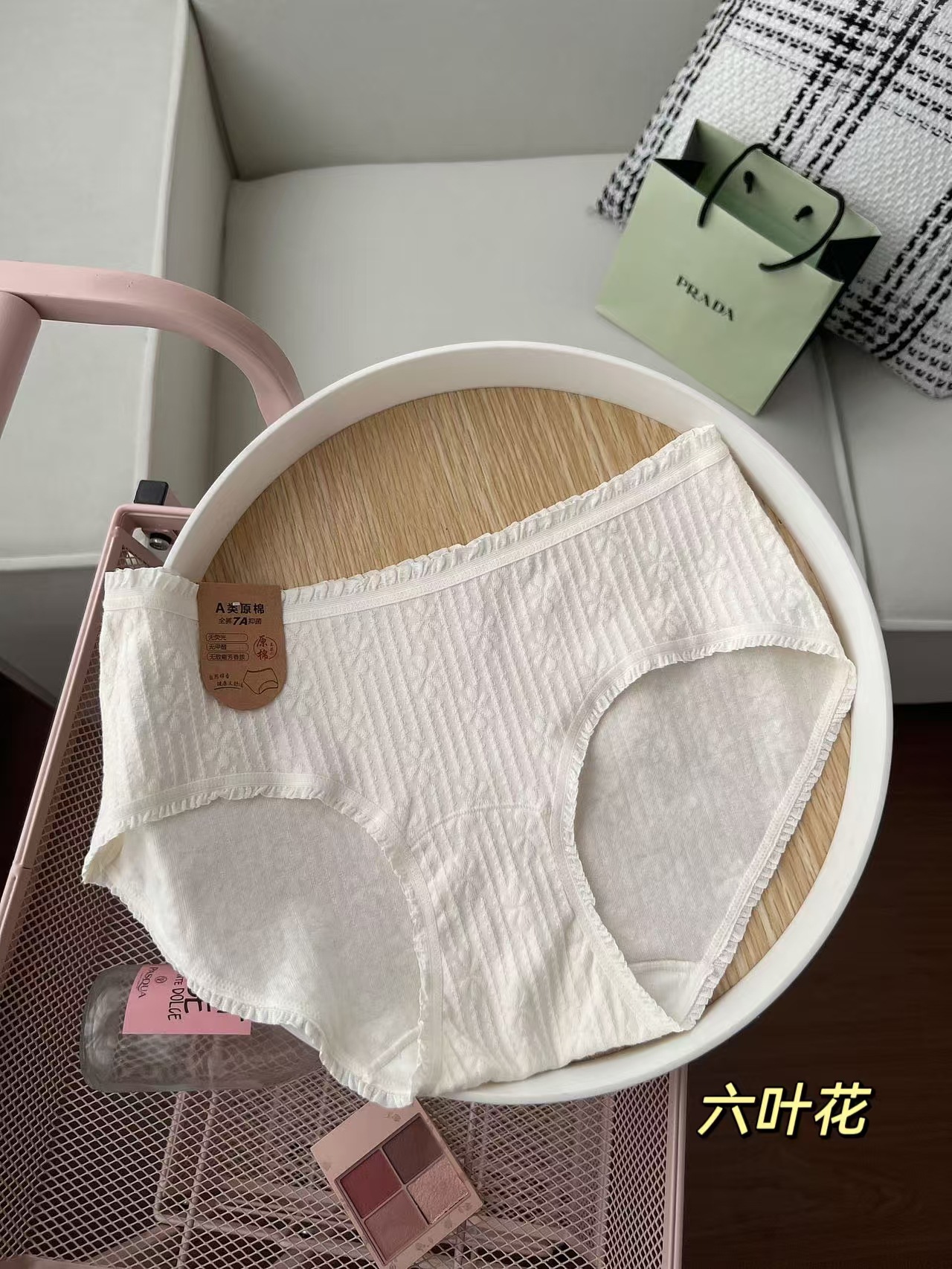 7A Raw Cotton Bacteriostatic Spring and Summer Cotton Crotch Girl Breathable Jacquard High Elastic Comfortable Class A Mid-Waist Ladies Briefs