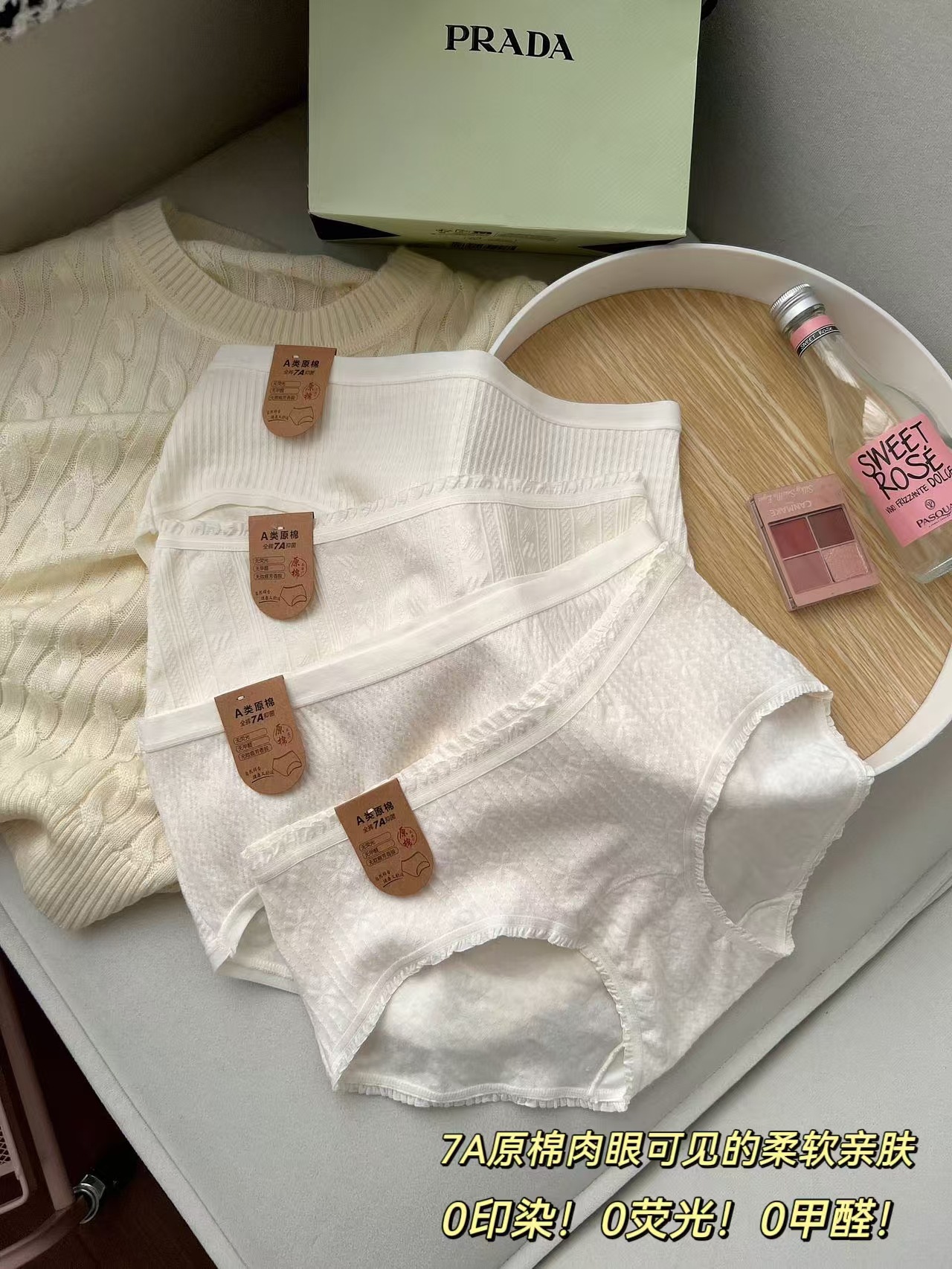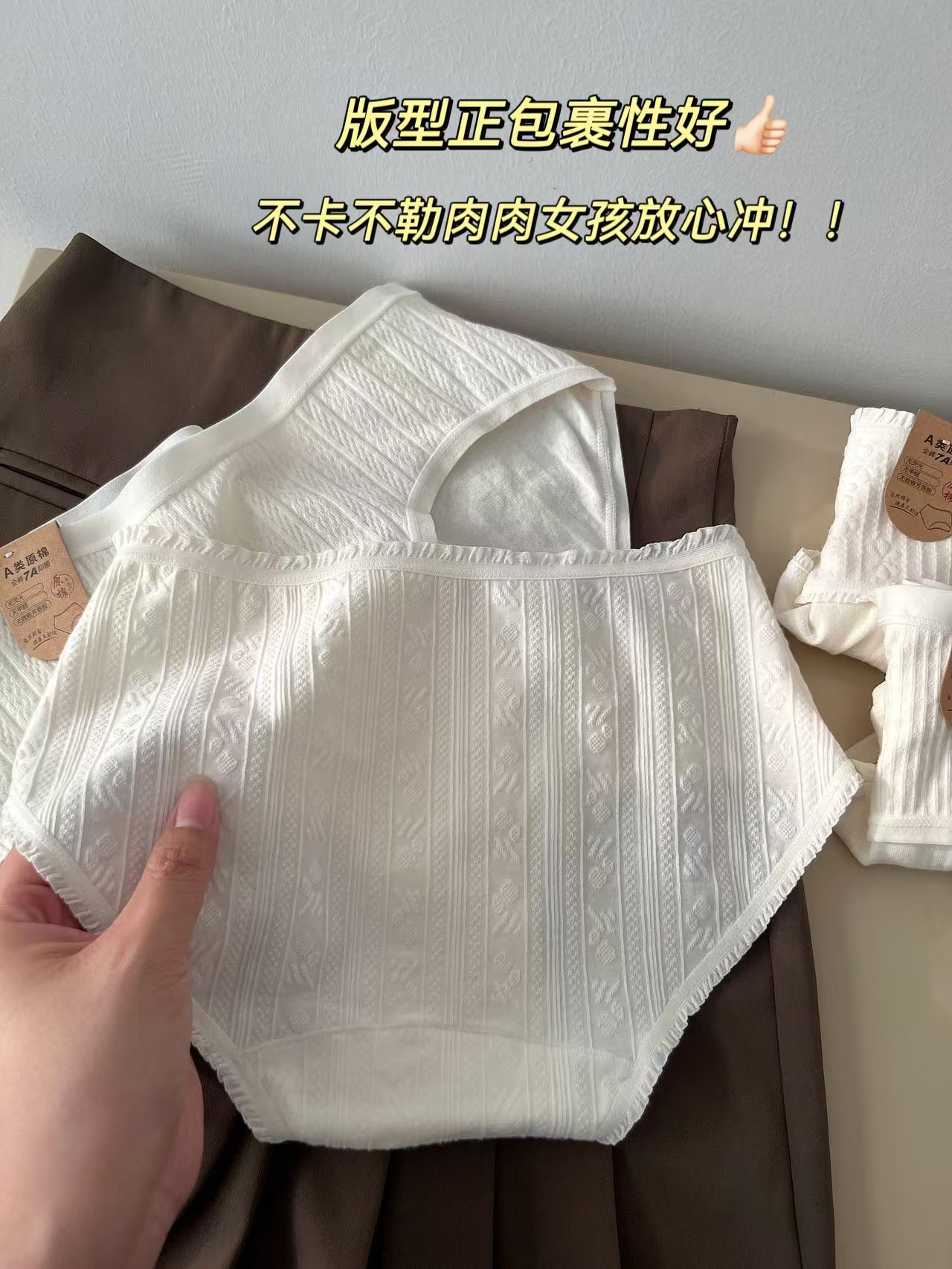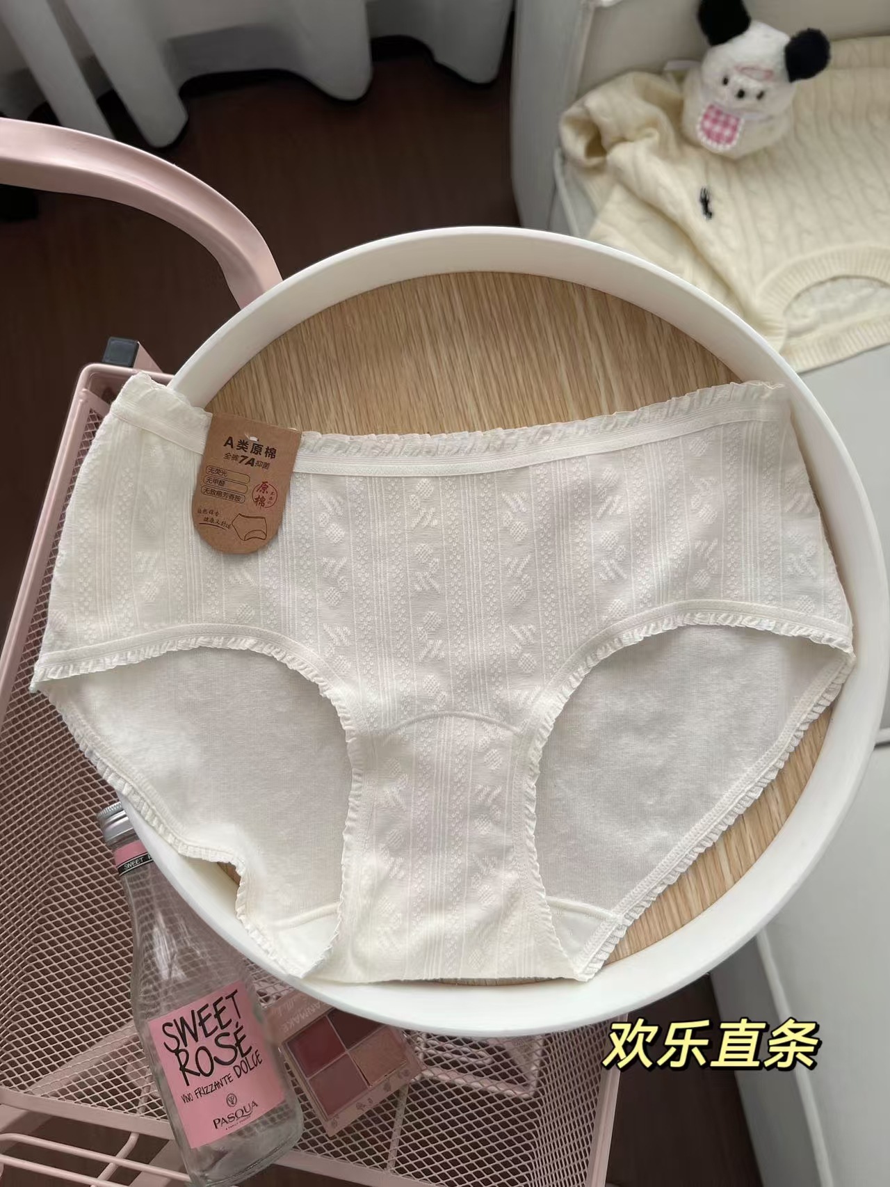 7A Raw Cotton Bacteriostatic Spring and Summer Cotton Crotch Girl Breathable Jacquard High Elastic Comfortable Class A Mid-Waist Ladies Briefs