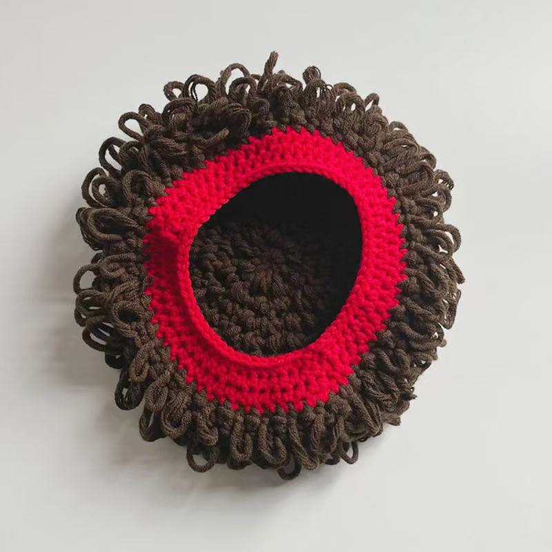 • 베이비 가발 모자 - 브라운 레드 매듭