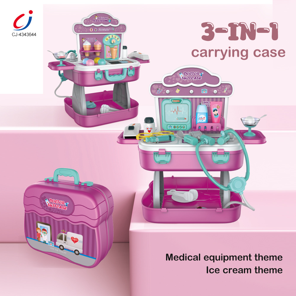 국경 간 어린이 장난감 놀이 홈 세트 의료 도구 아이스크림 가게 3-6 세 소녀를위한 다기능 가방 선물스토어 가기