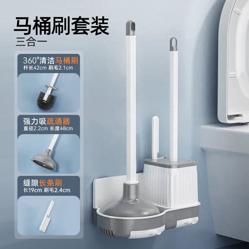 기본 가죽 플런저 준설 청소 브러시가 장착 된 새로운 화장실 브러시 세트 사각 화장실 브러시 벽이 3 대 1 로 매달려 있습니다.