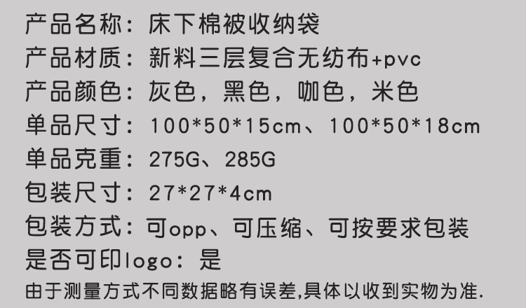 아마존 뜨거운 판매 부직포 내장 저장 가방 접이식 이불 저장 상자 옷 방진 및 방습 가정용
