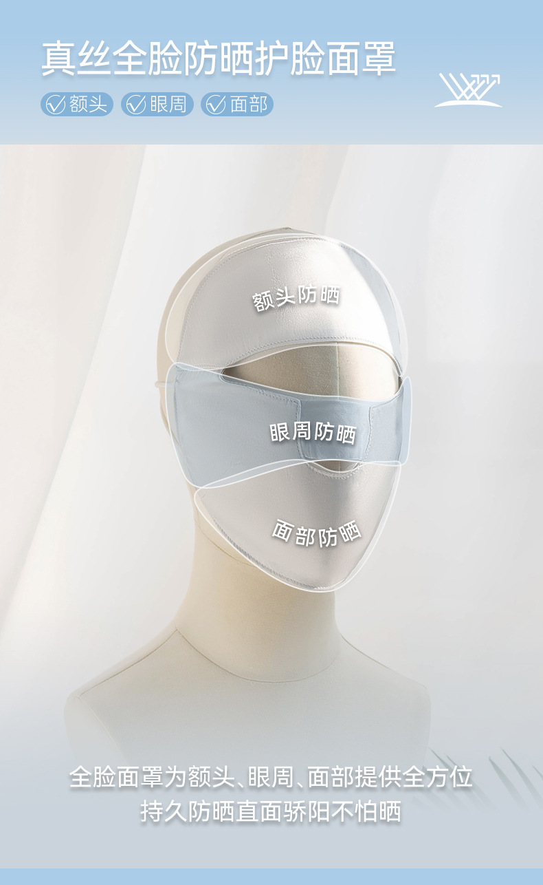 실크 자외선 차단 마스크, 얼굴 전체를 덮는 마스크, 자외선 및 블루라이트 차단, 실크 여성용 미용 마스크