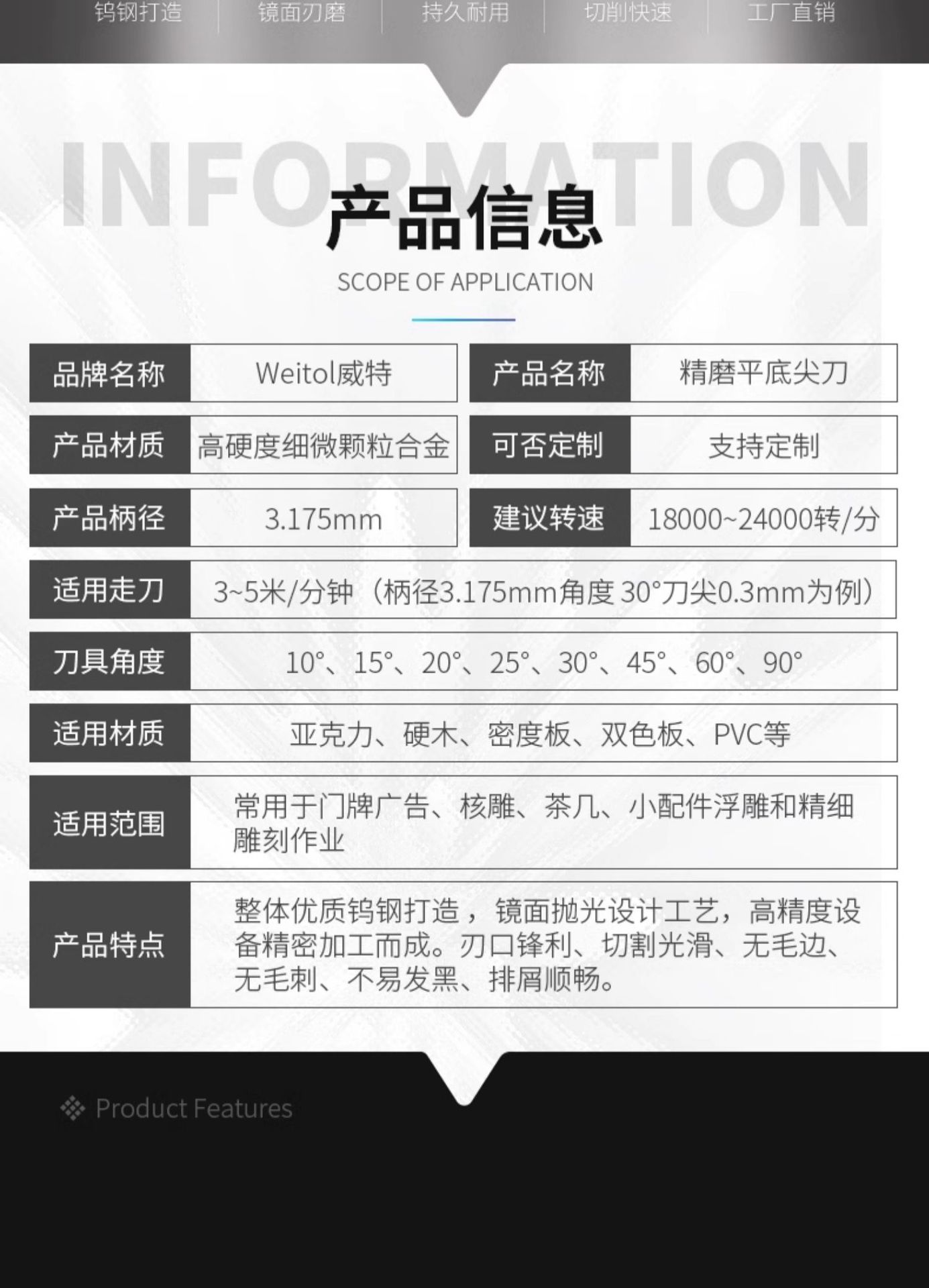 M & M & Witt 3.175 평평한 바닥 날카로운 칼 테이퍼 평평한 바닥 칼 텅스텐 강철 cnc 조각 칼 목공 조각 칼 조각 기계