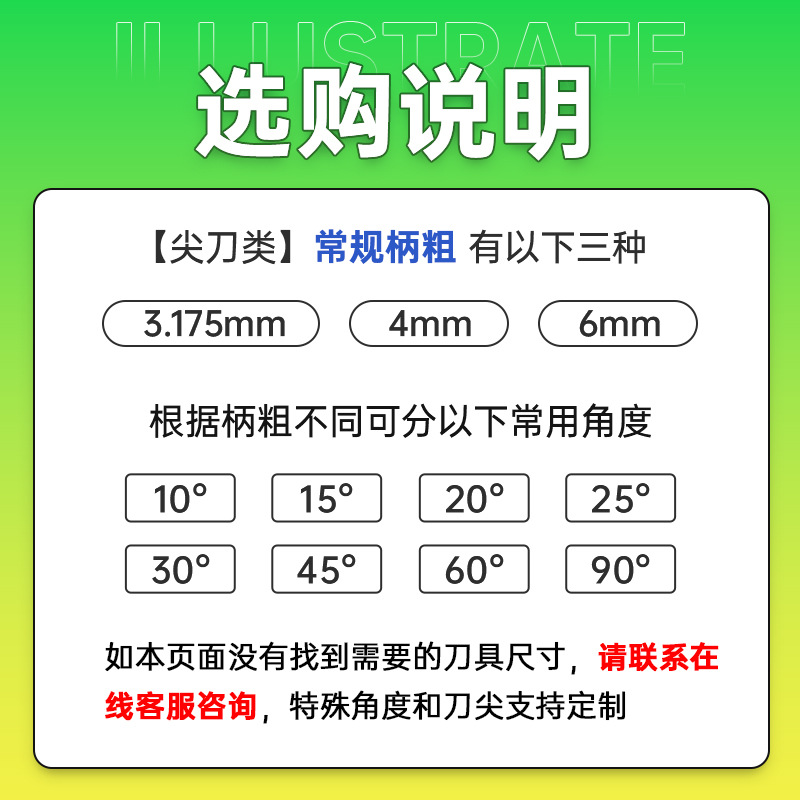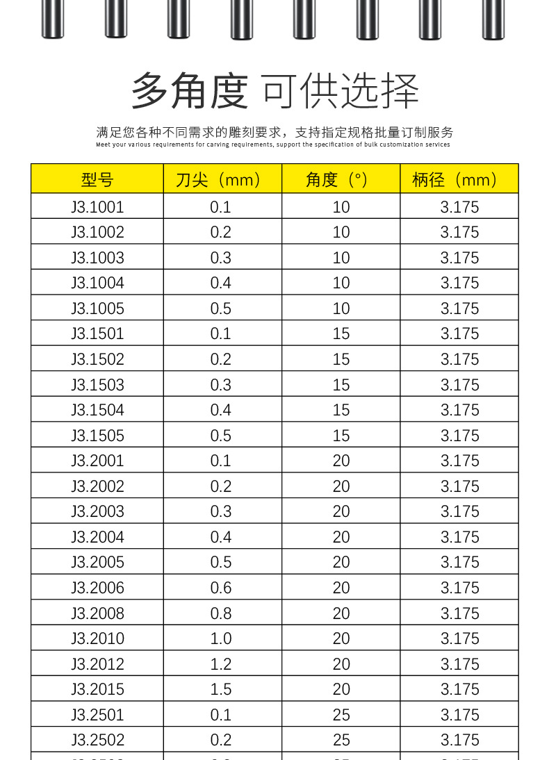 • 모델: 생크 직경 x 전체 각도 x 팁