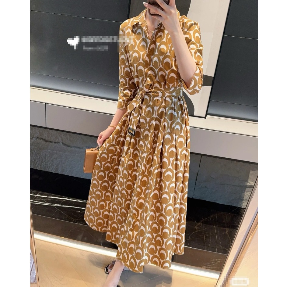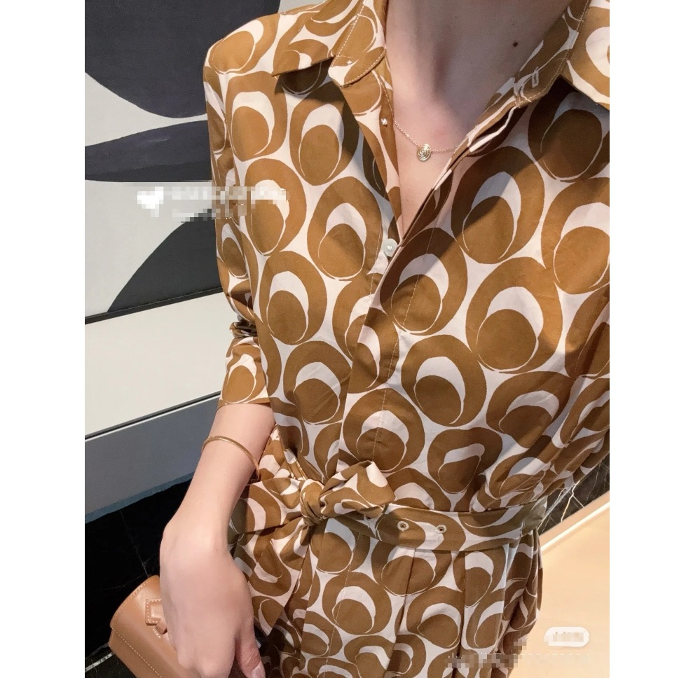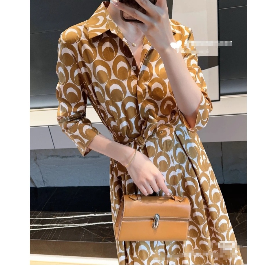 MAX25 봄과 여름 새로운 우아한 기하학적 인쇄 고밀도 코튼 포플린 우아한 슬림 핏 벨트 셔츠 원피스스토어 가기