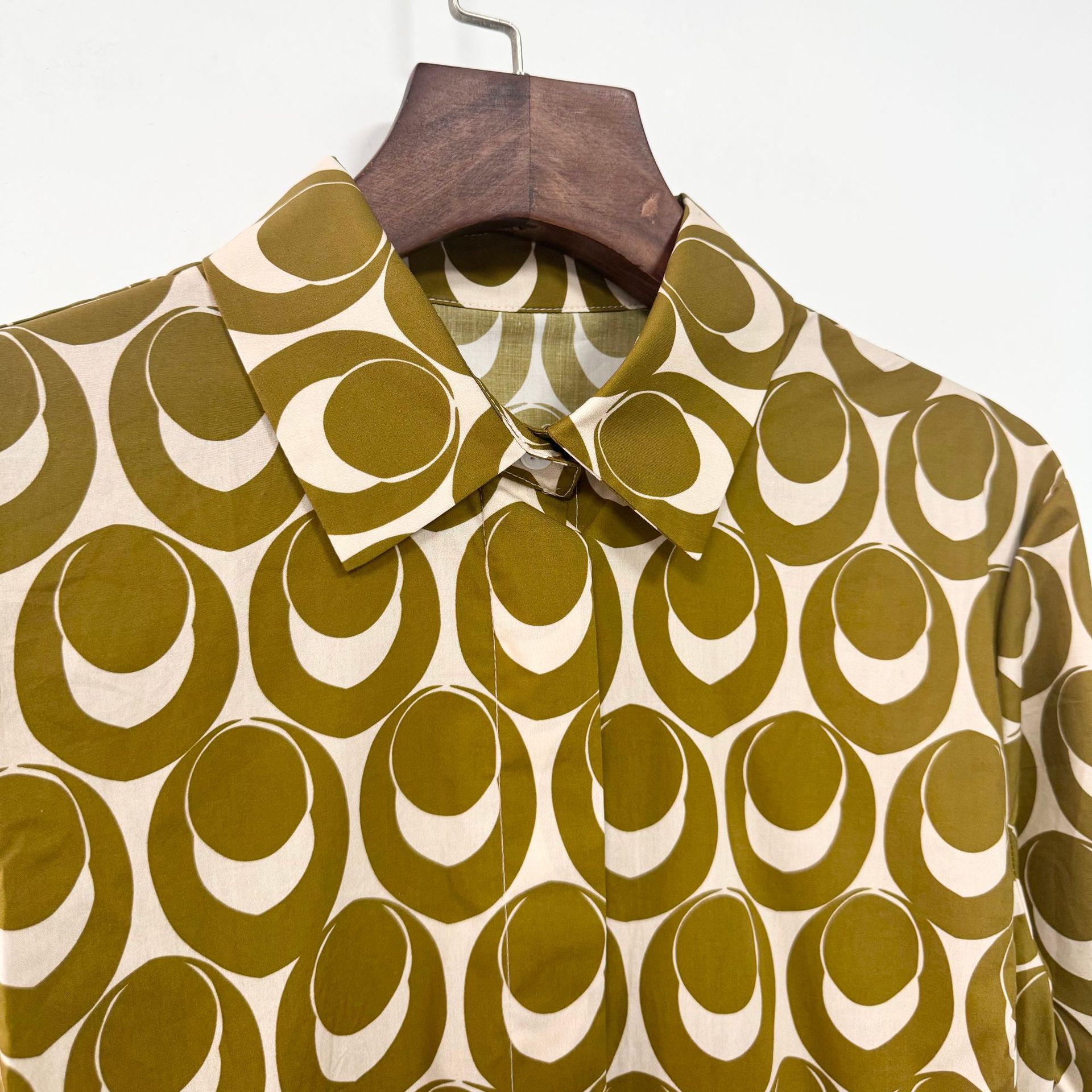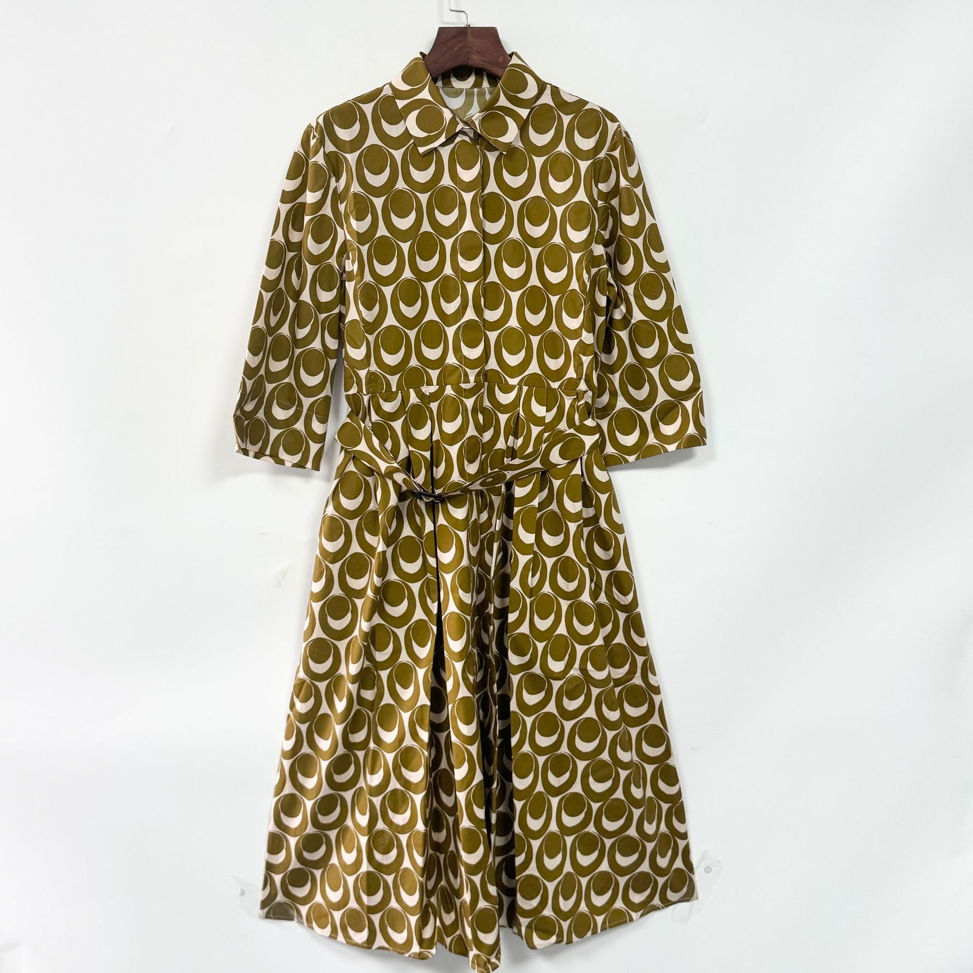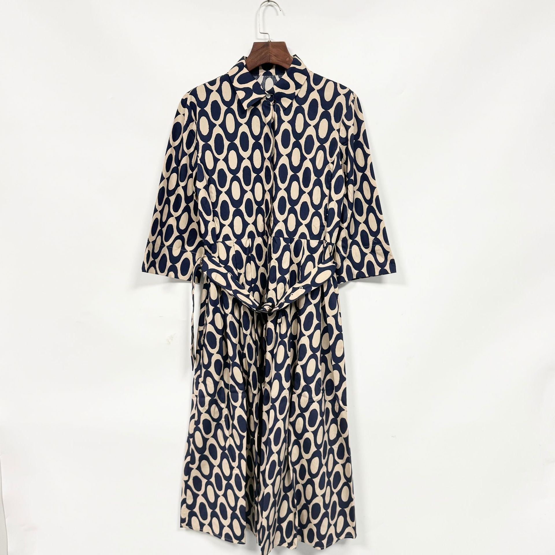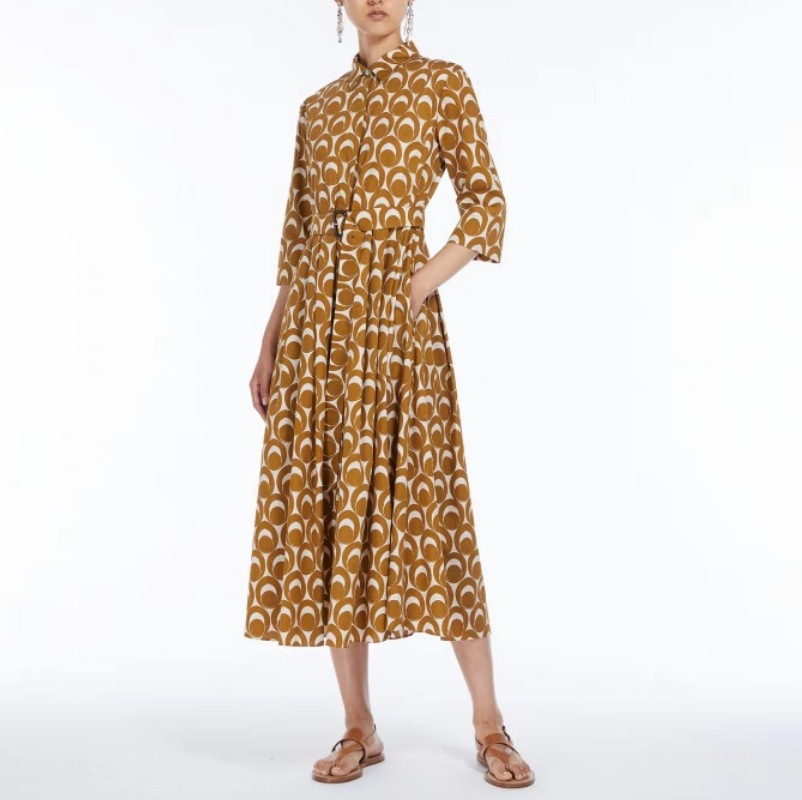 MAX25 봄과 여름 새로운 우아한 기하학적 인쇄 고밀도 코튼 포플린 우아한 슬림 핏 벨트 셔츠 원피스