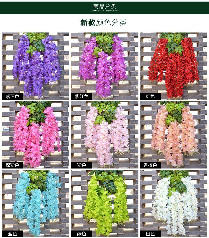 등나무 꽃 가짜 꽃 바이올렛 천장 꽃 덩굴 암호화 실내 웨딩 장식 덩굴 플라스틱 덩굴 식물스토어 가기