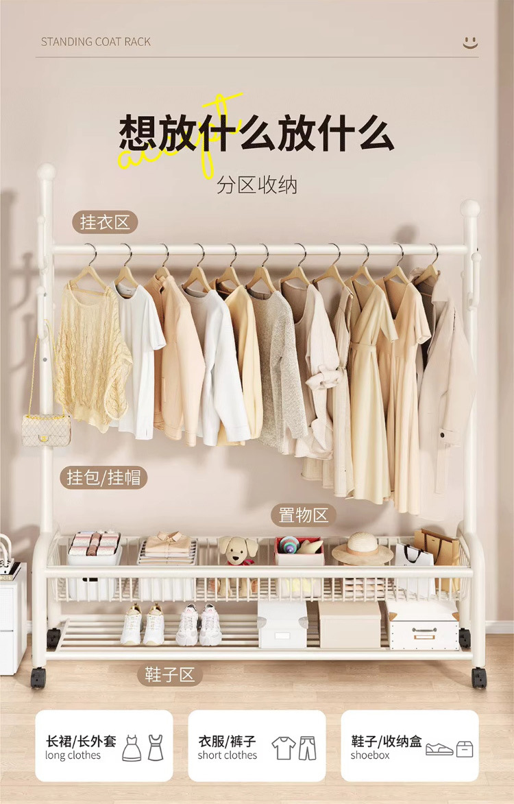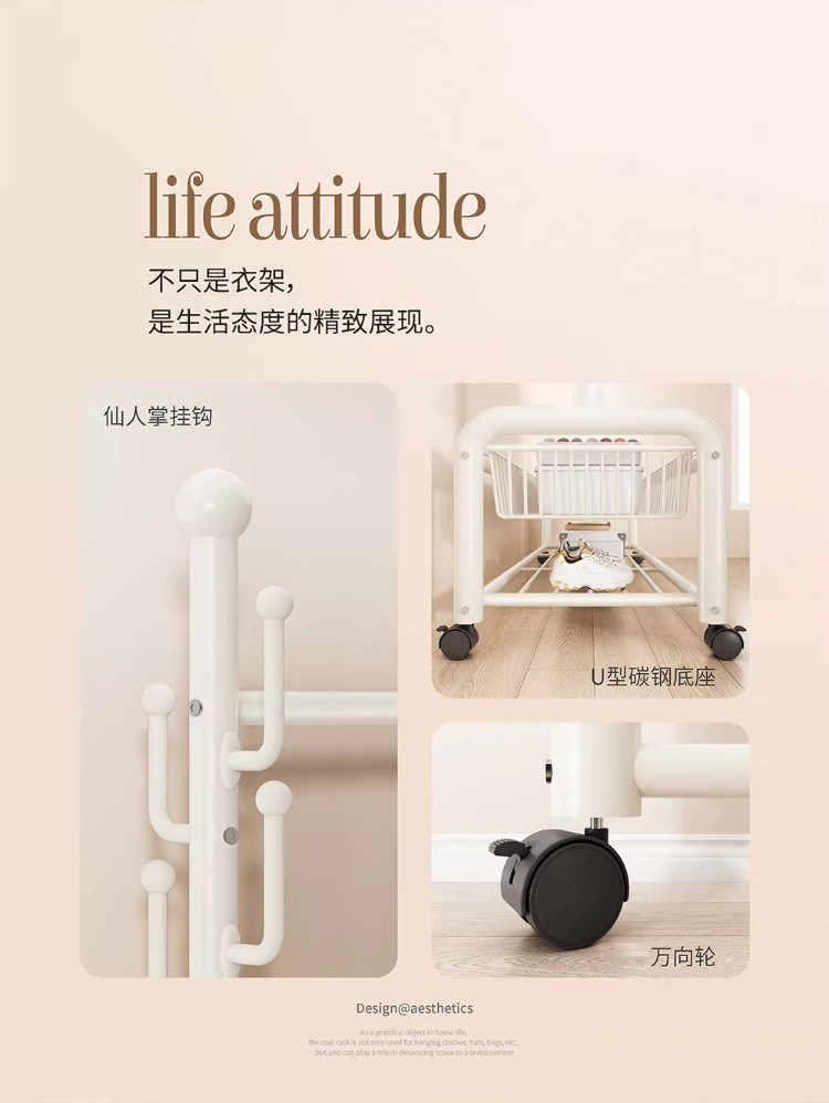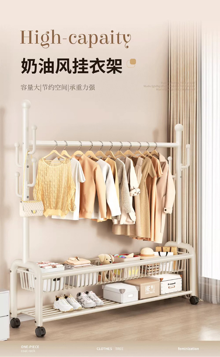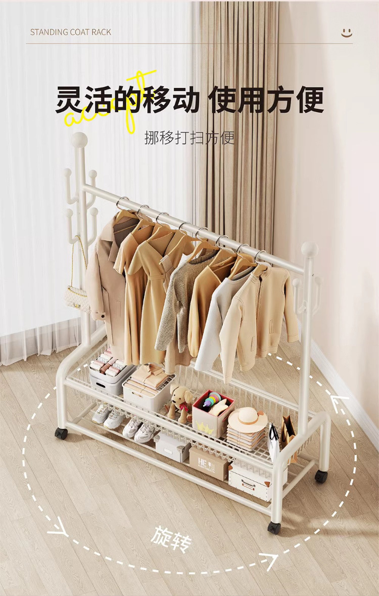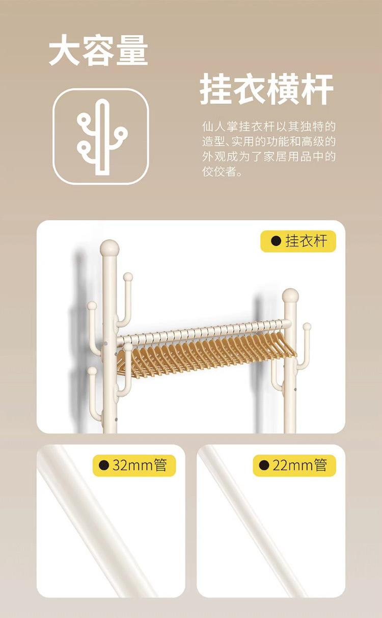 가정용 침실 건조 랙 대용량 편리한 모바일 코트 랙 도매 선인장 프레임 바닥 걸이스토어 가기