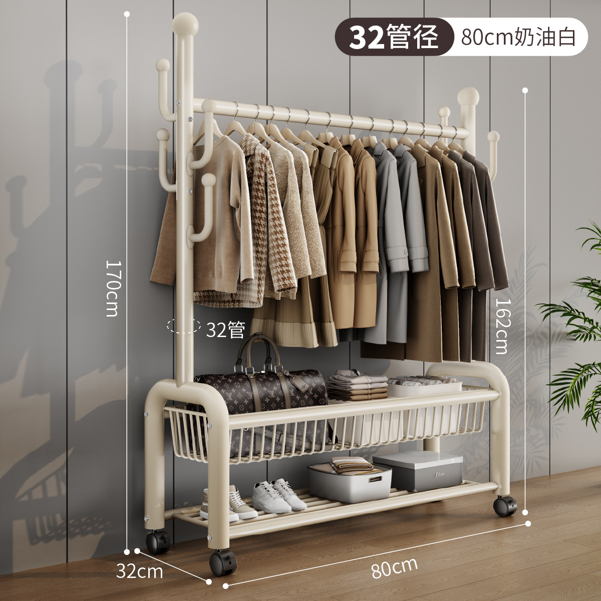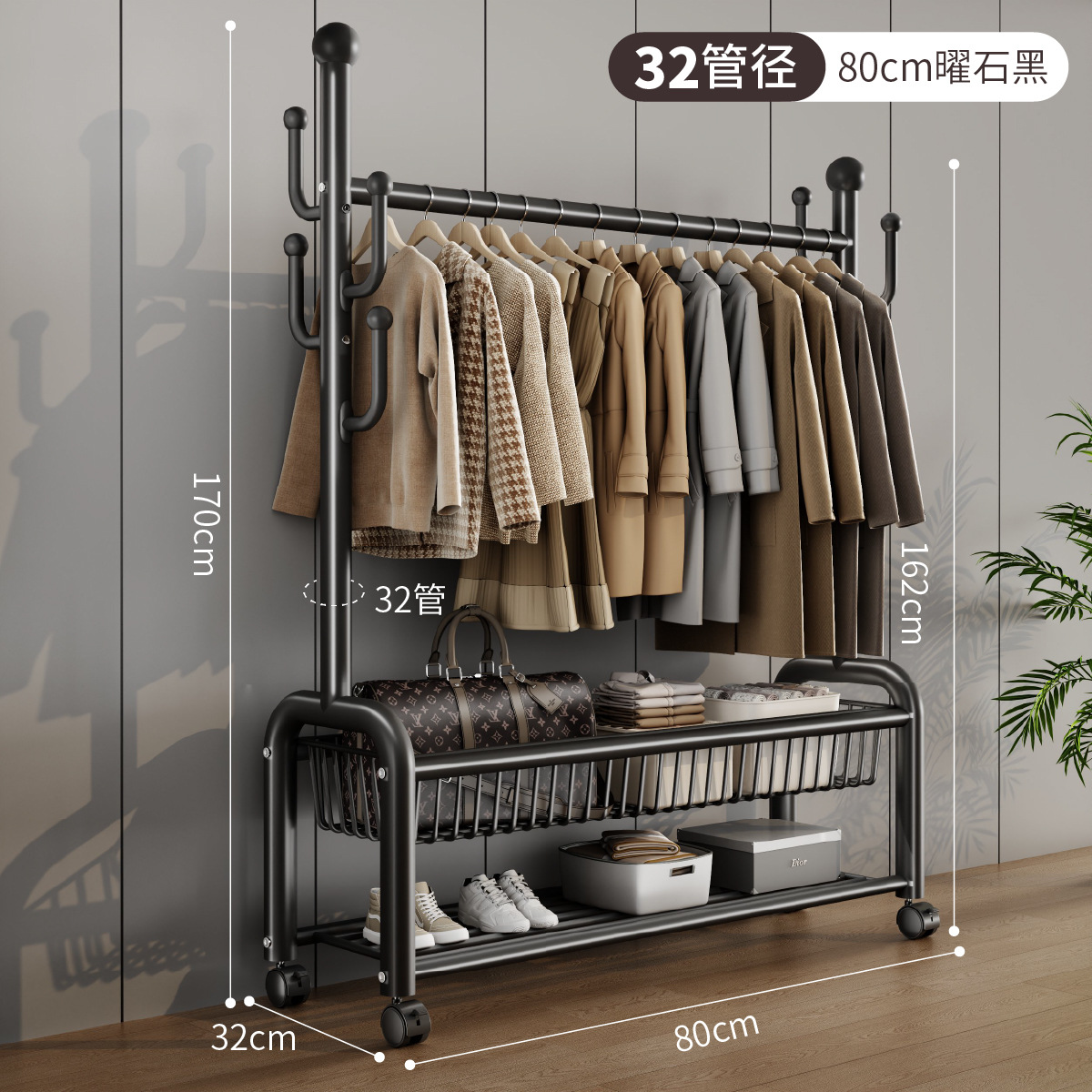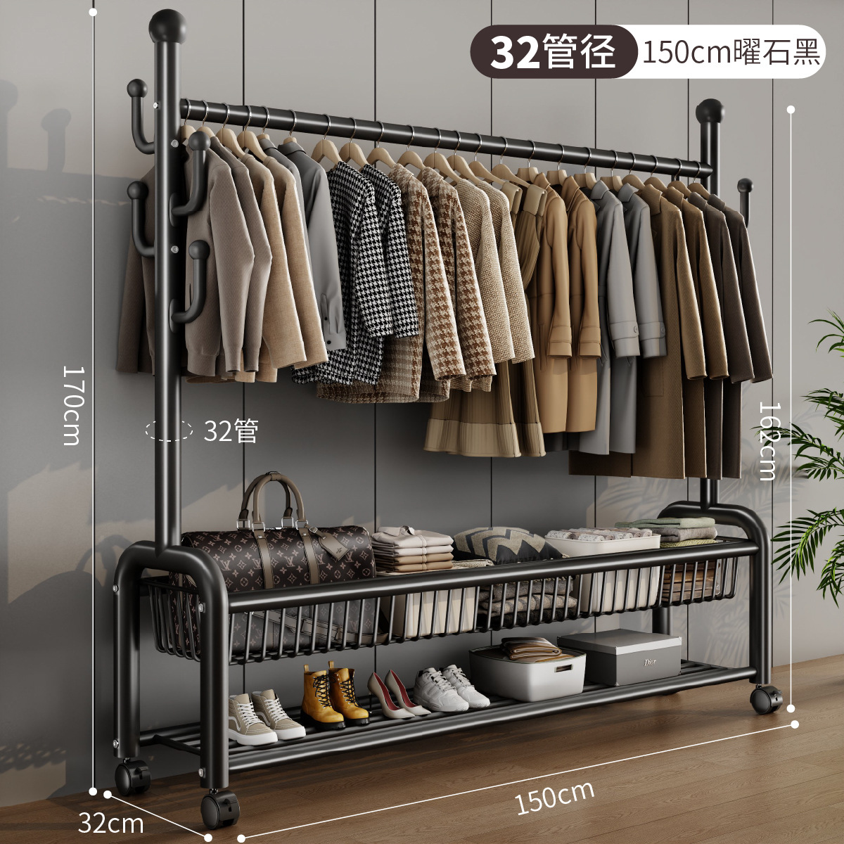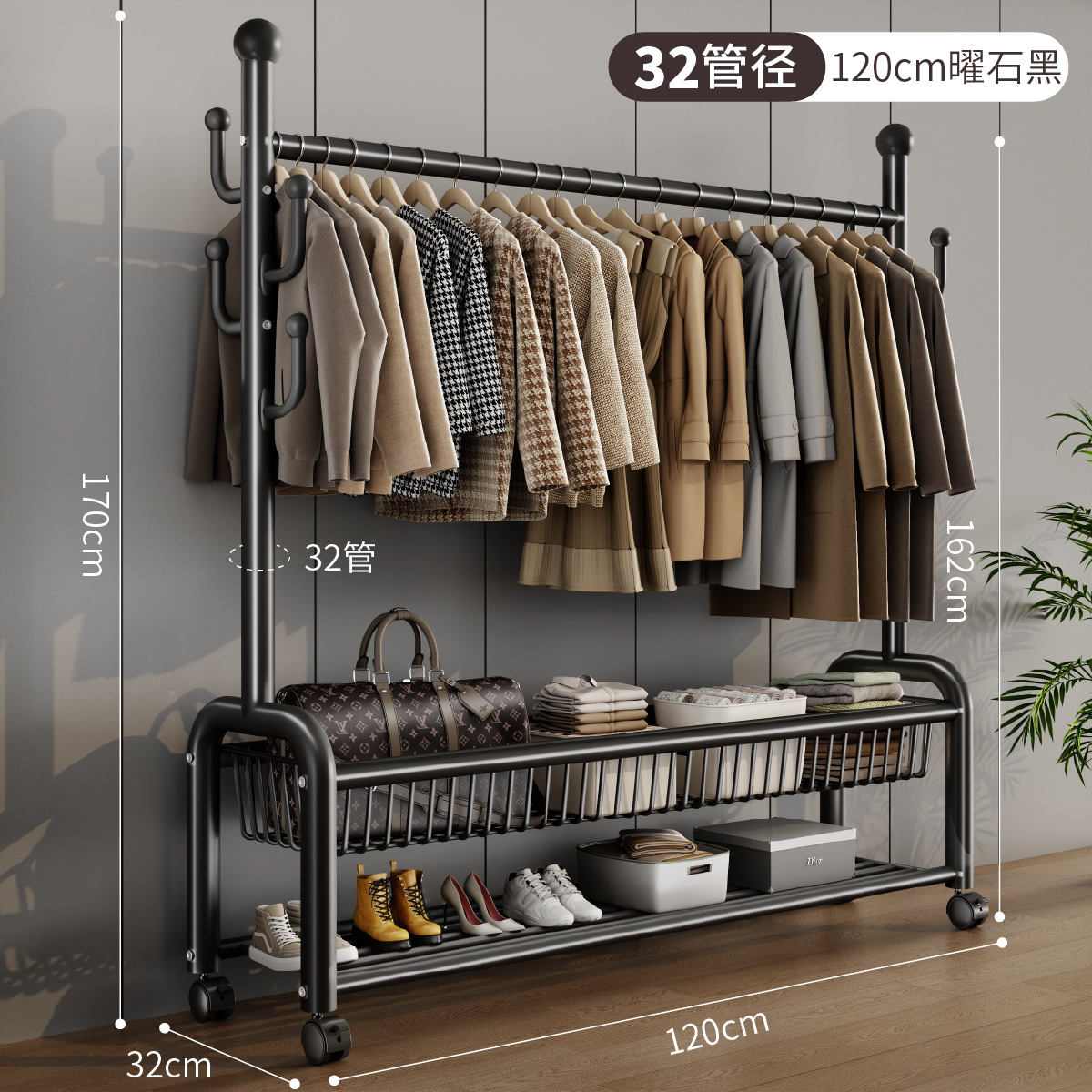 가정용 침실 건조 랙 대용량 편리한 모바일 코트 랙 도매 선인장 프레임 바닥 걸이스토어 가기