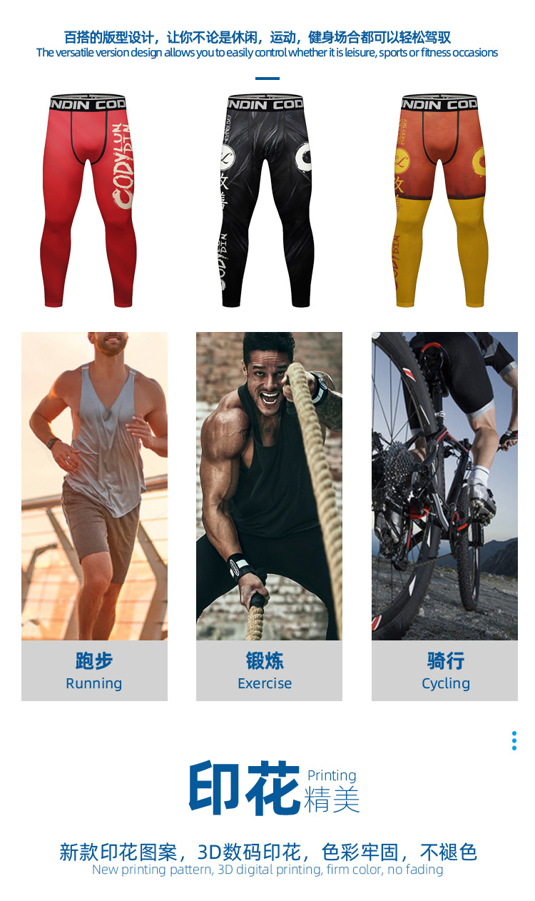 새로운 유럽과 미국의 국경 간 남자 달리기 바지 땀이 나는 빠른 건조 인쇄 꽉 끼는 편안한 캐주얼 스포츠 바지