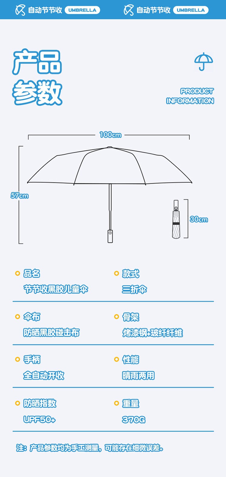 자동 안전 반 반동 어린이 우산 소녀 초등학교 반사 스트립 접히는 맑고 비오는 우산