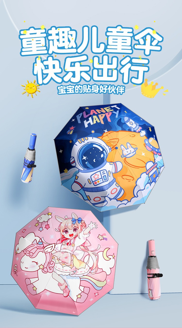 자동 안전 반 반동 어린이 우산 소녀 초등학교 반사 스트립 접히는 맑고 비오는 우산스토어 가기