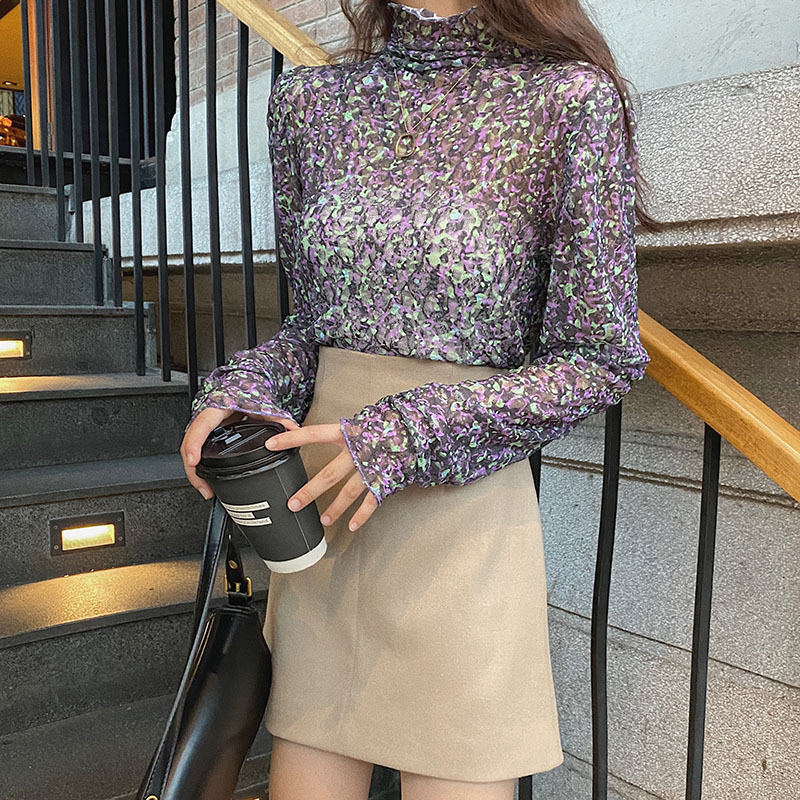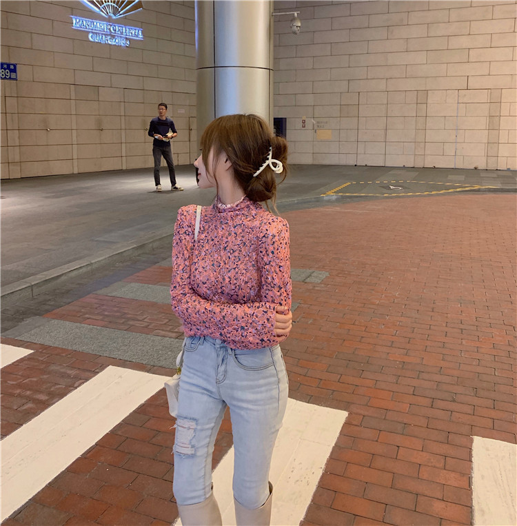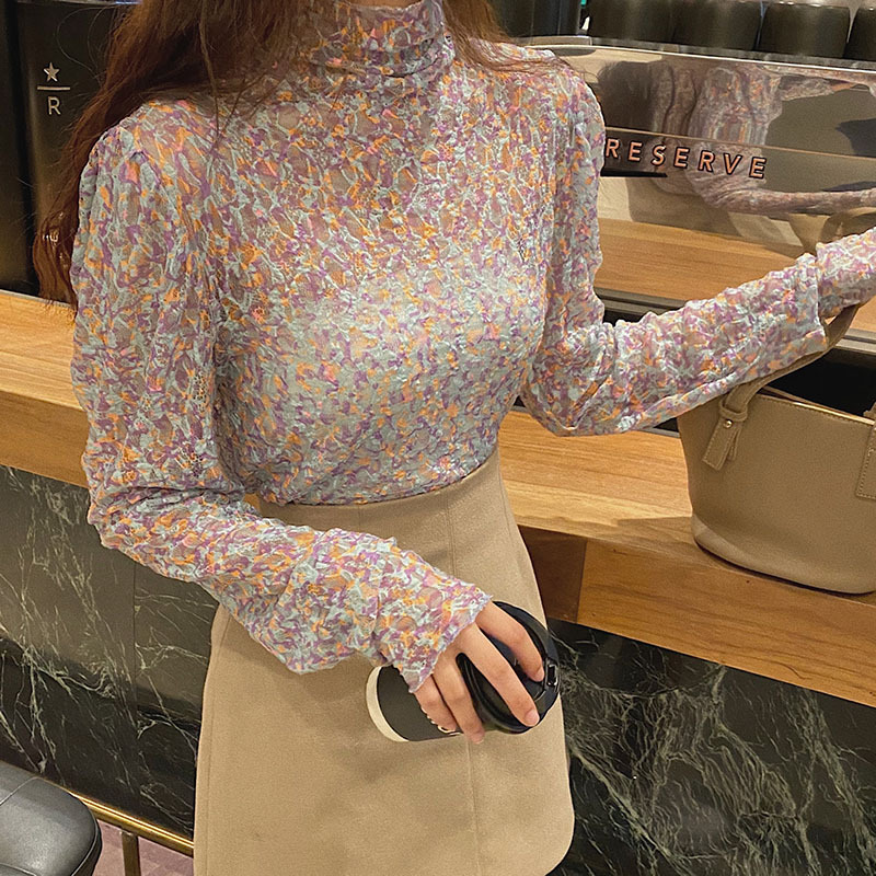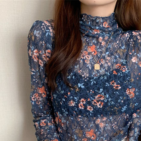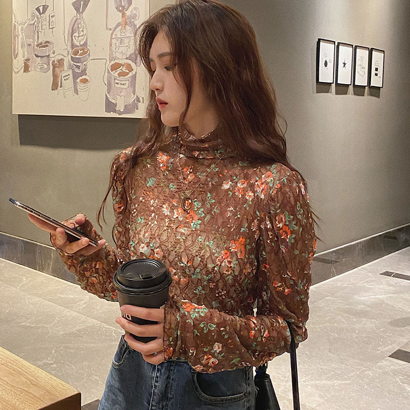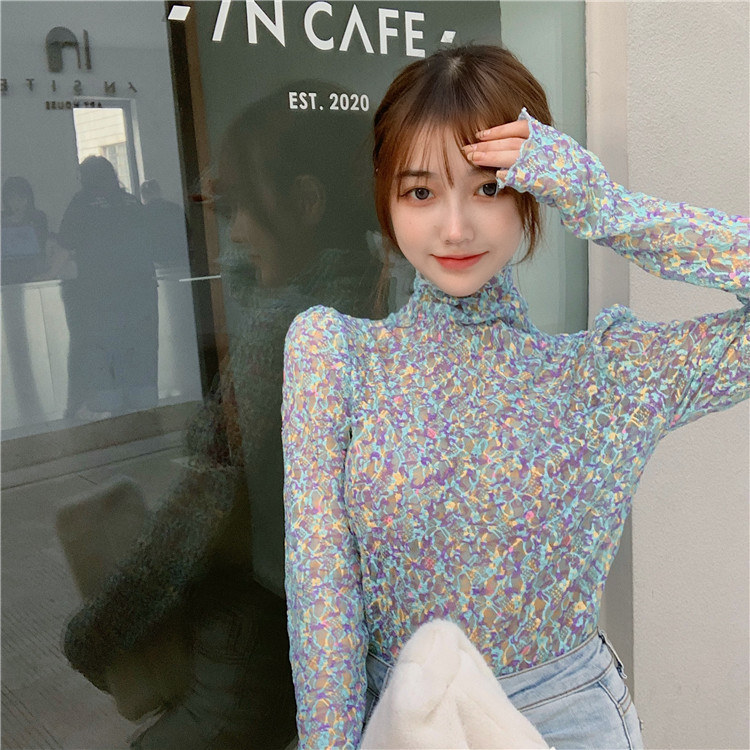 꽃 다재다능한 기본 셔츠 최고의 여성 가을 및 겨울 긴팔 슬림 핏 하이 칼라 내복 새로운 스타일 2025 인치 트렌디 티셔츠스토어 가기