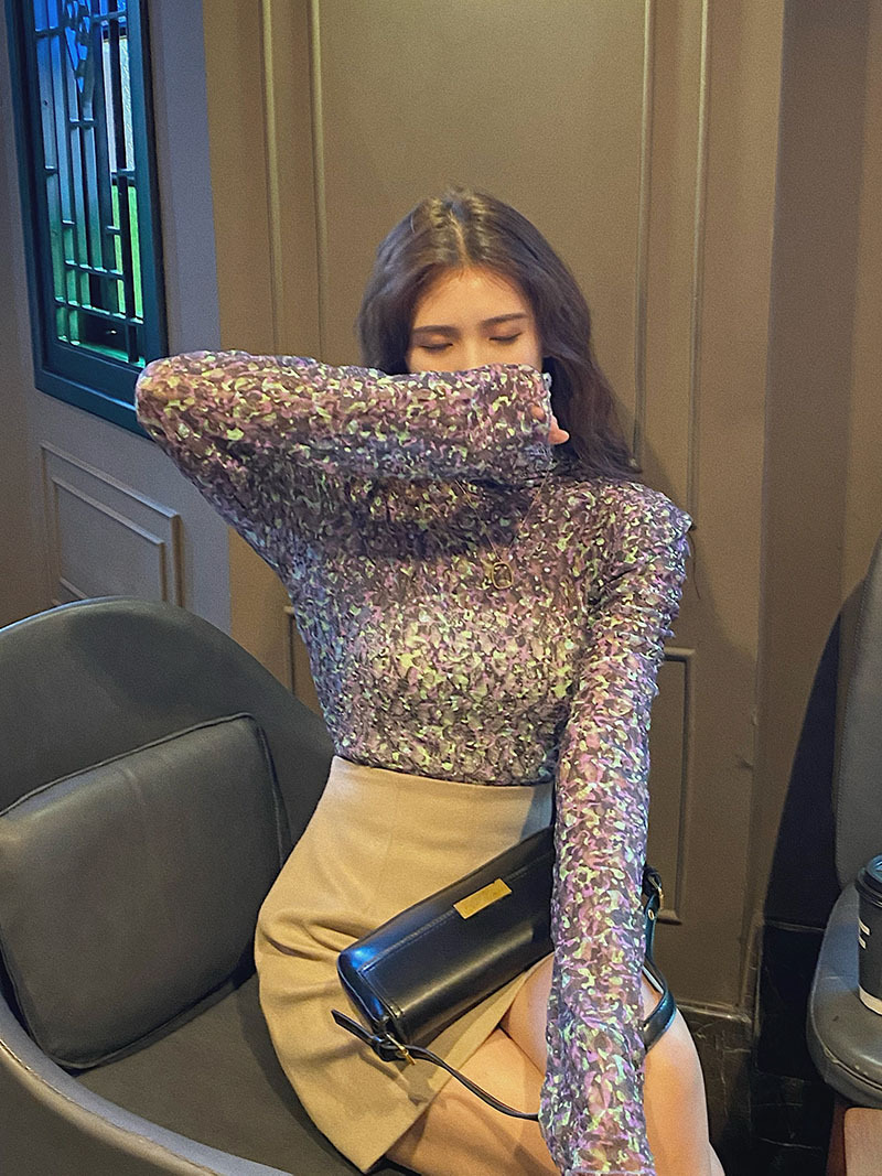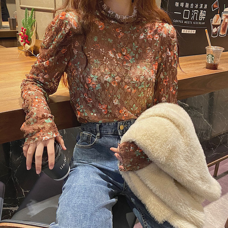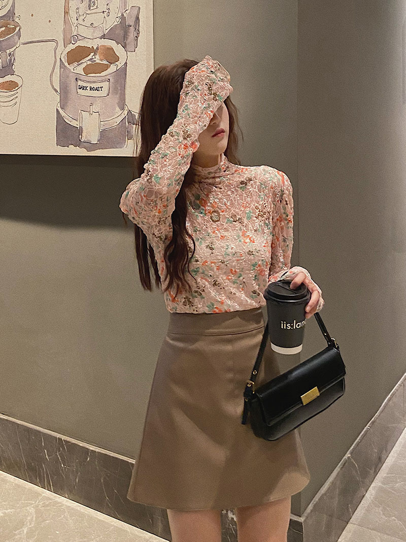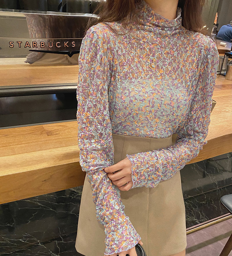 꽃 다재다능한 기본 셔츠 최고의 여성 가을 및 겨울 긴팔 슬림 핏 하이 칼라 내복 새로운 스타일 2025 인치 트렌디 티셔츠