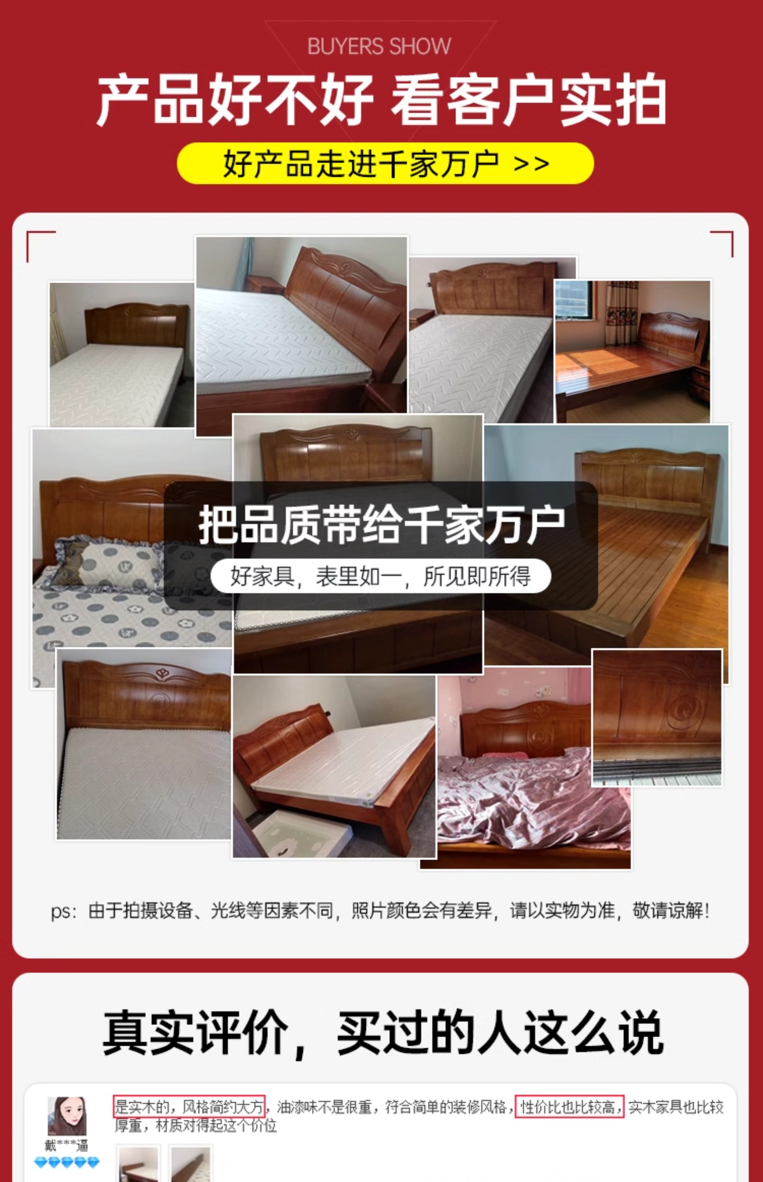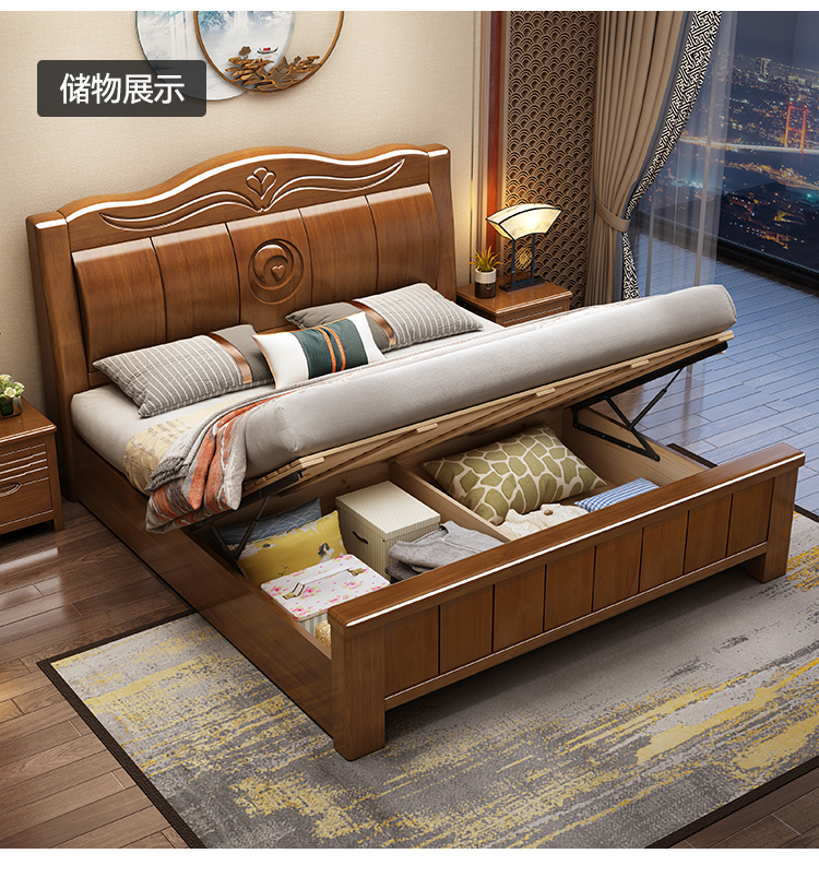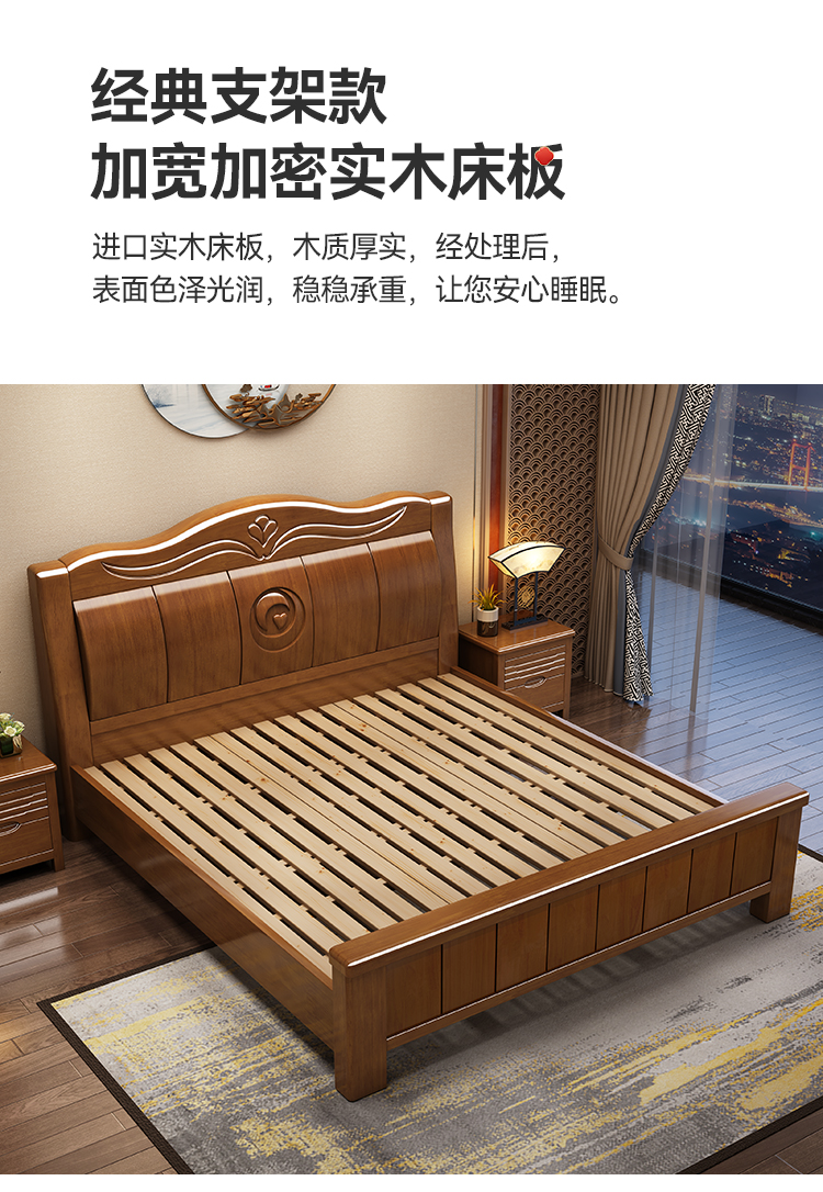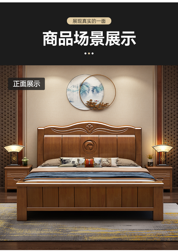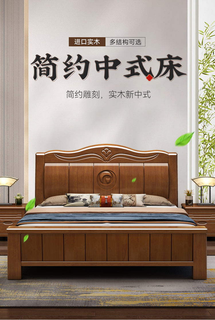 중국식 원목 침대 현대적이고 심플한 1.8m 더블 침대 마스터 침실 올 원목 1.5m 싱글 침대 공장 직판 침대스토어 가기