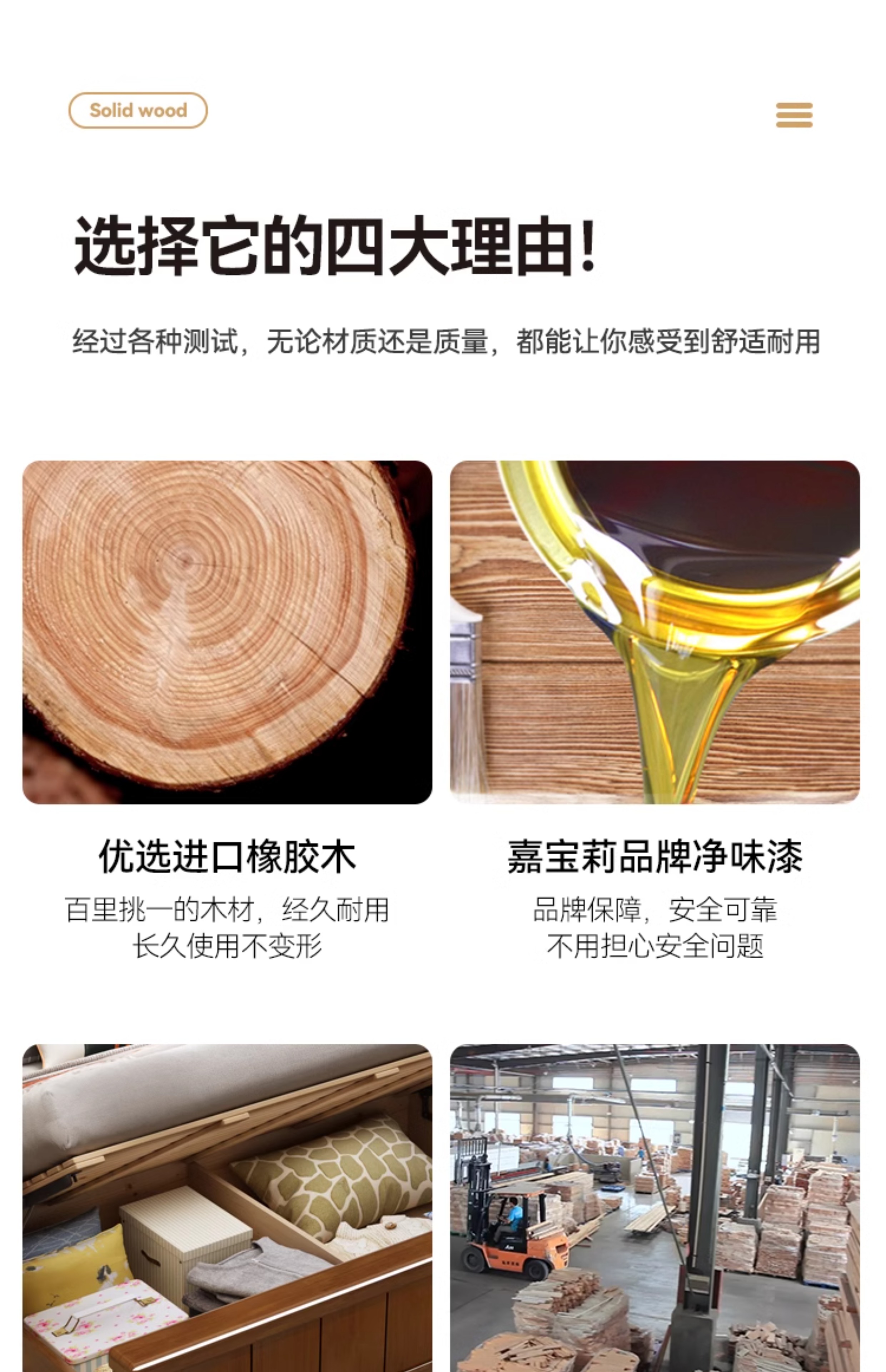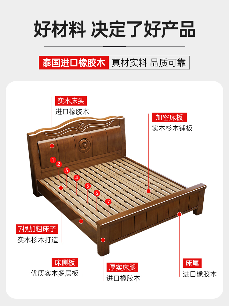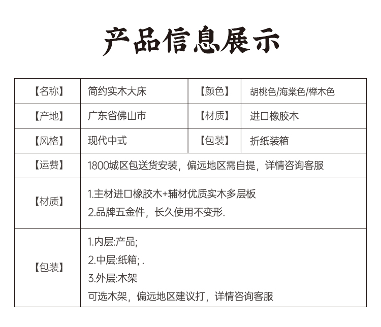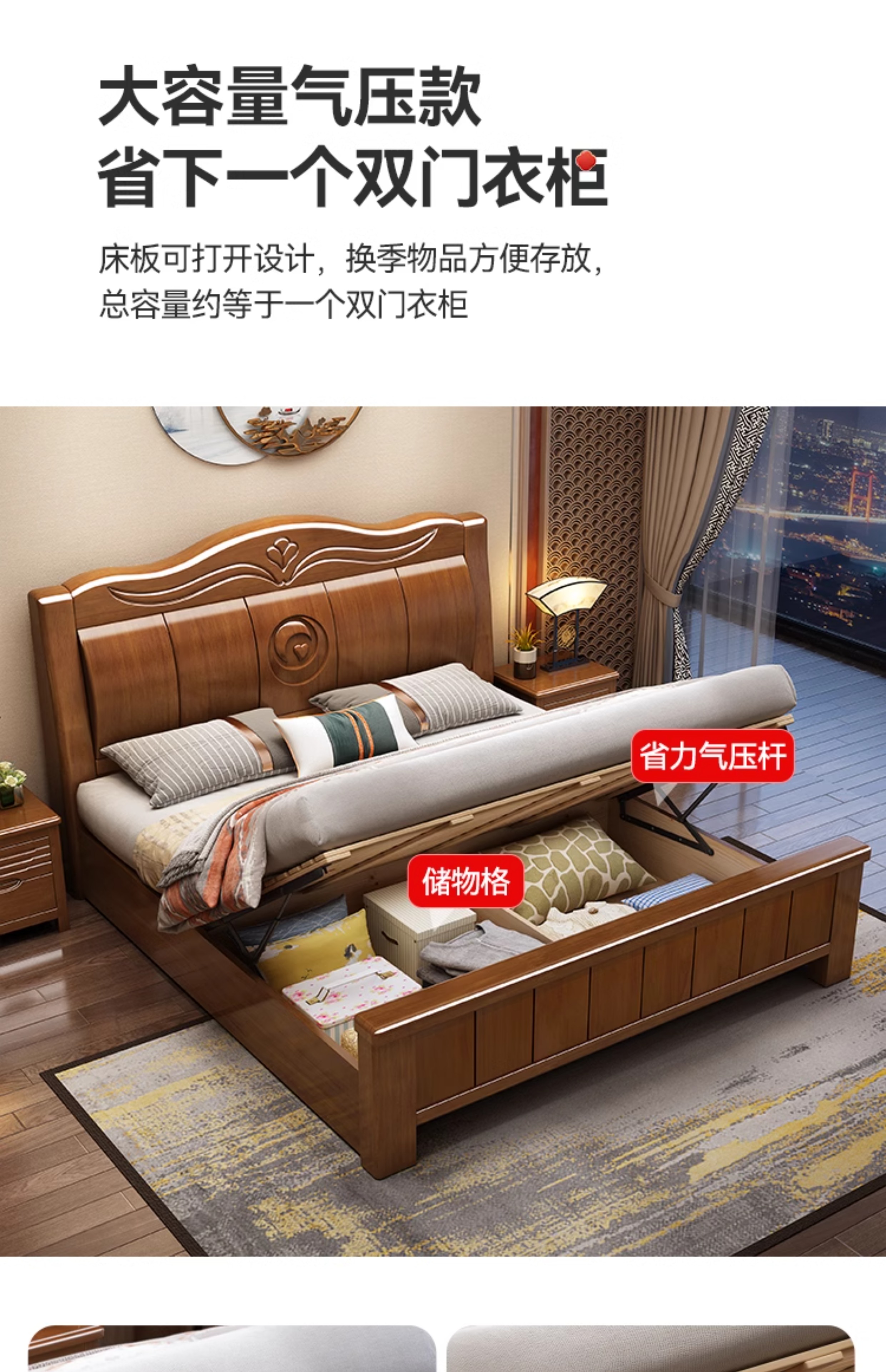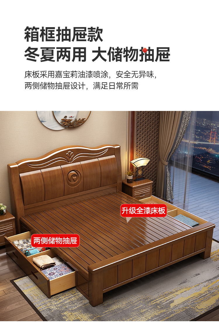 중국식 원목 침대 현대적이고 심플한 1.8m 더블 침대 마스터 침실 올 원목 1.5m 싱글 침대 공장 직판 침대스토어 가기