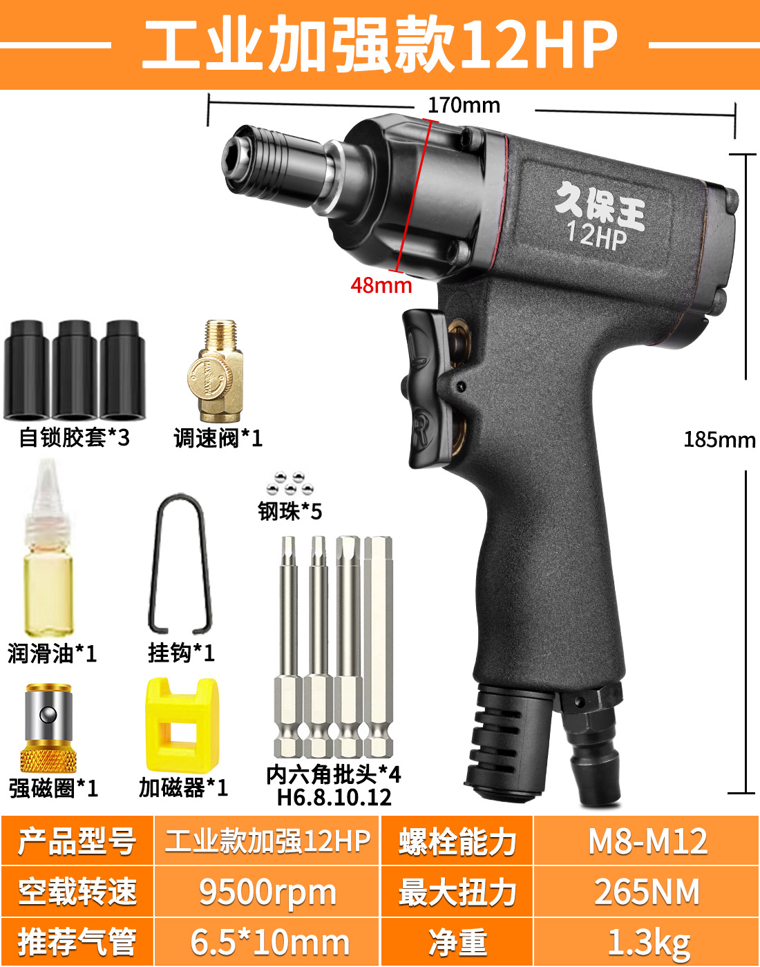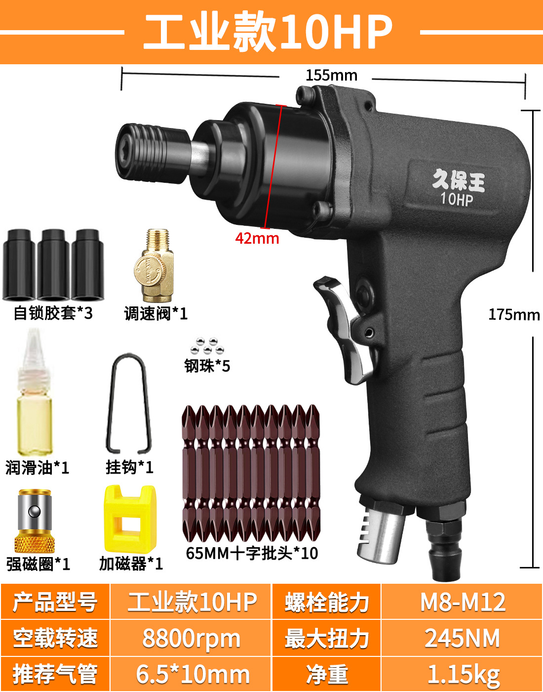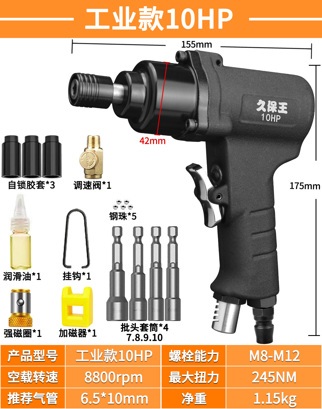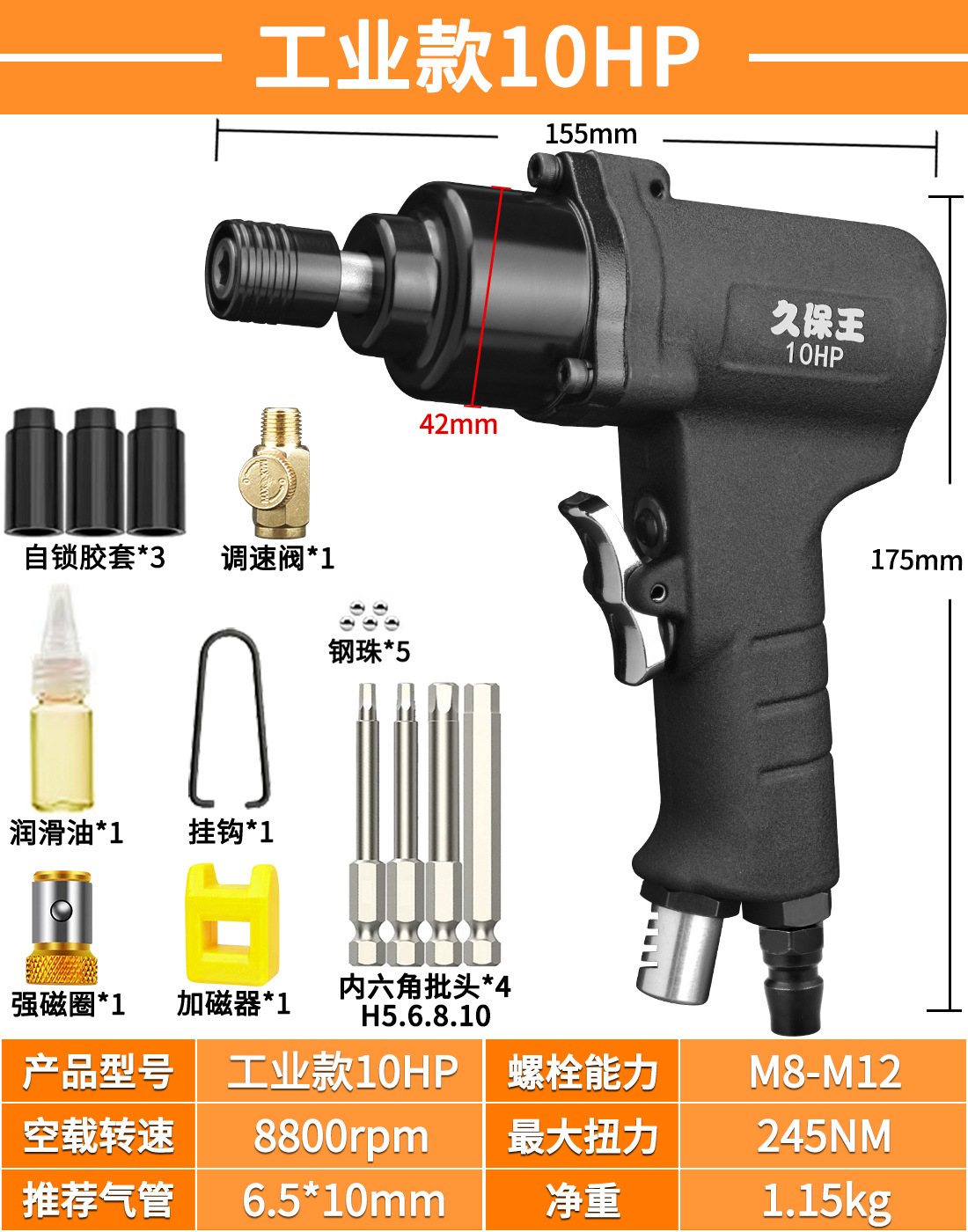 • Kubo King 10HP 산업용 모델 [더블 링 해머 구조] + 5.6.8.10 내부 육각형 높은 토크