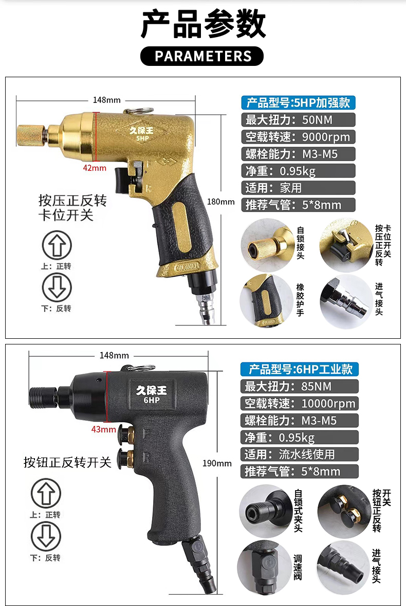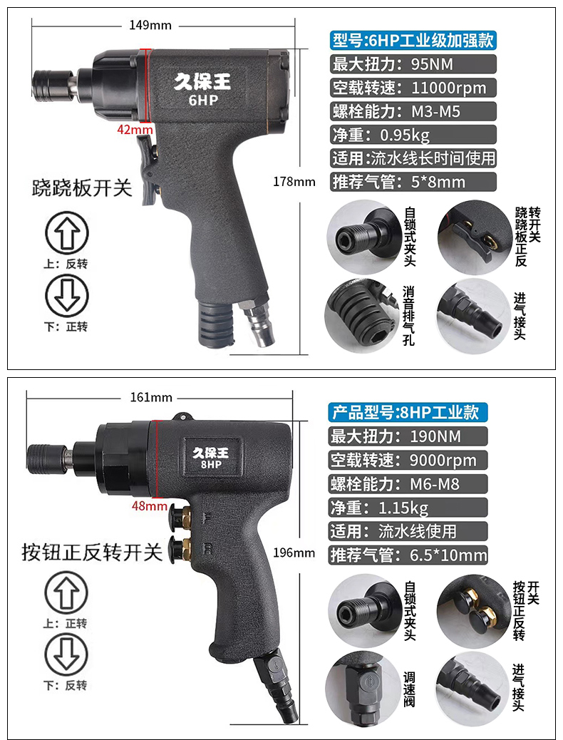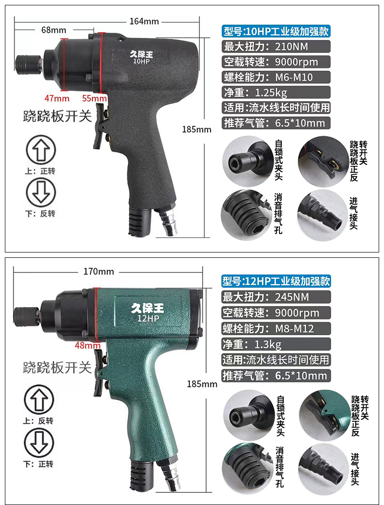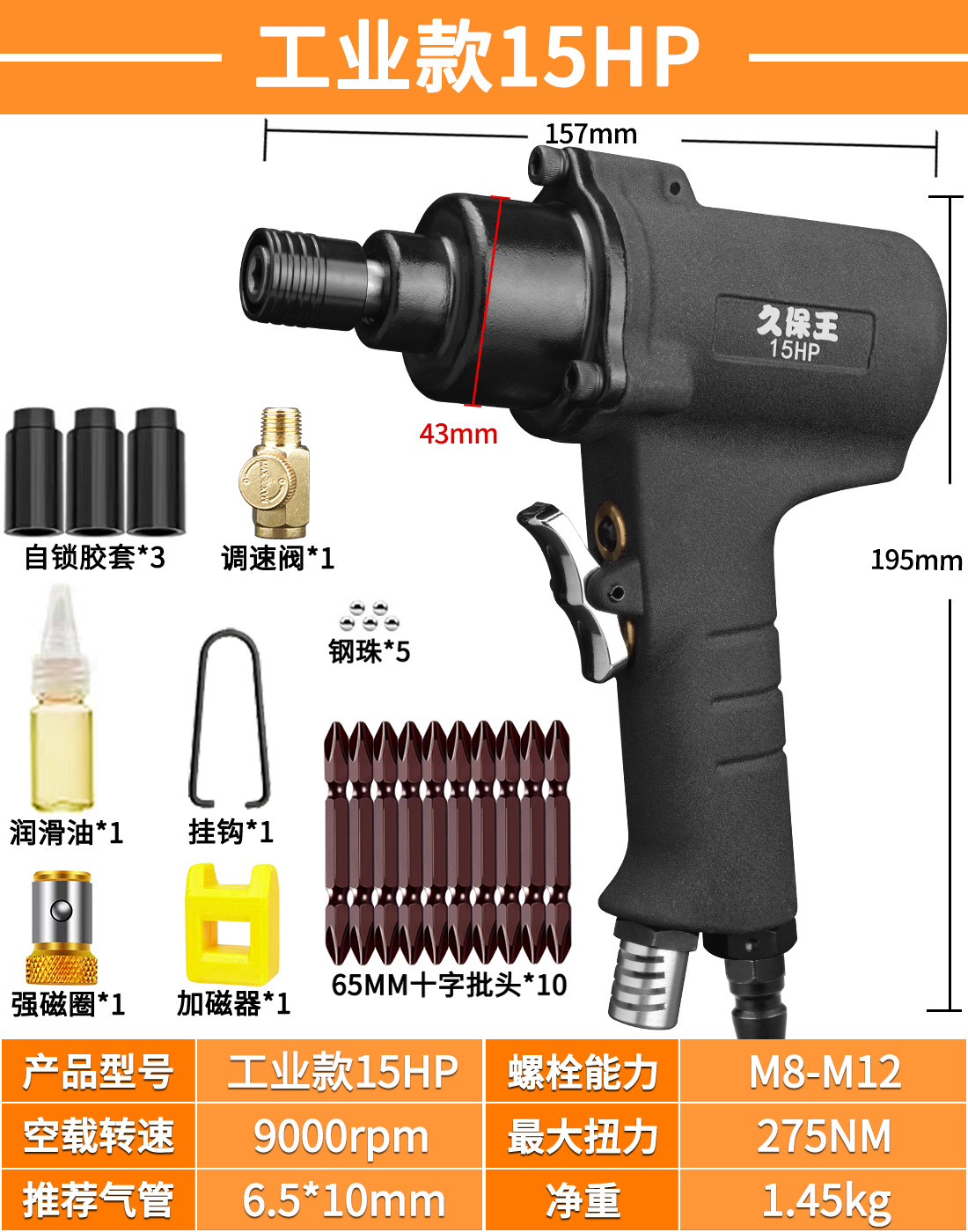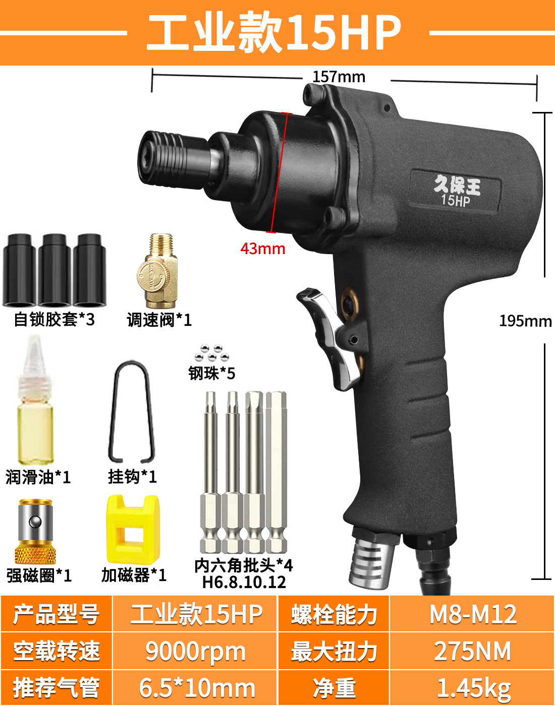 • Kubo King 10HP 산업용 모델 [더블 링 해머 구조] + 5.6.8.10 내부 육각형 높은 토크