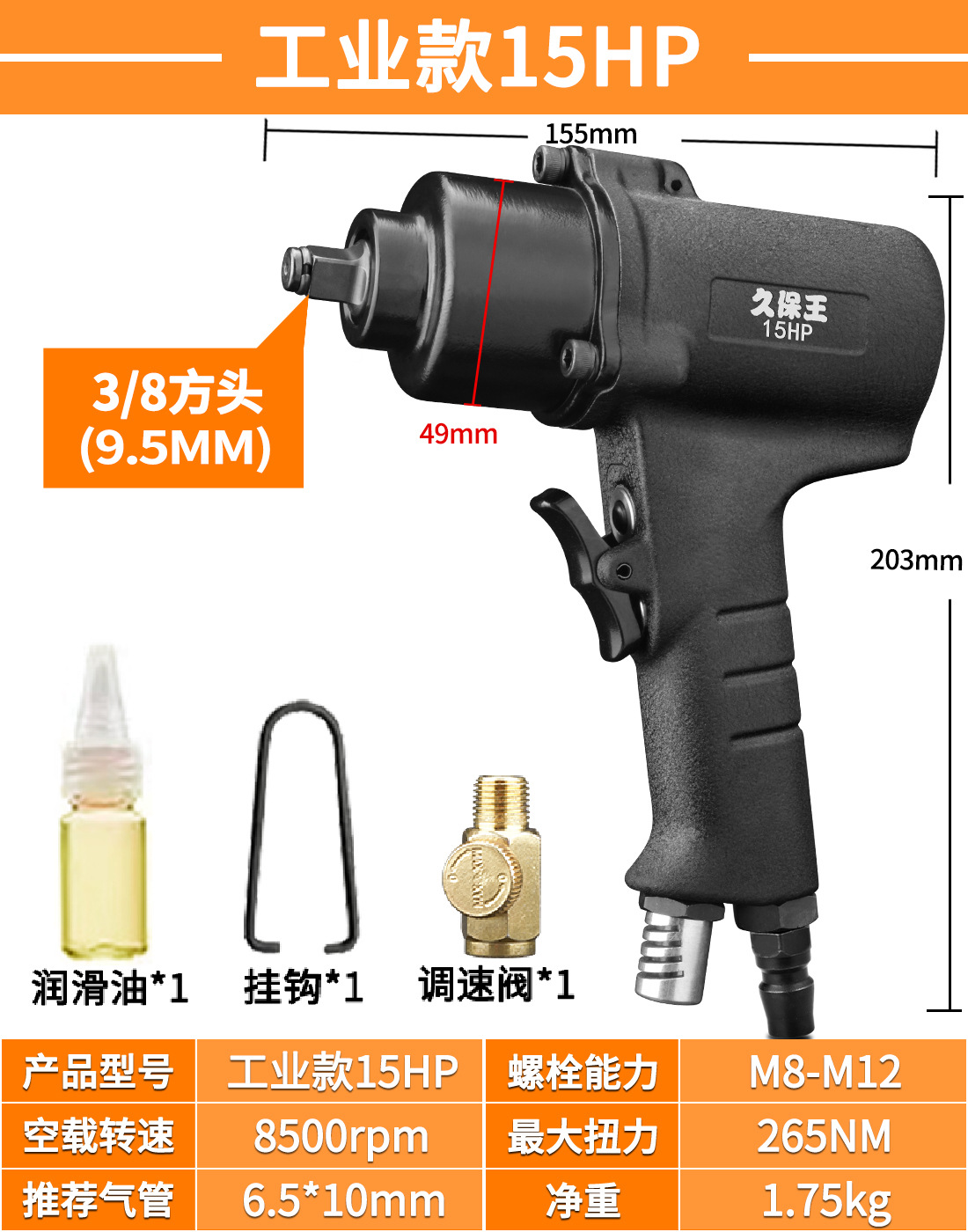 • 쿠보 킹 15HP 산업용 모델 [더블 링 해머 구조] (3/8 사각 헤드)