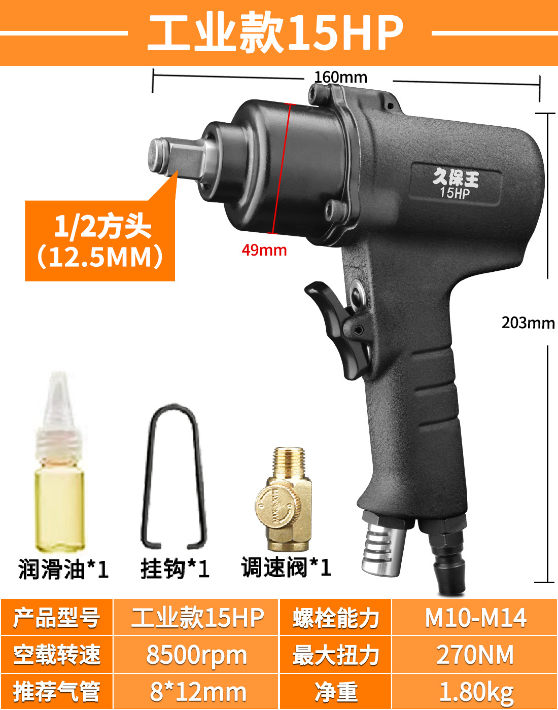 • Kubo King 15HP 산업용 모델 [이중 링 해머 구조] + 6.8.10.12 내부 육각형, 높은 토크