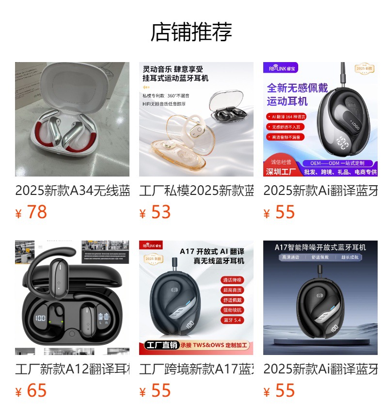 2025新款 跨境爆款 华强北爆款 抖音热销工厂直销 认证齐全 支持定制 超长续航 不漏音 佩戴舒适 不入耳360旋转 通用运动商务耳机