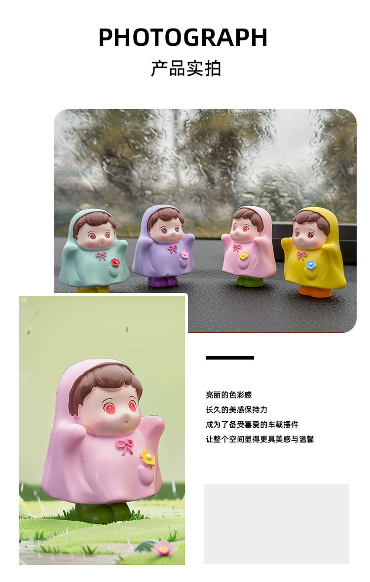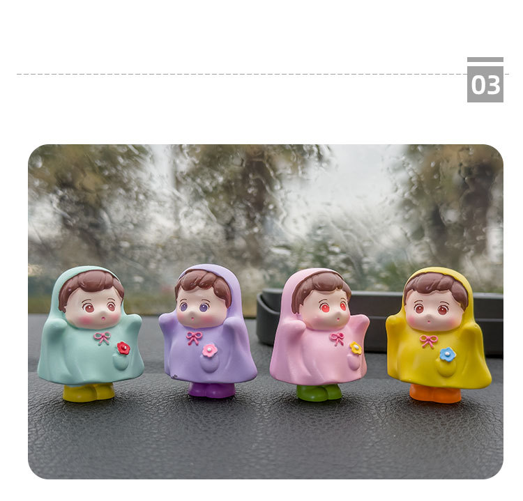 자동차 미니 귀여운 스크린 콘솔 장식품 작은 비옷 인형 자동차 장식 자동차 선물