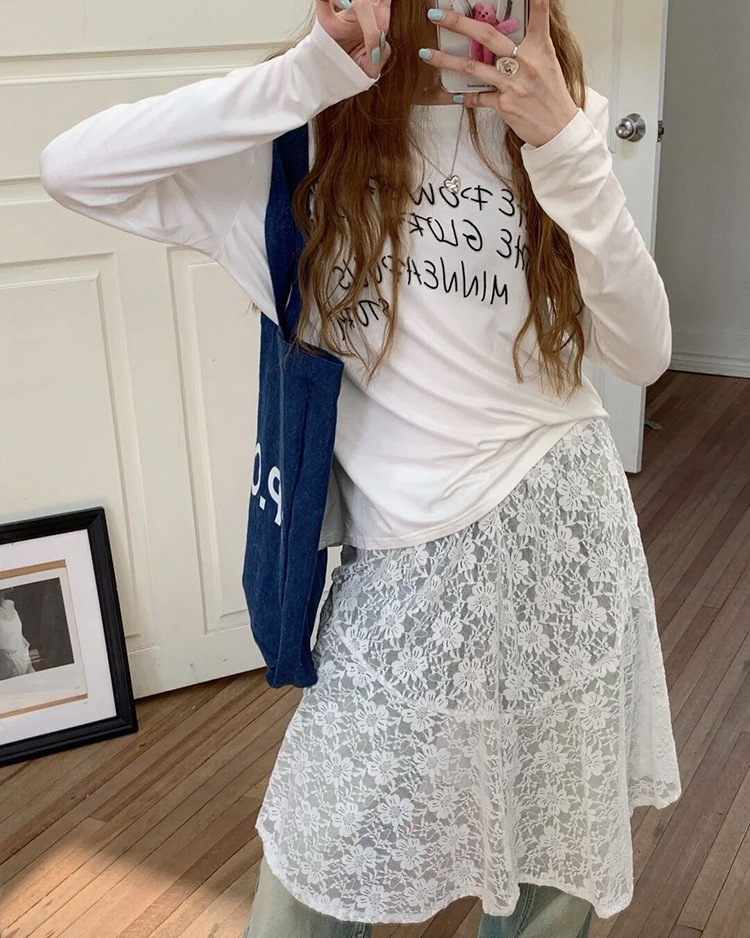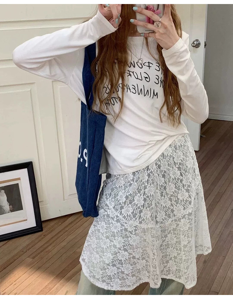 밀레 니얼 화이트 레이스 빈티지 스태킹 원시적 스커트 여성 하위 문화 펑크베이스 스커트 핫 걸스토어 가기