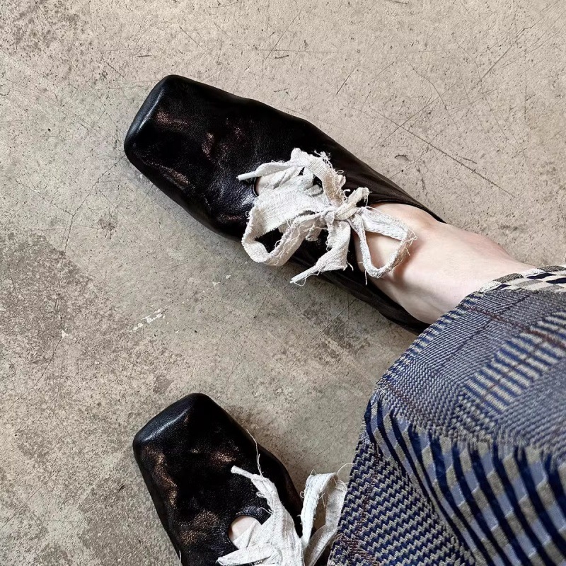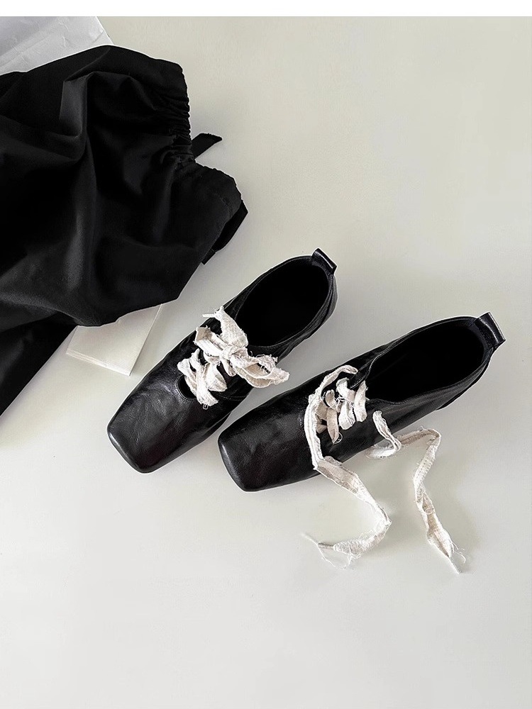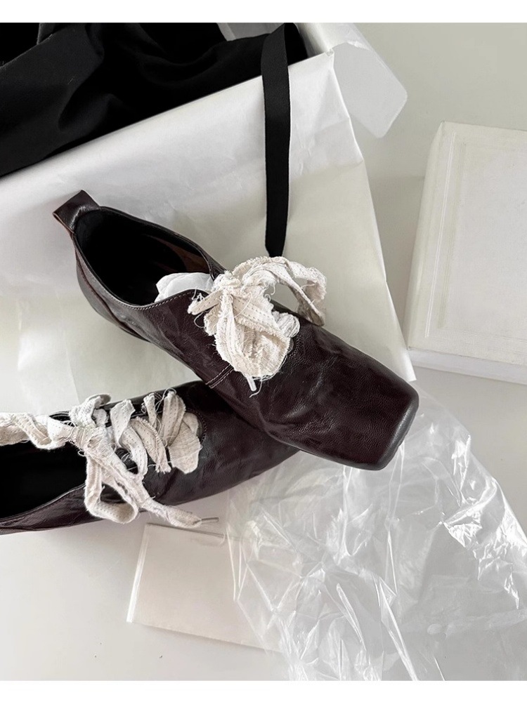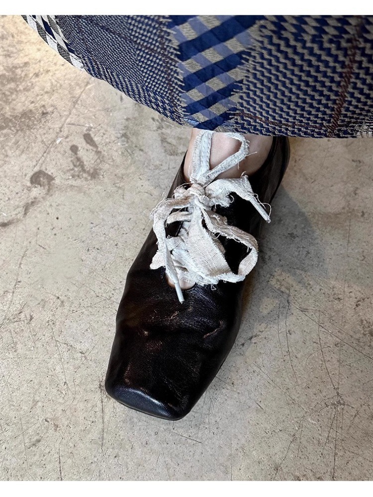 빈티지 예술 광장 발가락 작은 가죽 신발 2025 새로운 하이 엔드 센스 두꺼운 힐 프론트 레이스 업 아우터 여성용 우아한 올 매치 싱글 레이어 신발스토어 가기