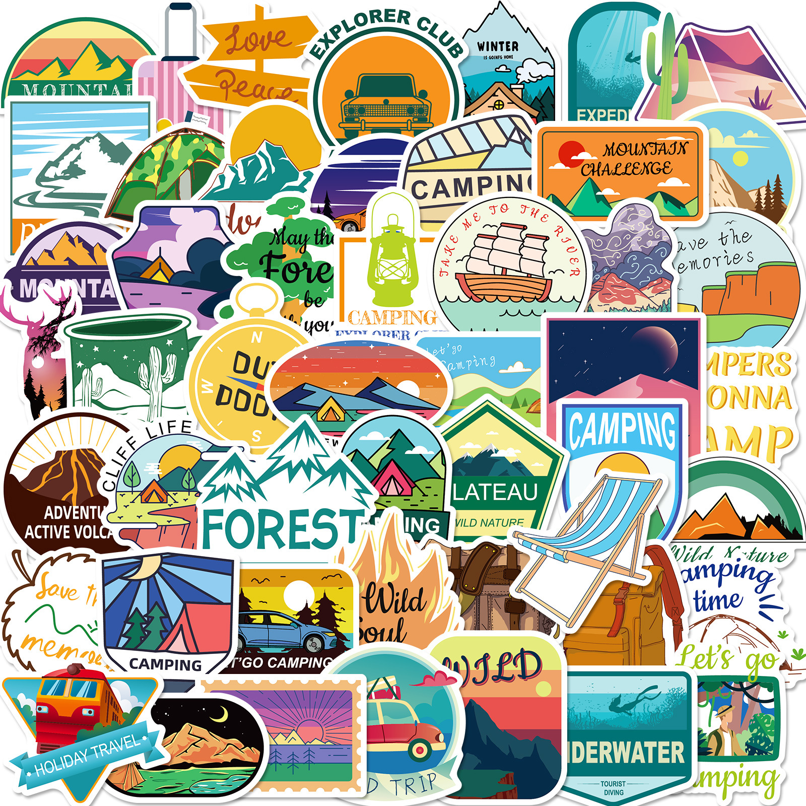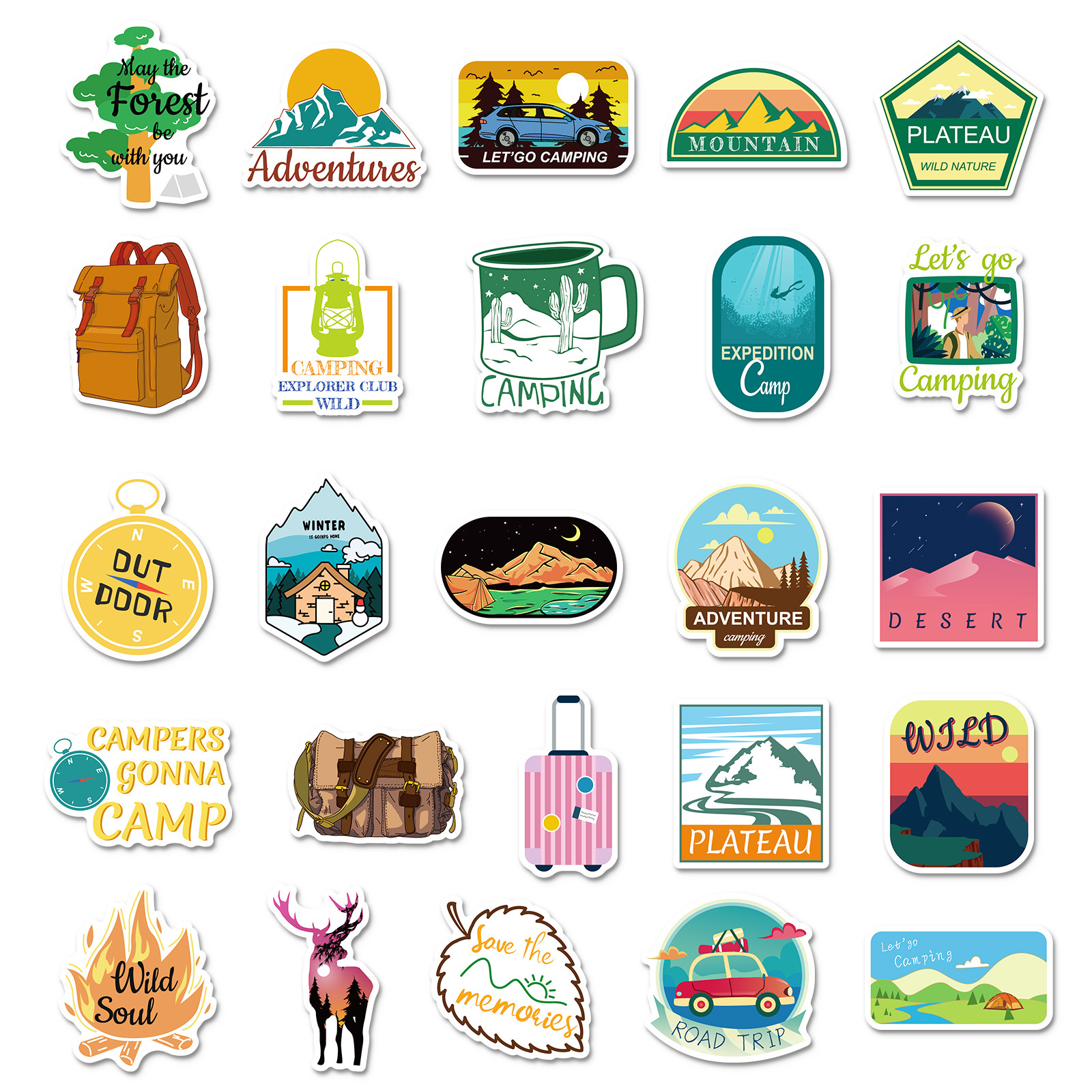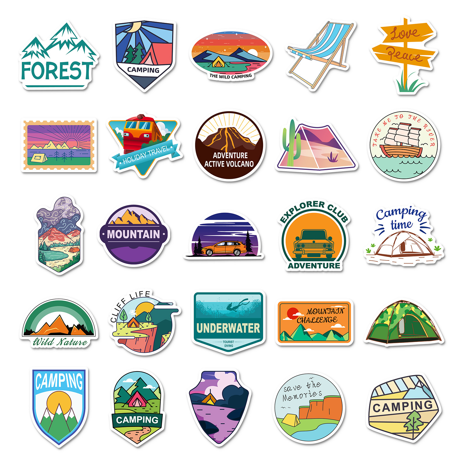 50 야외 모험 캠핑 테마 스티커 어린이 만화 손으로 그린 방수 스티커 아마존 국경 간 베스트 셀링스토어 가기